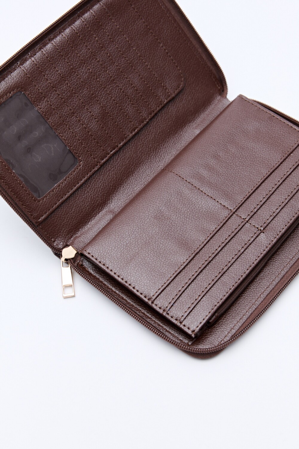 Gracias a su estructura firme y cierre perimetral, puede usarse no solo como billetera organizadora sino también como cartera tipo sobre para una fiesta o evento, elevando cualquier look con un toque elegante. En su interior cuenta con múltiples compartimentos: tarjeteros, bolsillo con cierre y divisiones amplias para billetes y documentos, manteniendo todo perfectamente ordenado.