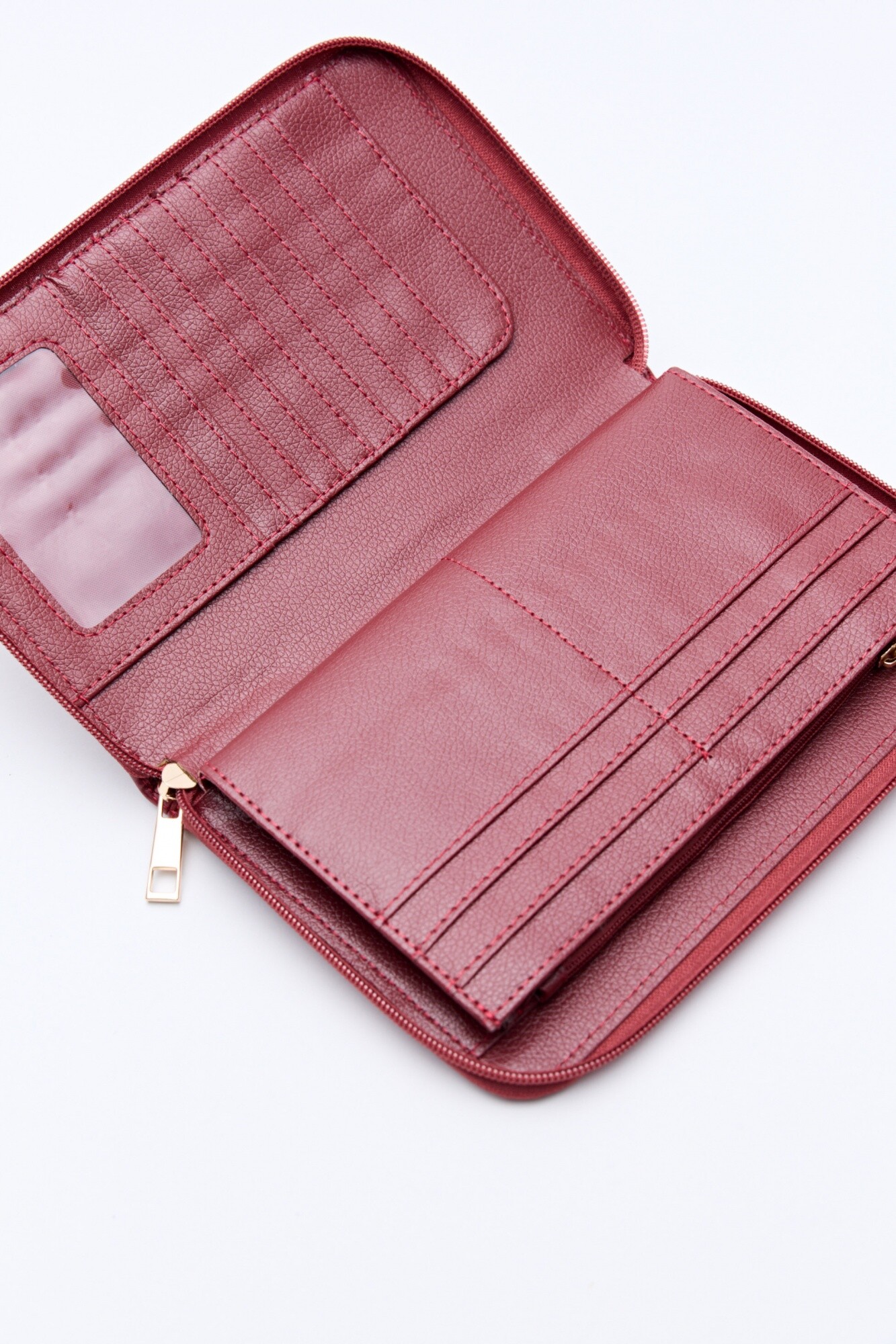 Gracias a su estructura firme y cierre perimetral, puede usarse no solo como billetera organizadora sino también como cartera tipo sobre para una fiesta o evento, elevando cualquier look con un toque elegante. En su interior cuenta con múltiples compartimentos: tarjeteros, bolsillo con cierre y divisiones amplias para billetes y documentos, manteniendo todo perfectamente ordenado.