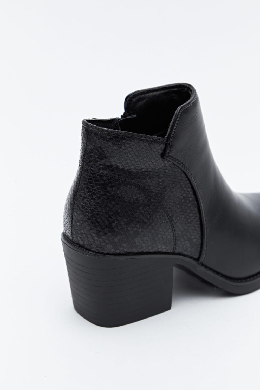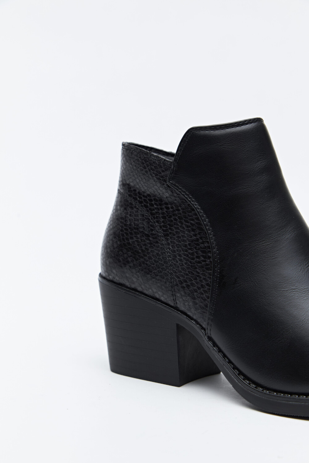 Botas en símil cuero, de silueta estilizada y diseño minimalista que destaca por su taco medio y su estructura limpia. La puntera afinada y el corte en el empeine aportan una línea elegante que estiliza la figura, mientras que el taco ancho brinda estabilidad y comodidad para el uso diario. Un modelo versátil que se adapta tanto a looks urbanos como a combinaciones más sofisticadas.