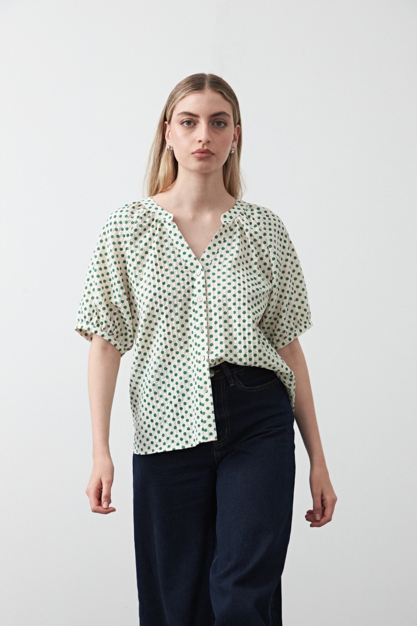 Diseño de calce relajado con caída fluida que aporta movimiento y frescura al look. El escote abierto y la botonadura frontal suman un detalle delicado, mientras que la estampa le da un aire actual y versátil. Ideal para usar tanto en clave casual como en propuestas más arregladas, es una prenda liviana y funcional, clave para elevar cualquier look.