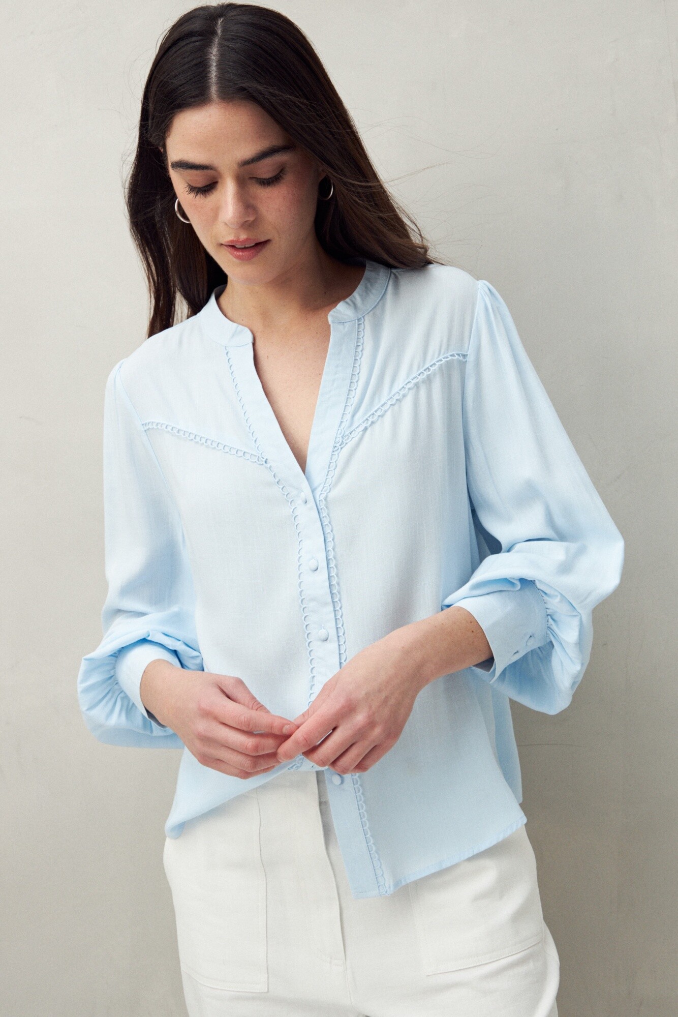 20 Camisa de manga larga con cuello redondo y escote en V.