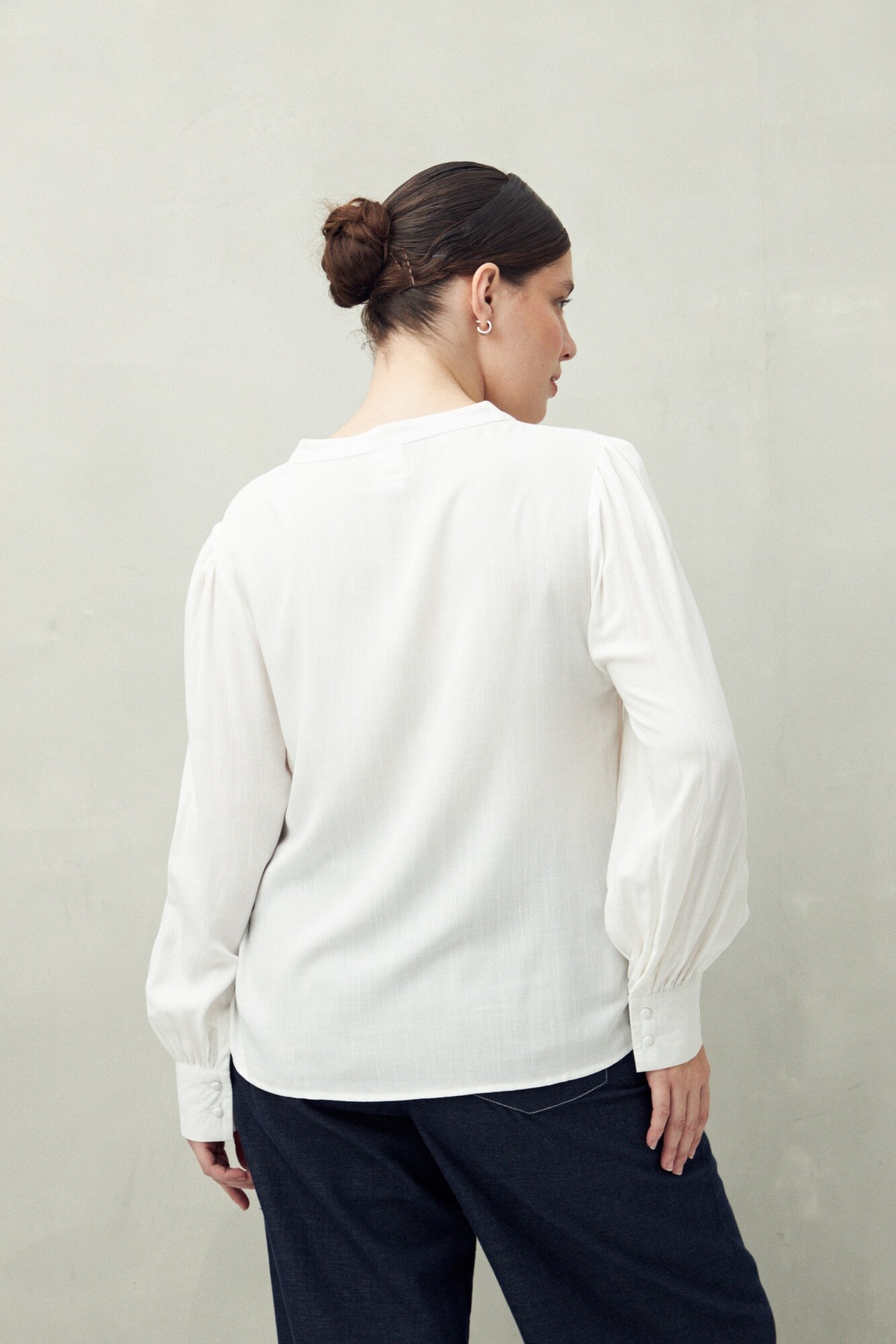 20 Camisa de manga larga con cuello redondo y escote en V.