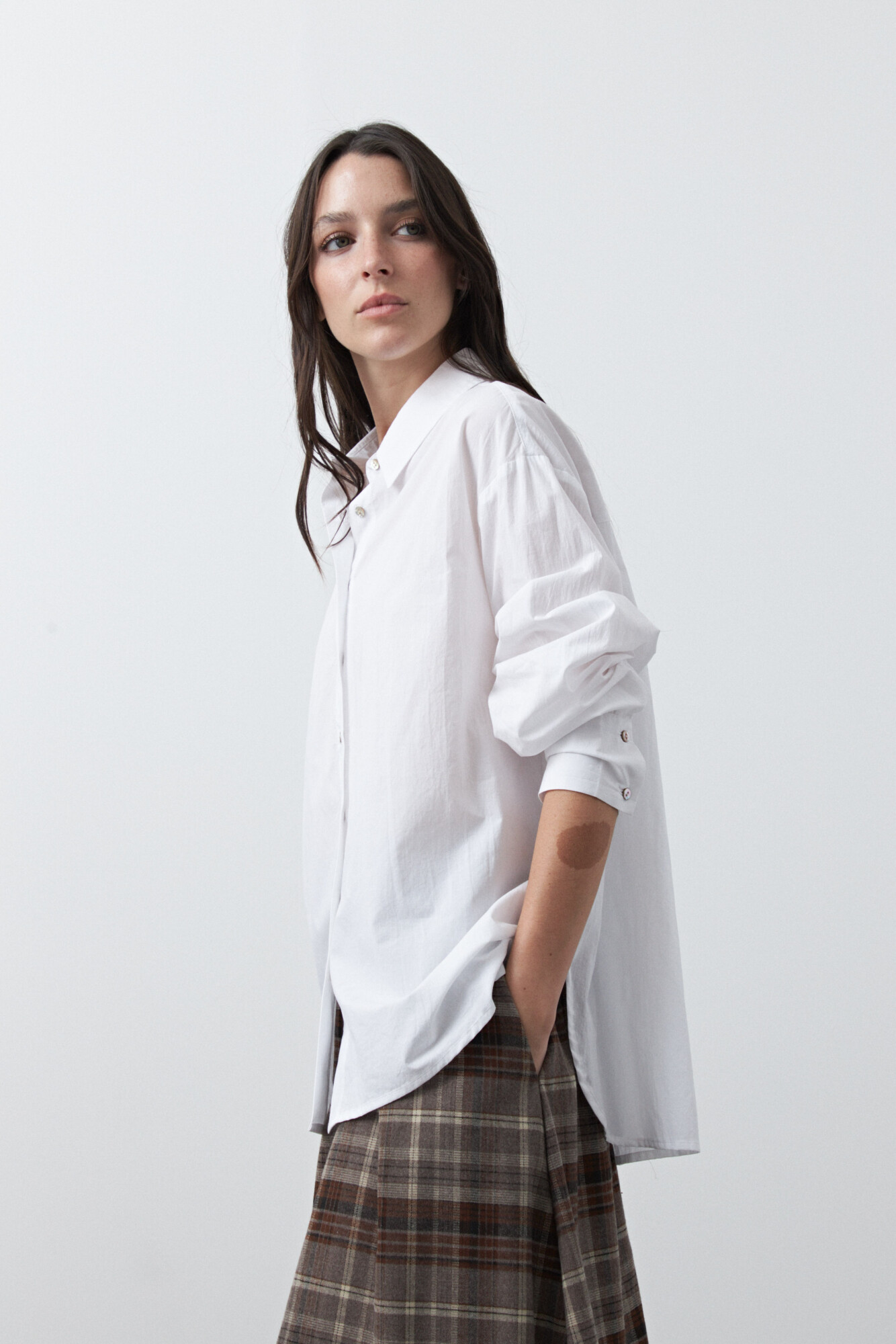 Camisa de manga larga de diseño clásico y calce relajado, un básico atemporal que se adapta a múltiples estilos. Su silueta versátil permite usarla como primera capa o como sobrecamisa, aportando practicidad y estilo en partes iguales. Con cuello tradicional y botonadura frontal, es ideal para construir looks tanto formales como más descontracturados.