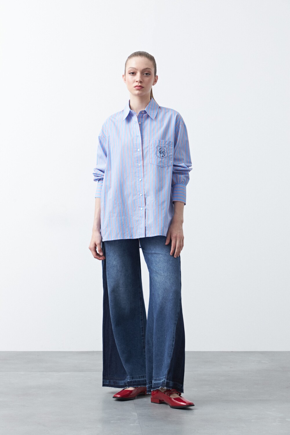 Camisa a rayas de manga larga confeccionada en tejido yarn dye, un método que aporta mayor definición y durabilidad a la estampa. El diseño se destaca por su impronta preppy, de inspiración clásica, con cuello camisero y botones frontales. El bordado aplicado en el bolsillo suma un detalle distintivo y sutil, reforzando la identidad de la prenda sin perder sobriedad. Su calce cómodo la convierte en una pieza versátil, ideal para looks de oficina o combinaciones más relajadas.