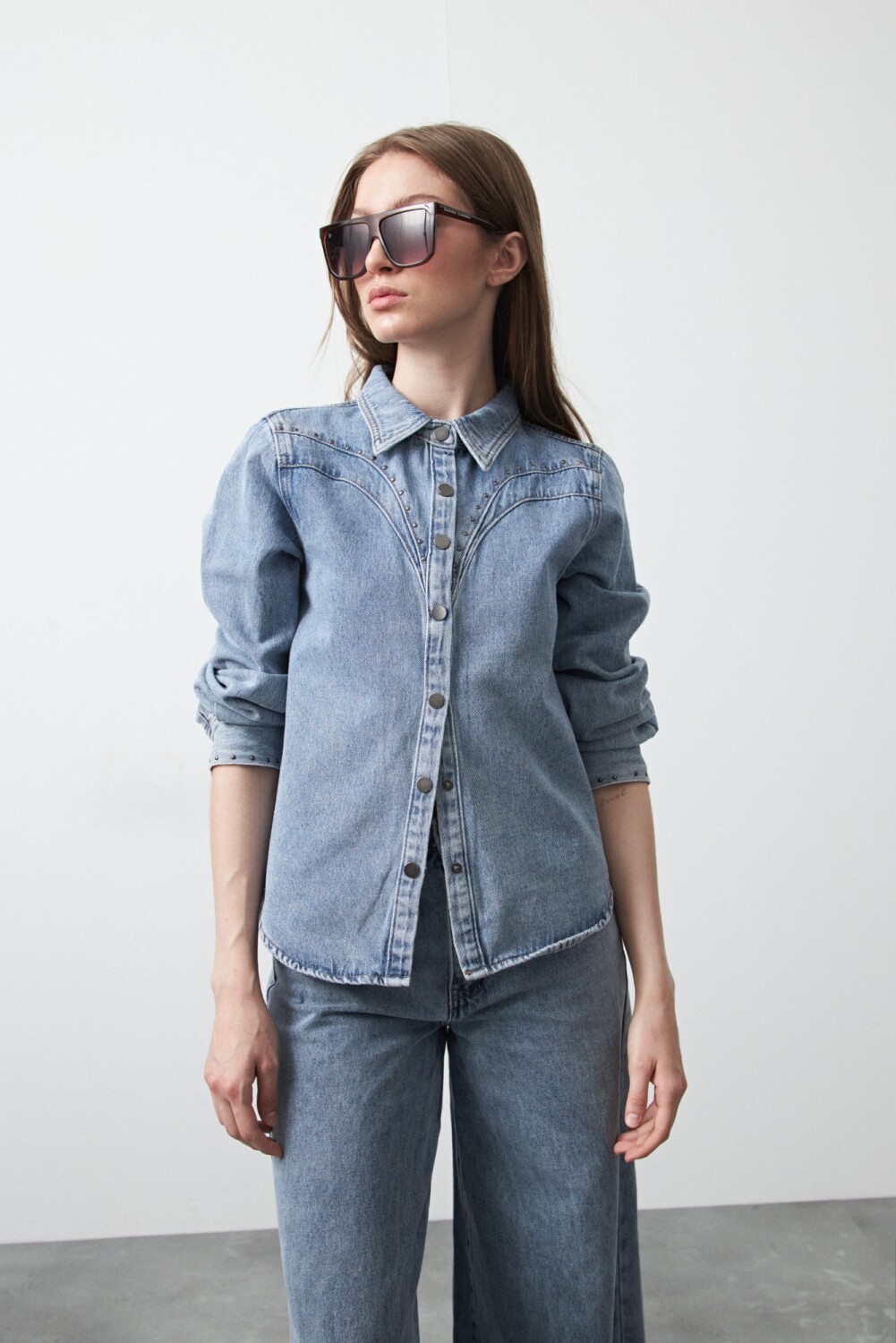 Camisa de jean con tachas que reversiona un clásico infalible con un detalle distintivo. El diseño incorpora tachas metálicas aplicadas de forma sutil, que realzan las líneas del frente y aportan carácter sin perder versatilidad. De calce relajado y estructura definida, es una prenda atemporal, pensada para acompañar distintos estilos y temporadas, funcionando tanto como protagonista del look como en combinaciones más neutras. Un esencial actualizado que suma personalidad a cualquier guardarropa.