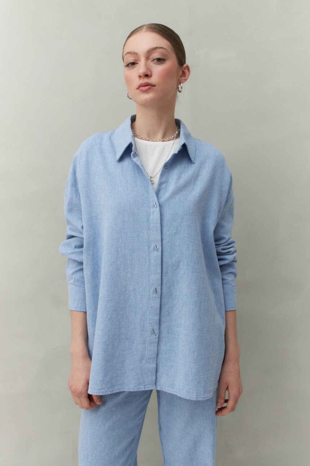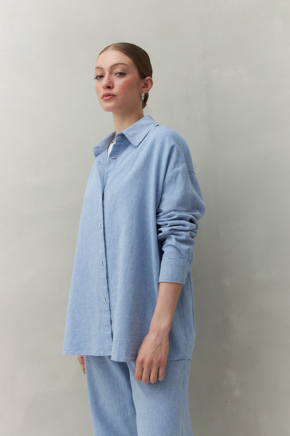 2502 Camisa confeccionada en una mezcla de lino y viscosa, una dupla que combina la textura natural del lino con la suavidad y caída de la viscosa. De silueta relajada y corte clásico, es una prenda versátil que puede llevarse abierta sobre tops o cerrada para un look más pulido. Ideal para crear estilismos livianos con un aire fresco y effortless, clave para elevar cualquier look.