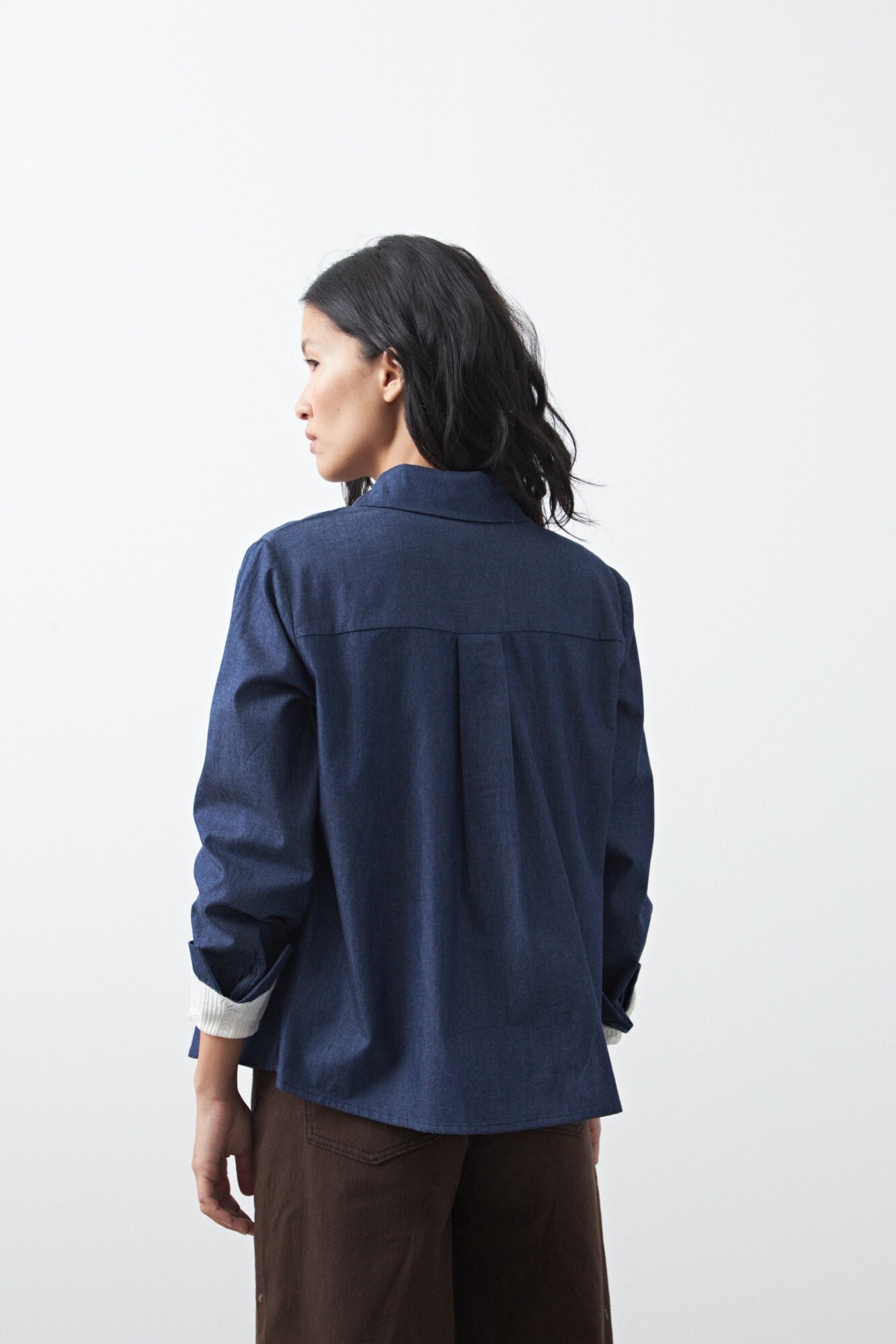 El cuello clásico y el corte levemente holgado permiten llevarla cerrada como pieza central o abierta sobre un top, funcionando también como tercera prenda. Los puños amplios refuerzan su estética descontracturada, mientras que la mezcla de algodón y tencel ofrece una mano suave, caída fluida y excelente respirabilidad.