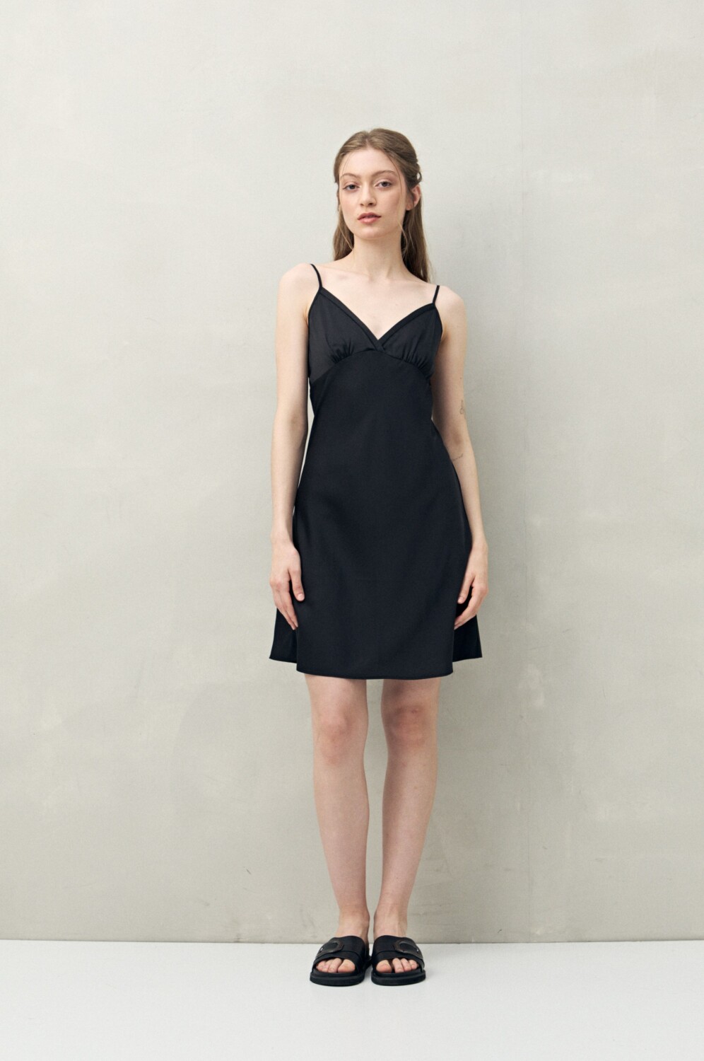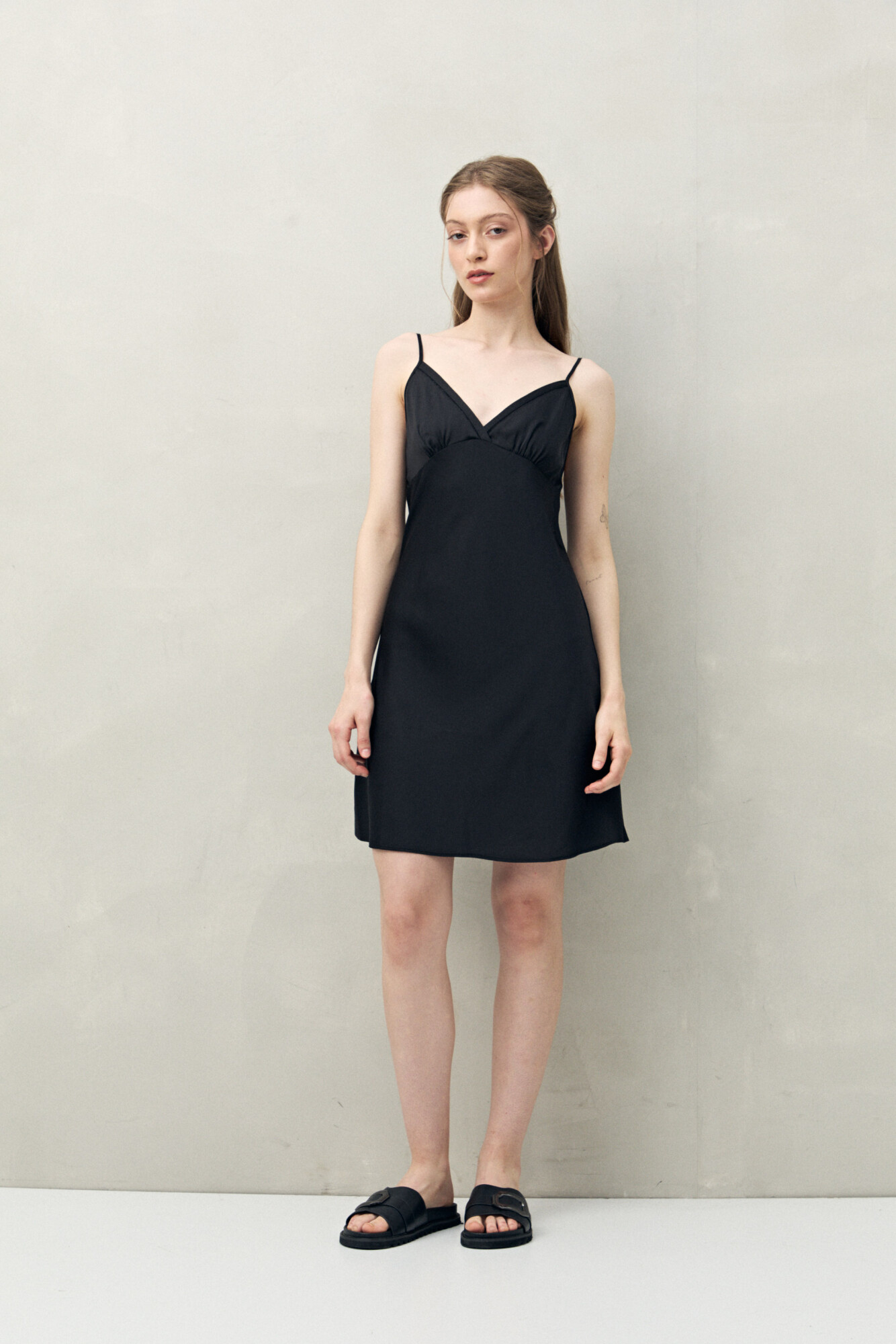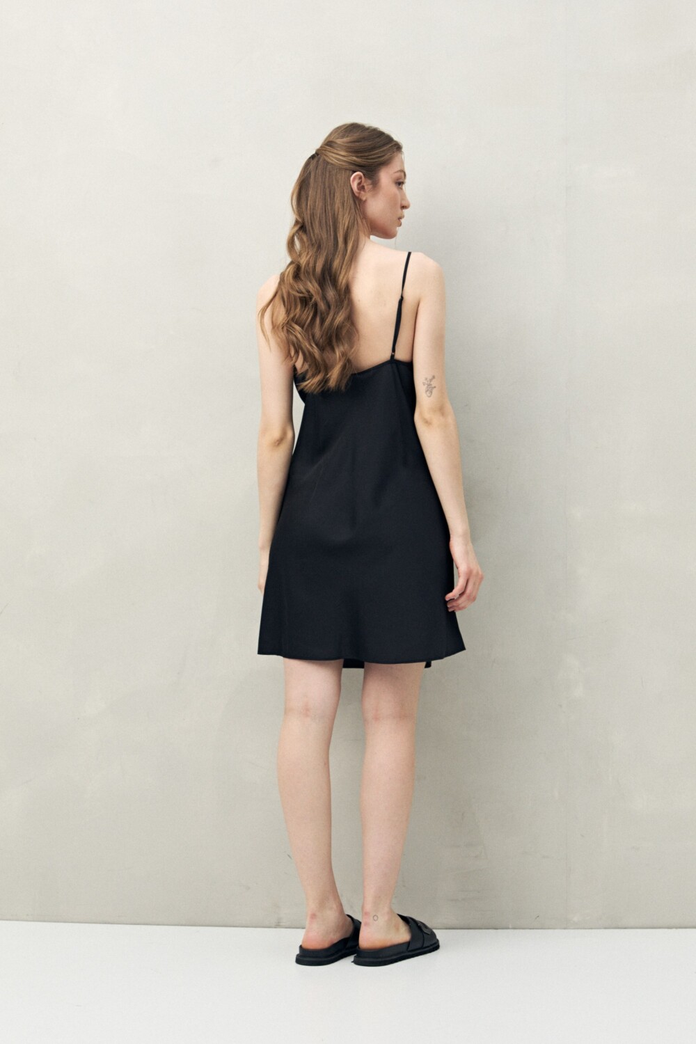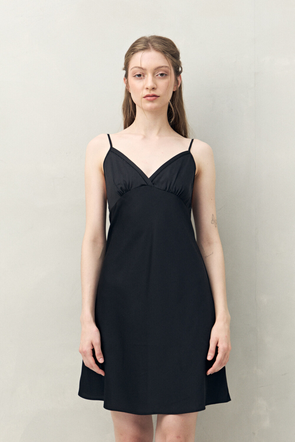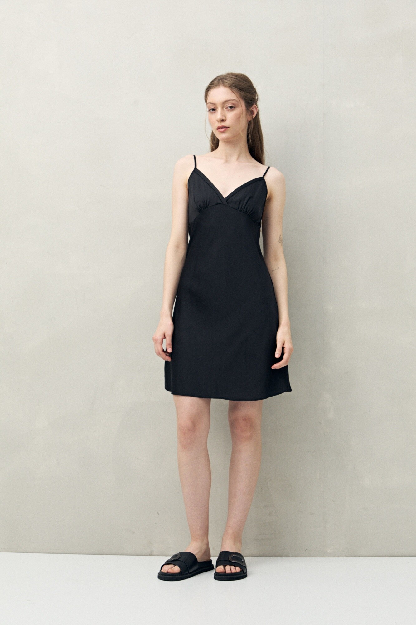 Confeccionado en tejido satinado con leve elasticidad, se destaca por su tacto suave y confortable. Presenta escote en V con recorte bajo busto que aporta un calce favorecedor, tiras finas regulables y una estructura liviana que acompaña el movimiento sin ajustar. Una prenda cómoda y elegante, ideal para sumar bienestar y un toque sofisticado al descanso.