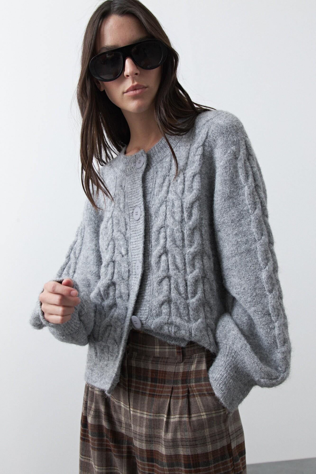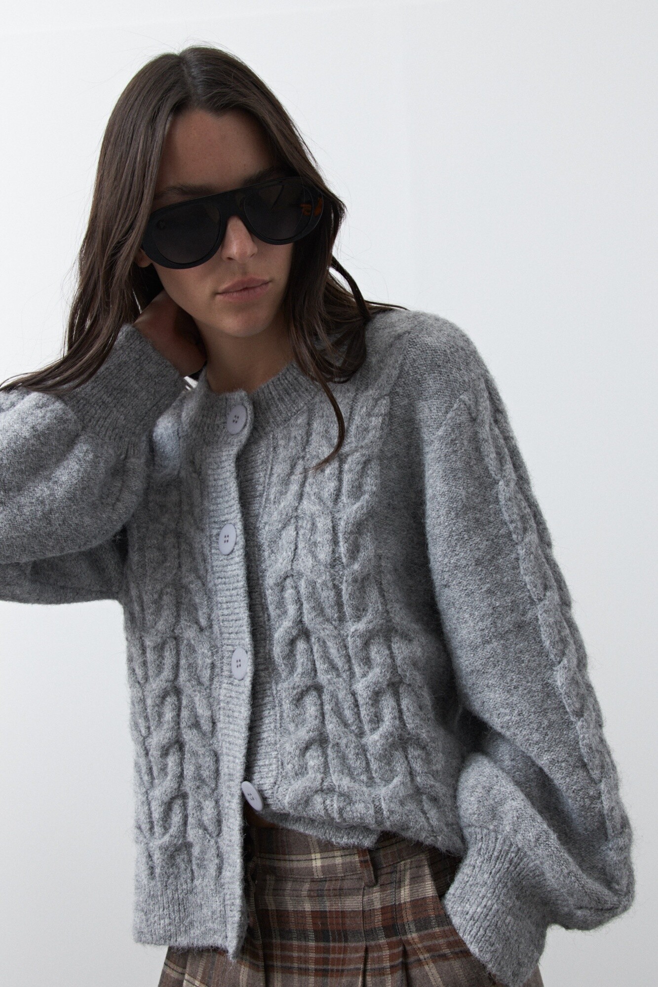 Cardigan tejido con diseño de trenzas que aporta textura y volumen, ideal para sumar calidez con un aire clásico renovado. Su silueta relajada con botones al frente y terminaciones acanaladas lo convierte en una prenda versátil, perfecta para looks de todos los días con un toque trendy.