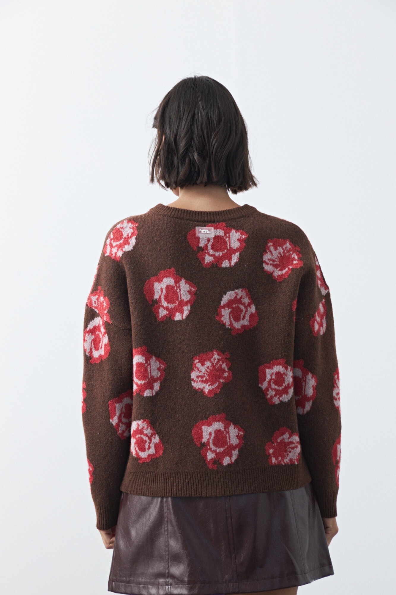 Cardigan jacquard con motivo floral que aporta textura y protagonismo al look. De silueta recta y cuello redondo, presenta cierre frontal con botones y terminaciones acanaladas que aseguran un calce cómodo. El tejido suave y con elasticidad lo convierte en una prenda versátil, ideal para usar como capa liviana sobre camisas o remeras y sumar un toque en tendencia.