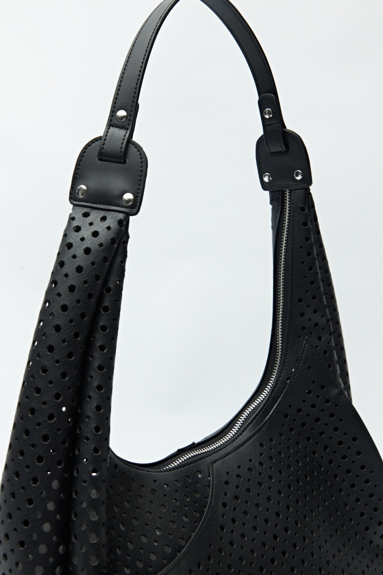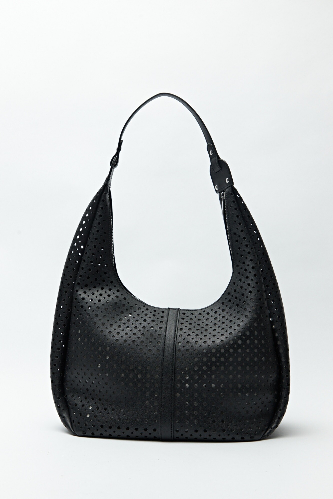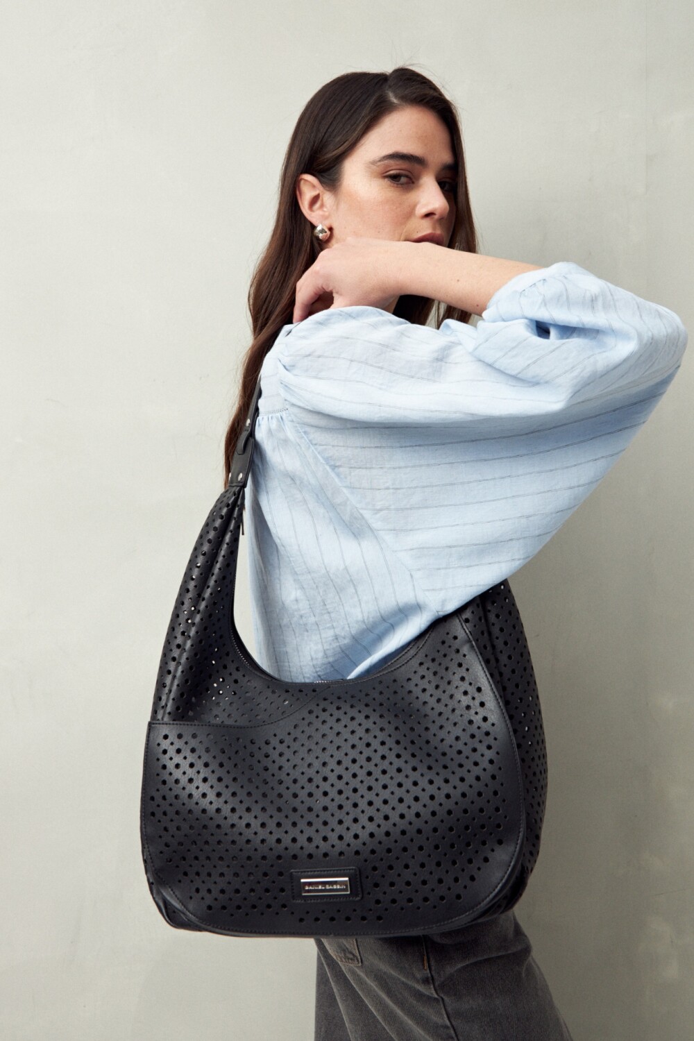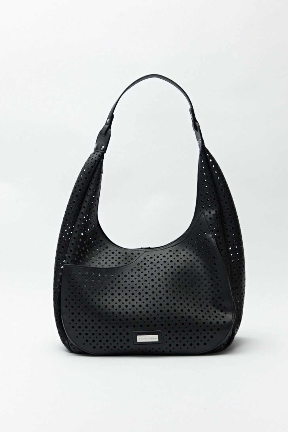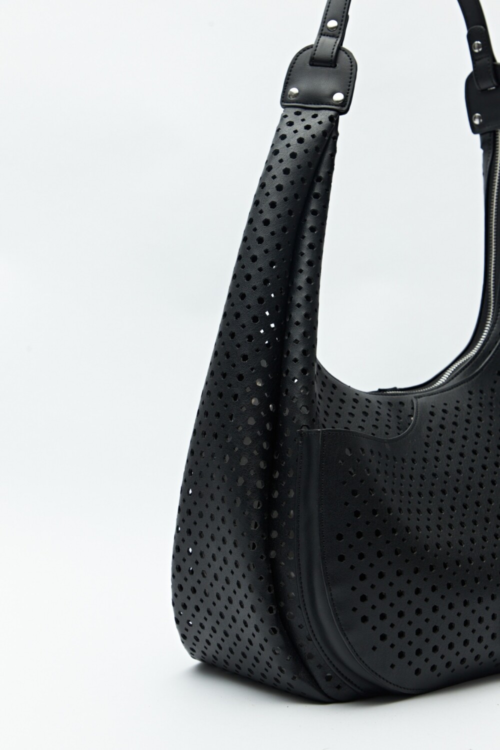 Cartera de hombro con diseño calado y estructura semirrígida, que combina estilo y practicidad. Su silueta curva y detalles perforados le aportan un aire fresco y moderno, ideal para acompañar looks de día con un toque trendy. El asa ancha garantiza comodidad al llevarla, convirtiéndola en una aliada perfecta para la temporada.