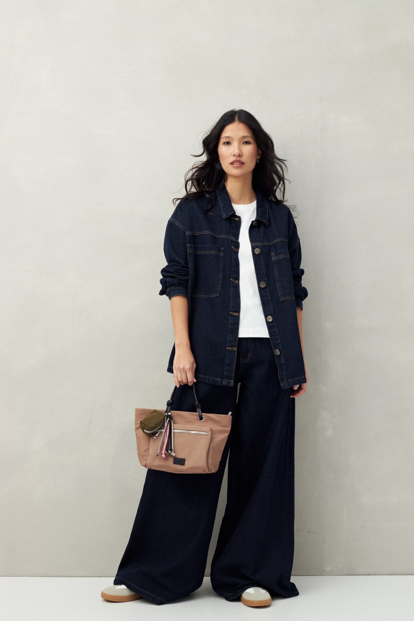 Cartera de nylon con un aire sporty y funcional, perfecta para el día a día. Incorpora un práctico bolsillo frontal con cierre, asas dobles y detalles de cordones multicolor que le suman un toque original y trendy. Además, incluye un pequeño pouch desmontable, ideal para organizar lo esencial.