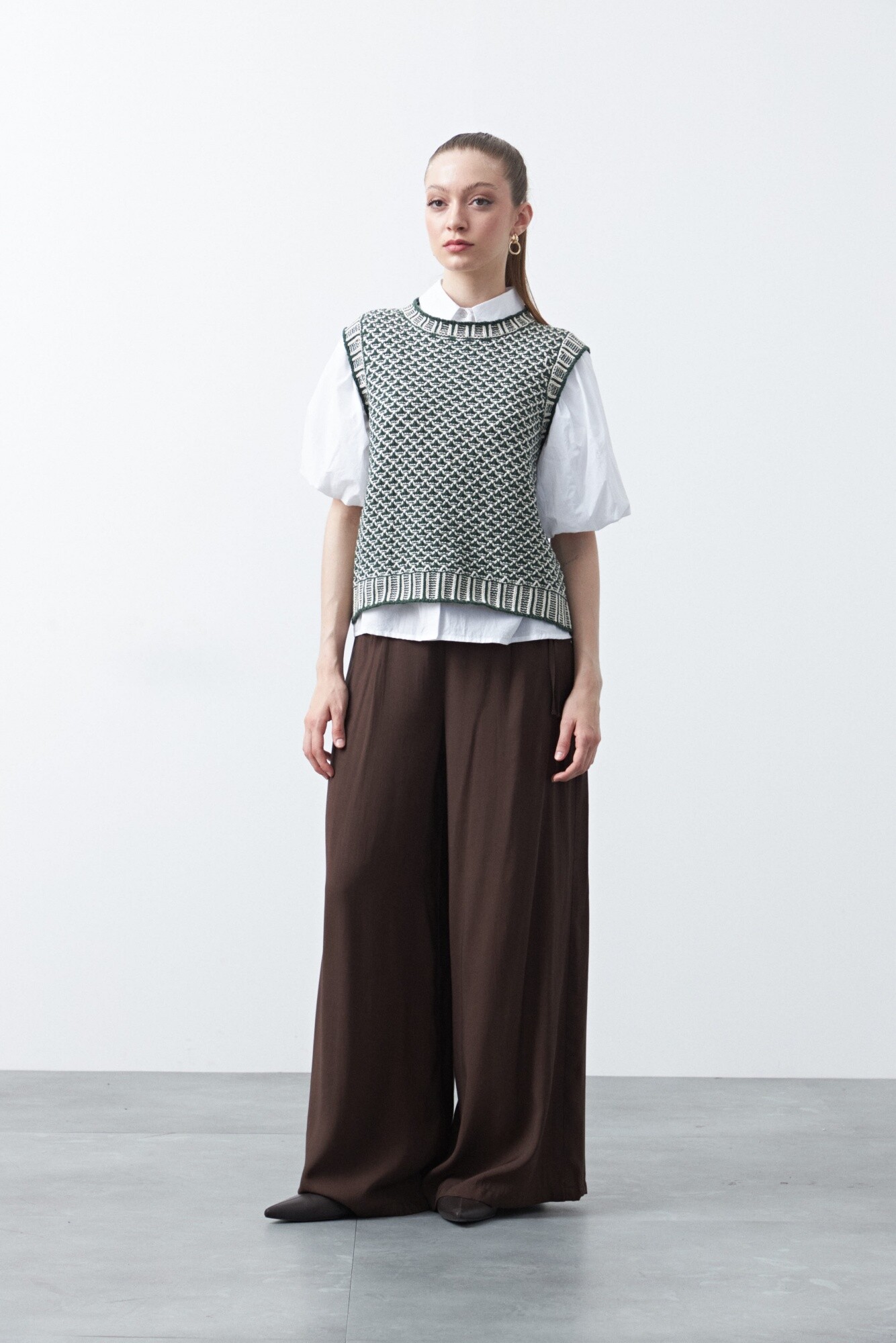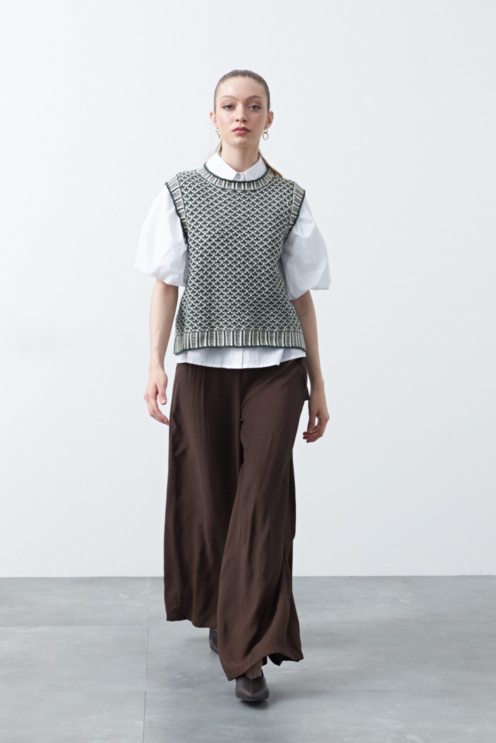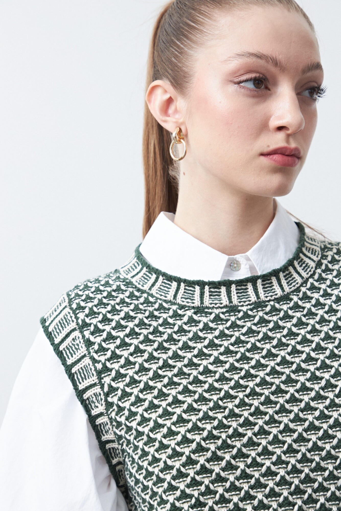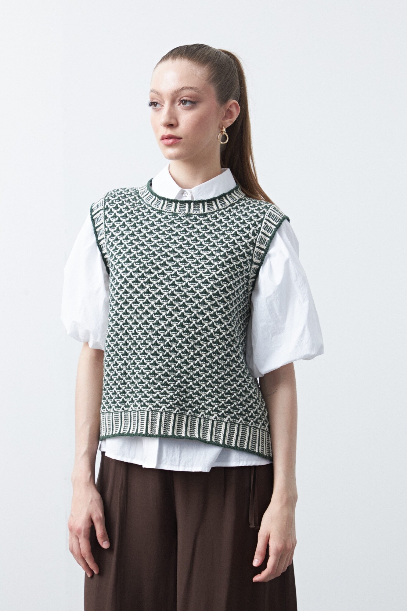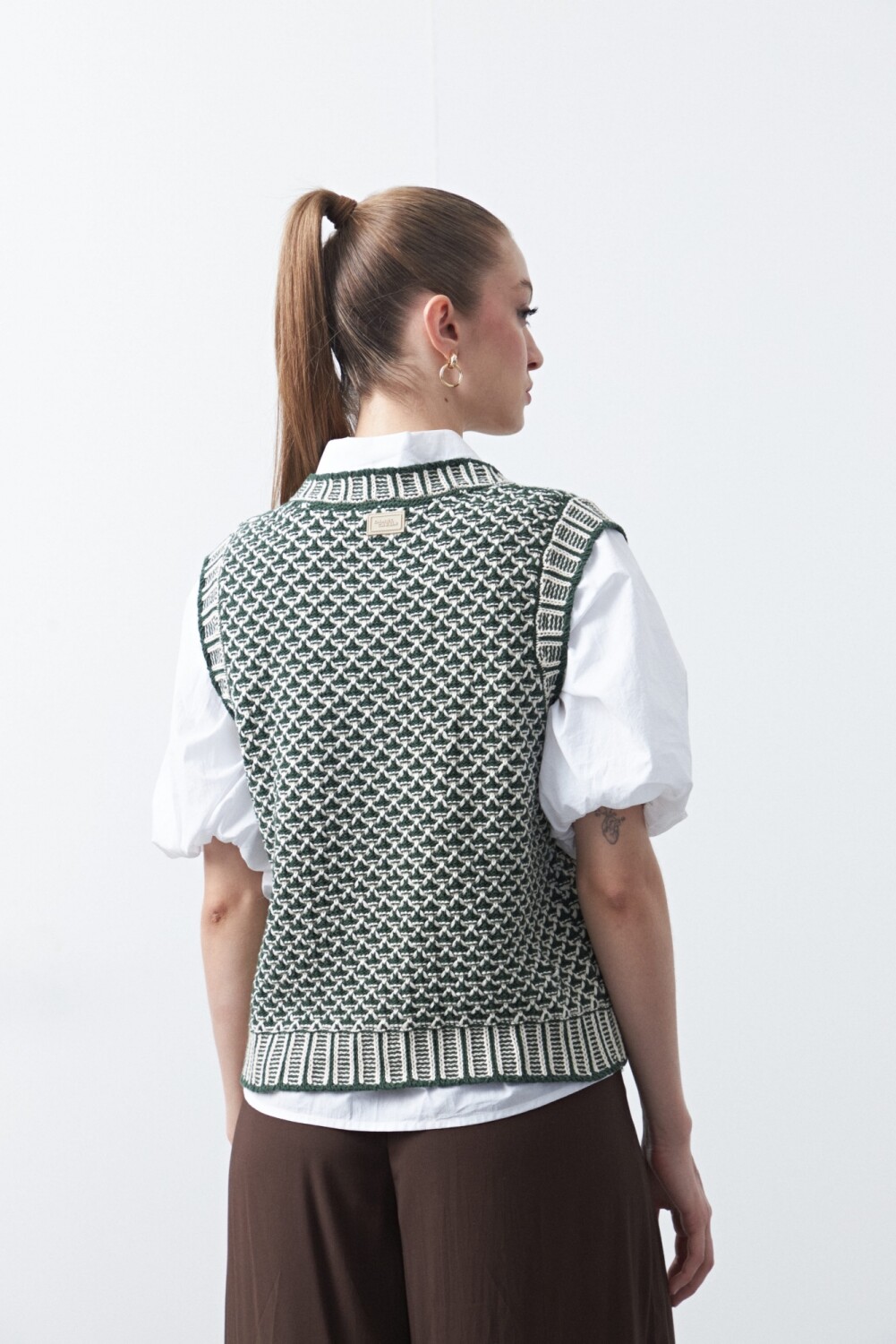 Chaleco tejido de algodón y acrílico, con un trabajo de punto protagonista que aporta textura y carácter a la prenda. El entramado artesanal le da profundidad visual y una impronta cuidada, ideal para sumar interés a looks de base simples. Su diseño sin mangas lo vuelve versátil para superponer sobre camisas o remeras, logrando un estilismo pulido con un guiño contemporáneo. Una pieza con identidad propia que suma abrigo liviano y estilo sin esfuerzo.