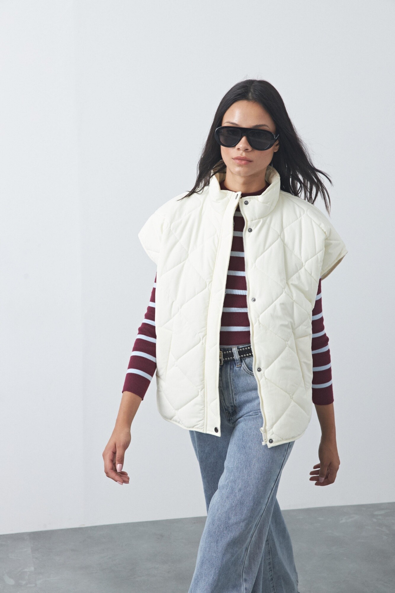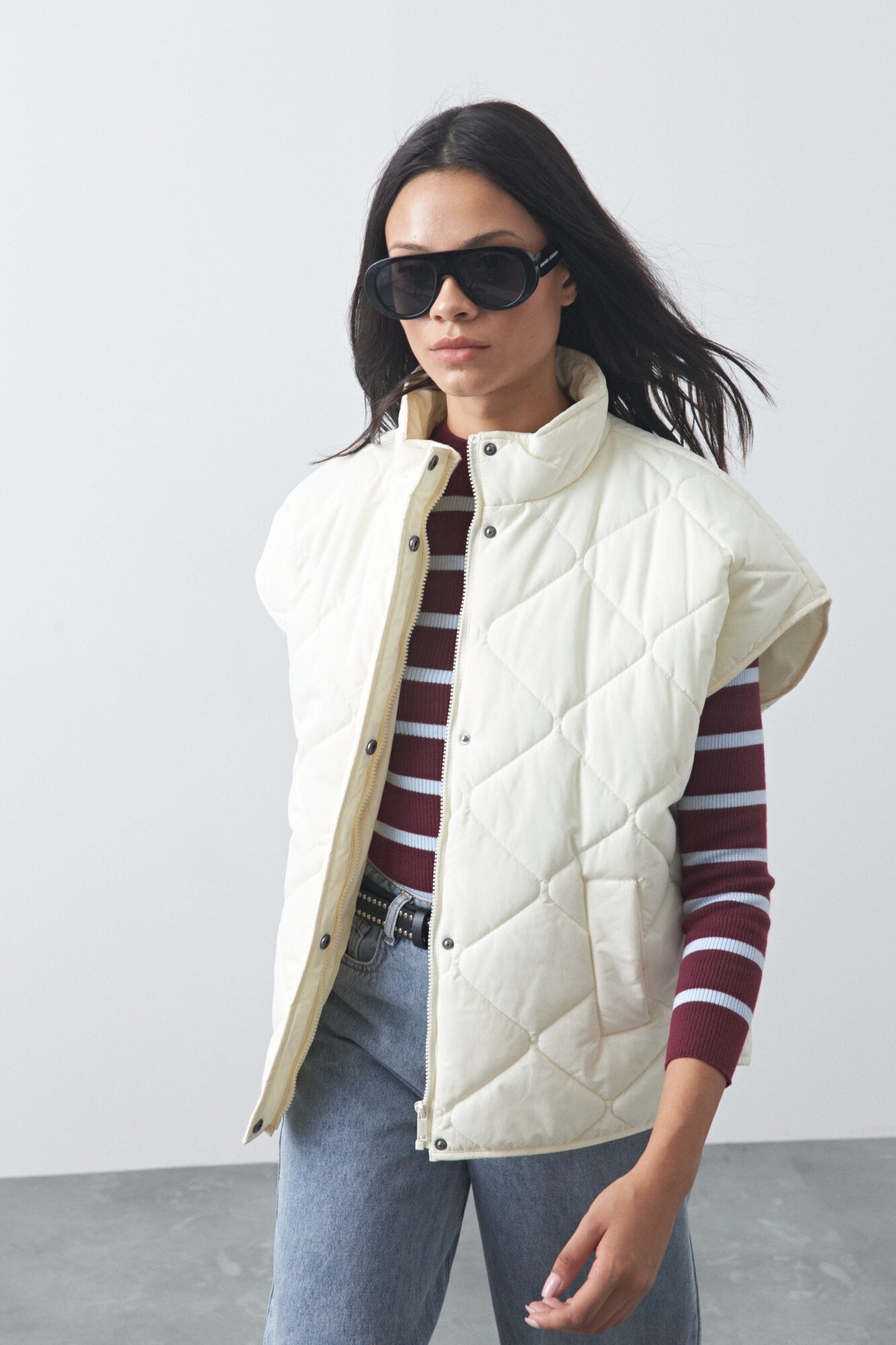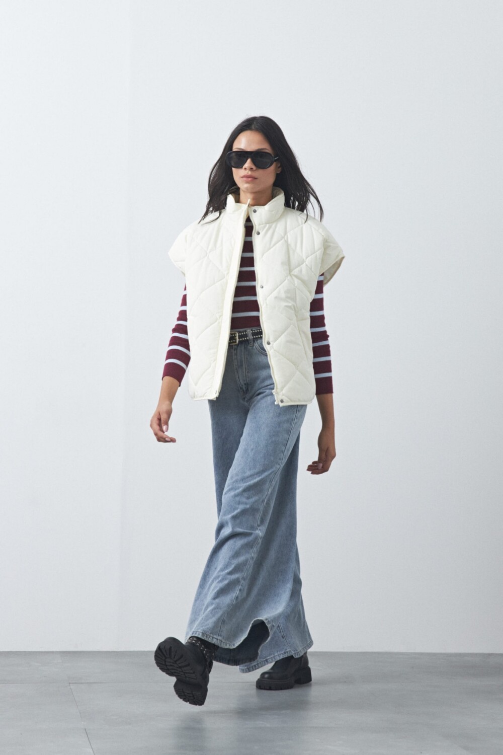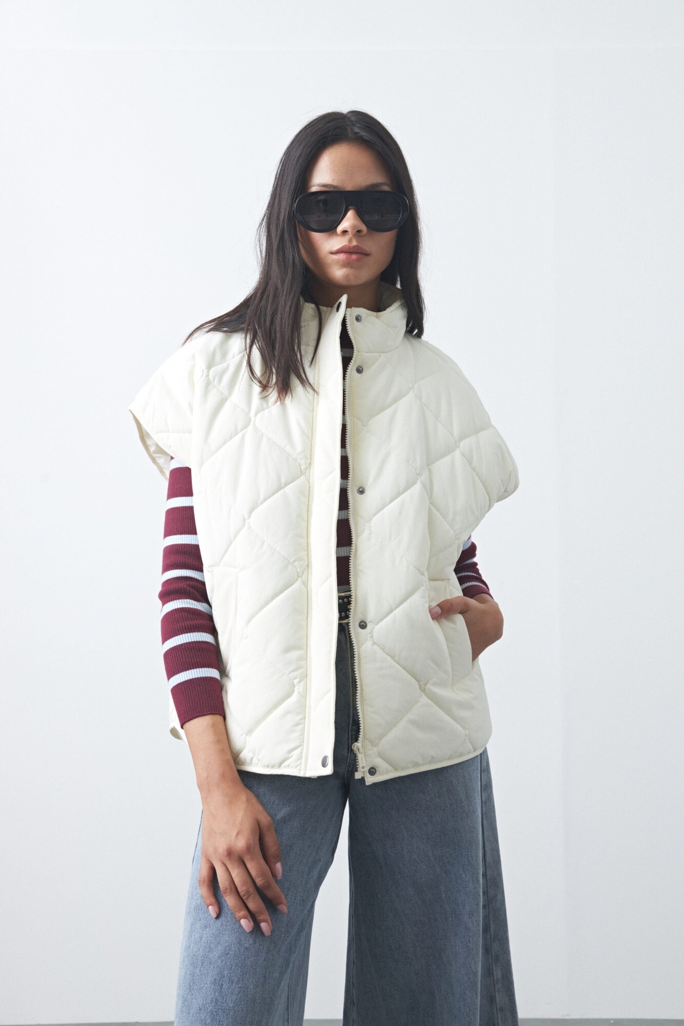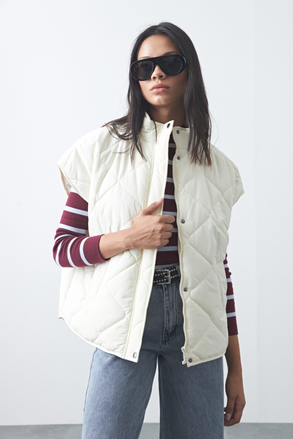 Chaleco capitoneado de nylon, ideal para sumar abrigo sin perder liviandad. Su diseño acolchado aporta textura y volumen, mientras que el cuello alto y el calce amplio lo convierten en una prenda versátil para usar sobre sweaters, hoodies o camisas. Un básico invernal que funciona perfecto para armar looks en capas y elevar cualquier outfit de temporada.