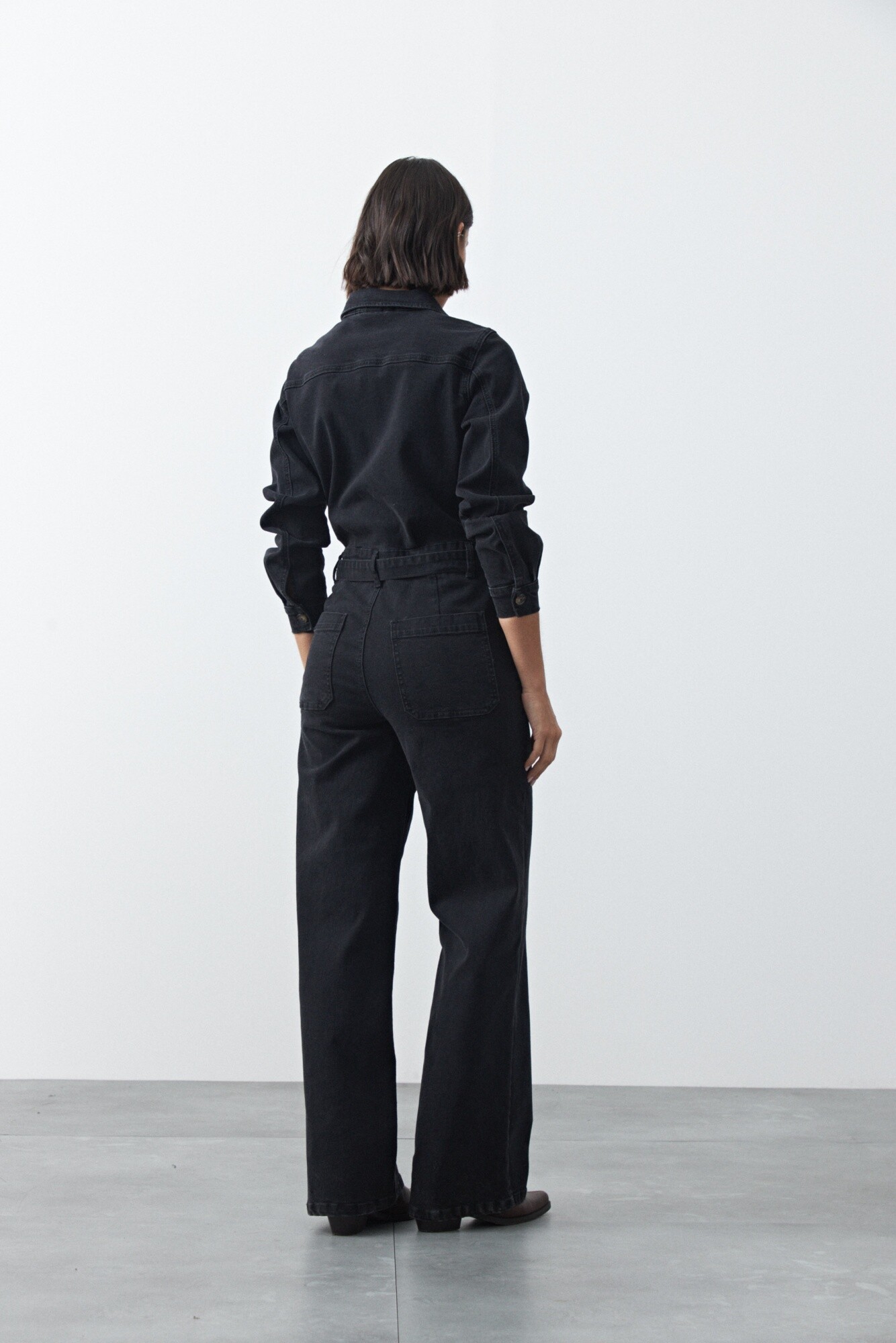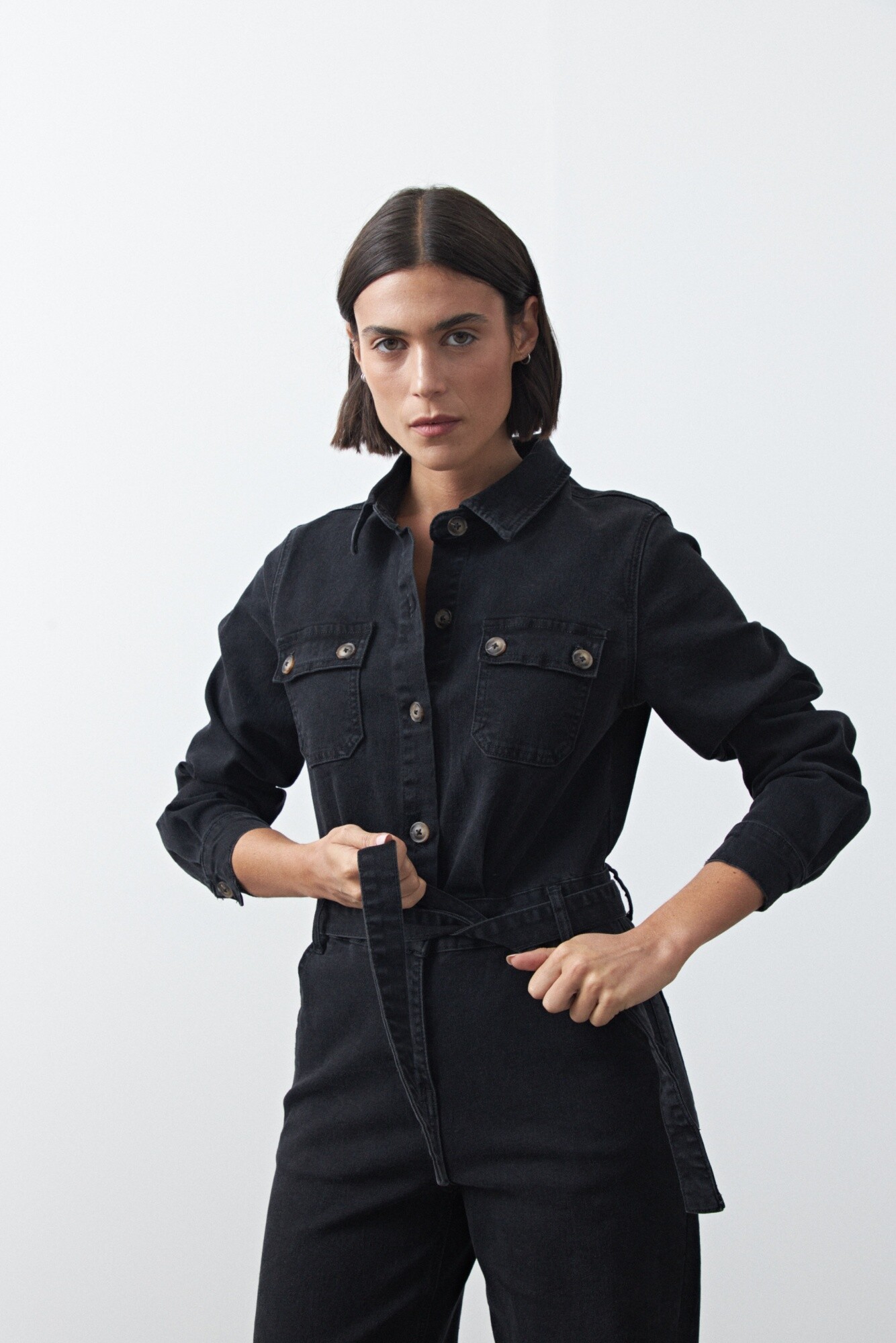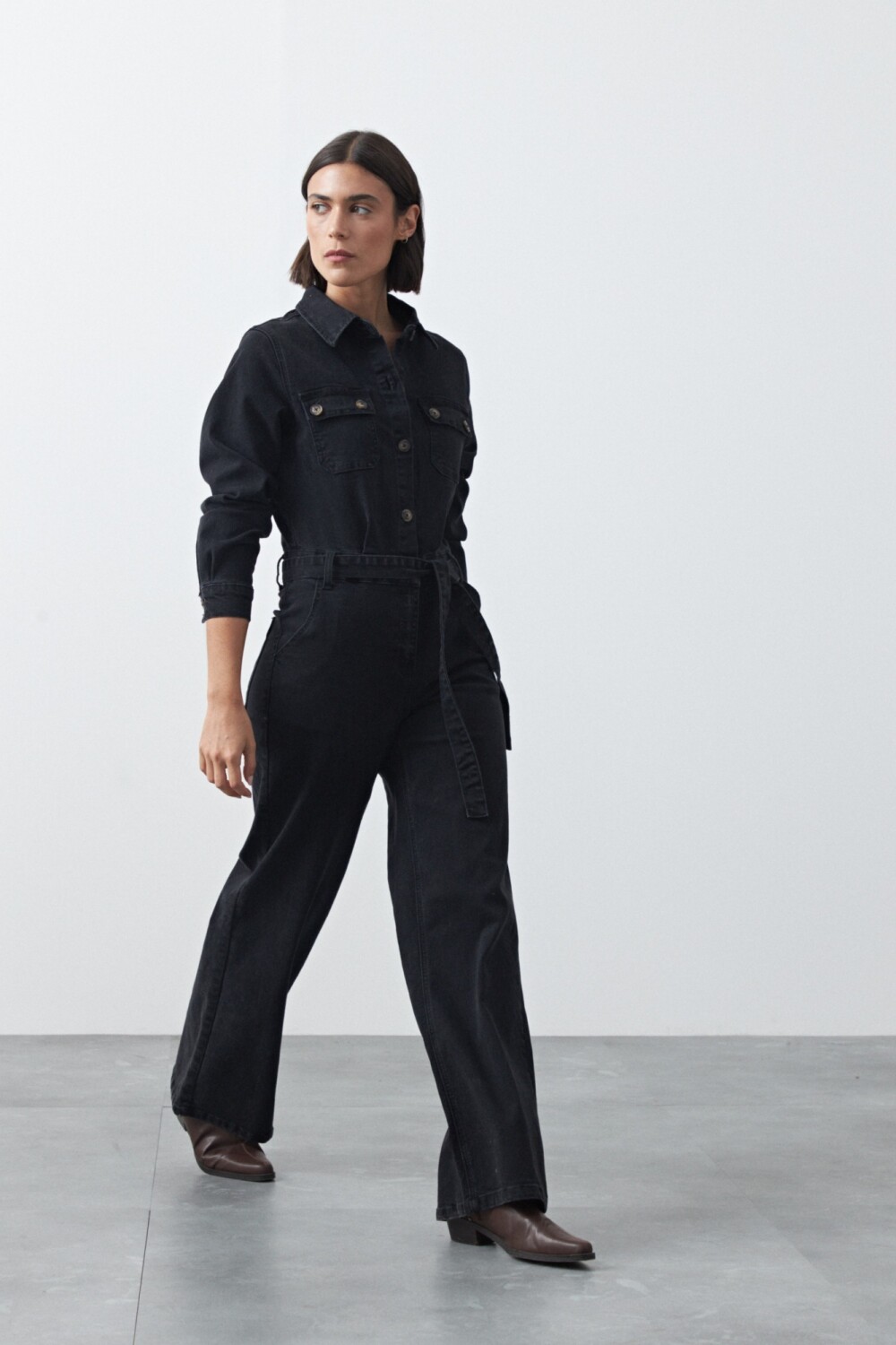 Enterito de jean de silueta recta con piernas amplias que estilizan y aportan un aire moderno. El diseño con bolsillos frontales, cierre con botones y cinturón del mismo tejido permite ajustar la cintura y definir la figura. De manga larga y estructura cómoda, es una prenda versátil que funciona tanto para looks casuales como para opciones más elevadas según cómo se combine.