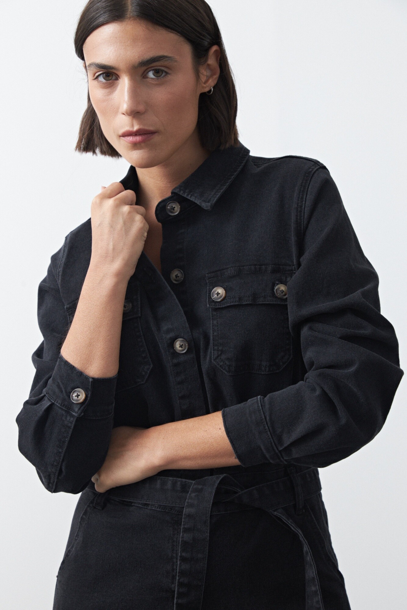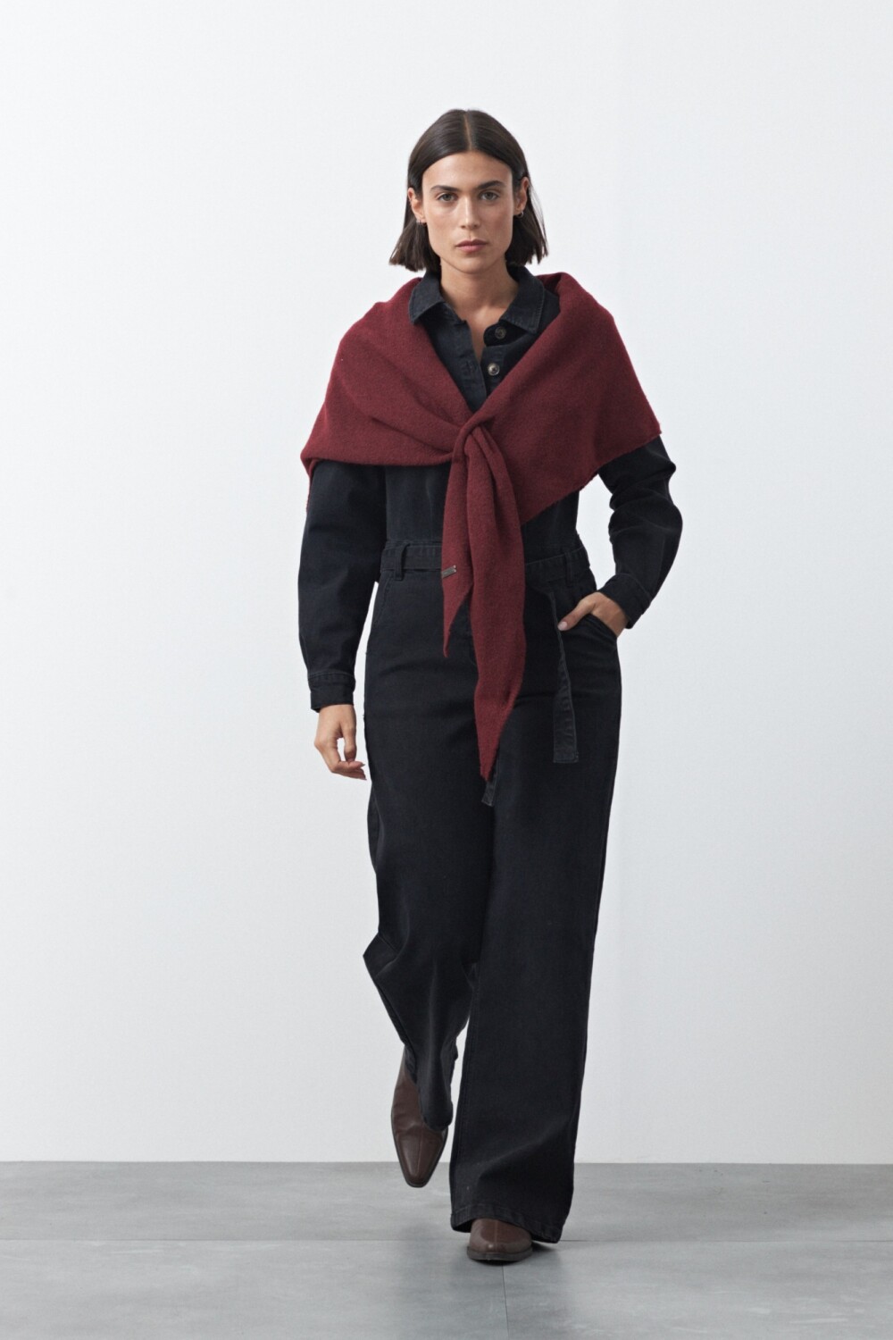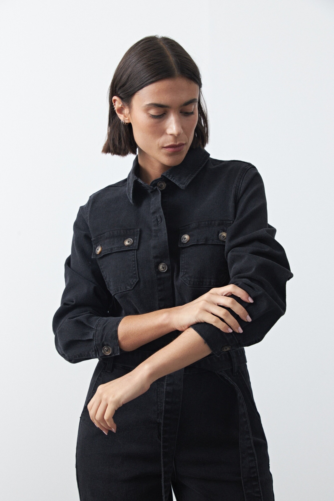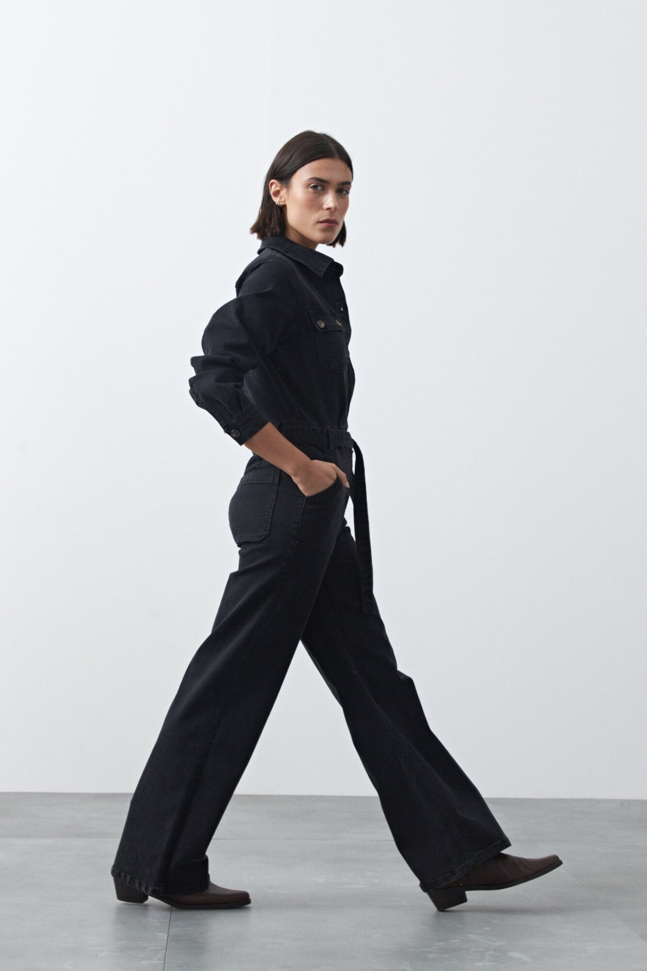 Enterito de jean de silueta recta con piernas amplias que estilizan y aportan un aire moderno. El diseño con bolsillos frontales, cierre con botones y cinturón del mismo tejido permite ajustar la cintura y definir la figura. De manga larga y estructura cómoda, es una prenda versátil que funciona tanto para looks casuales como para opciones más elevadas según cómo se combine.