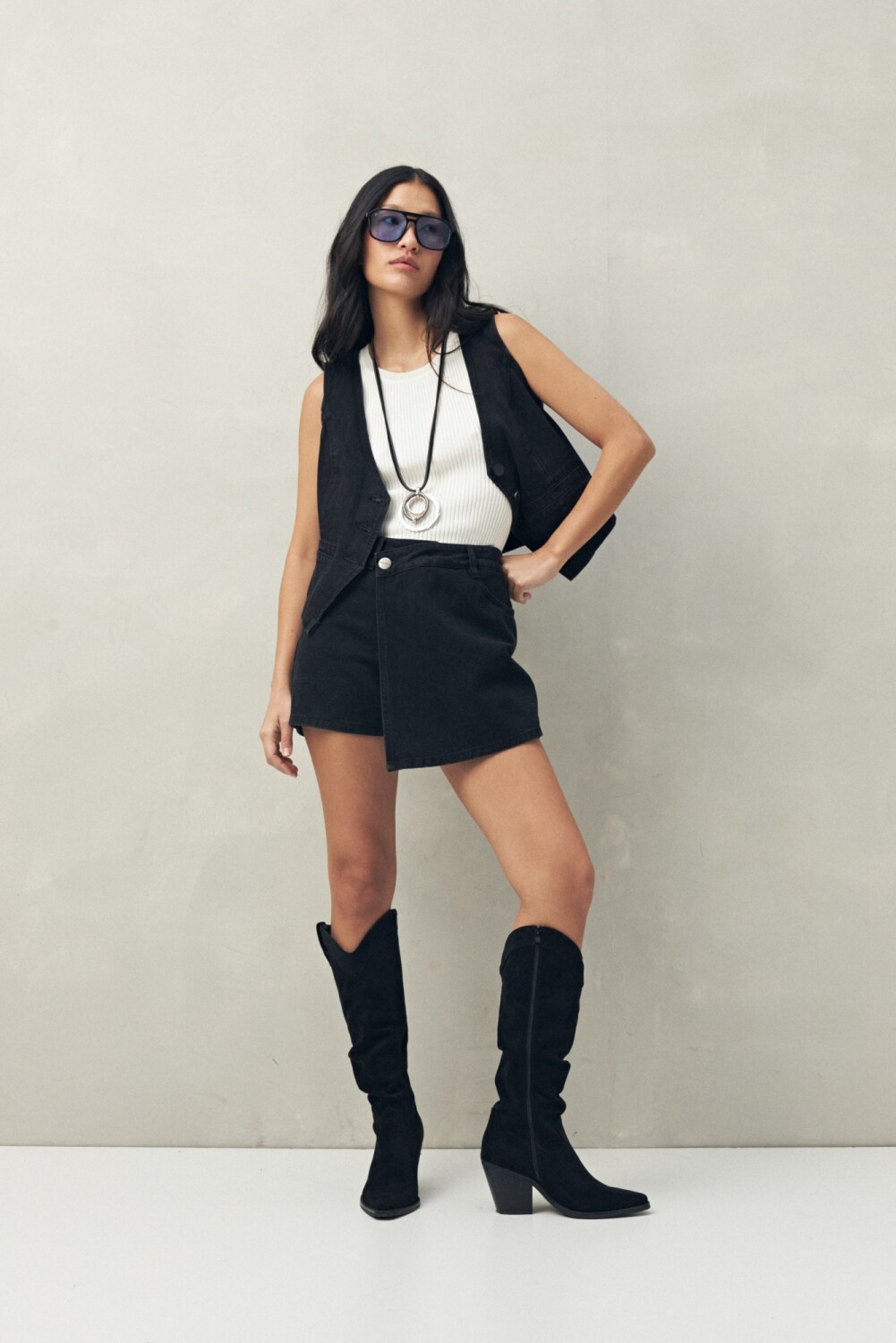 Short pollera confeccionado en denim con textura suave y estructura liviana. Su diseño combina la comodidad del short con el estilo femenino de la pollera, ideal para looks casuales o de salida. Un infaltable del guardarropa que se adapta fácilmente a distintas ocasiones.