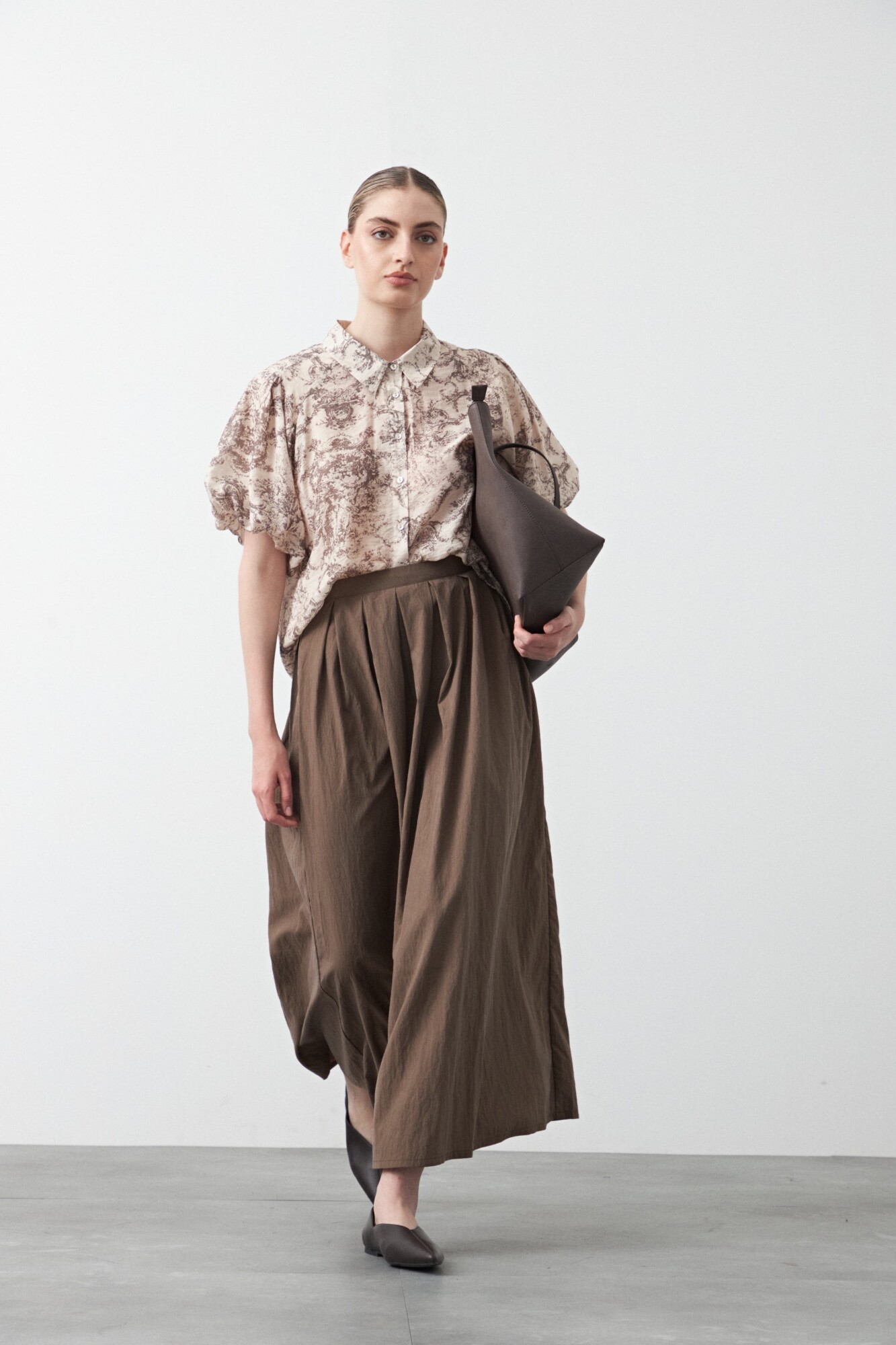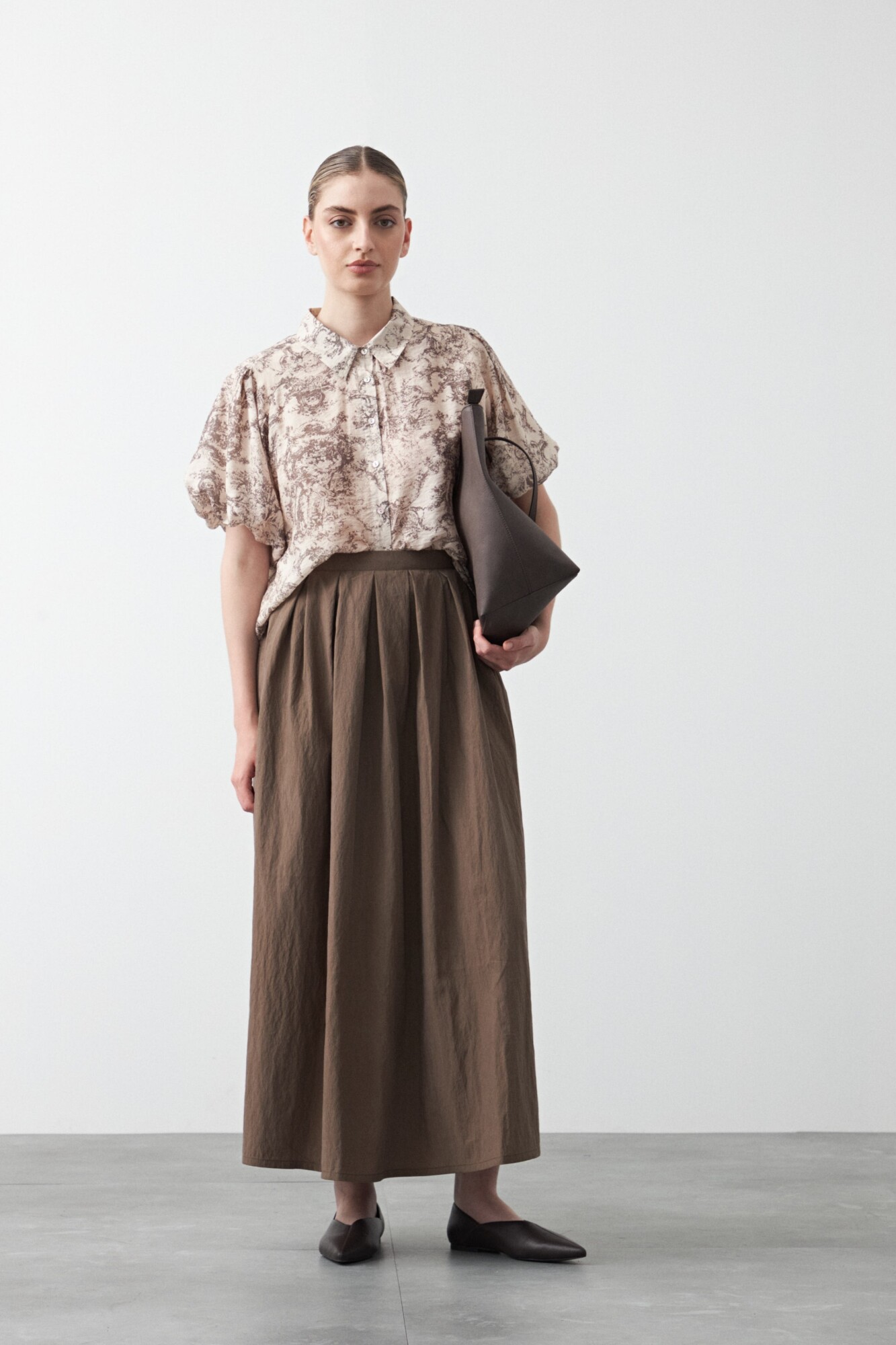 Falda larga plisada, de silueta amplia y caída fluida que aporta movimiento y un calce elegante. El diseño con pliegues definidos acompaña la forma sin marcar, mientras la cintura realza la silueta y suma comodidad. Una opción versátil para armar looks urbanos o más pulidos según cómo se combine.