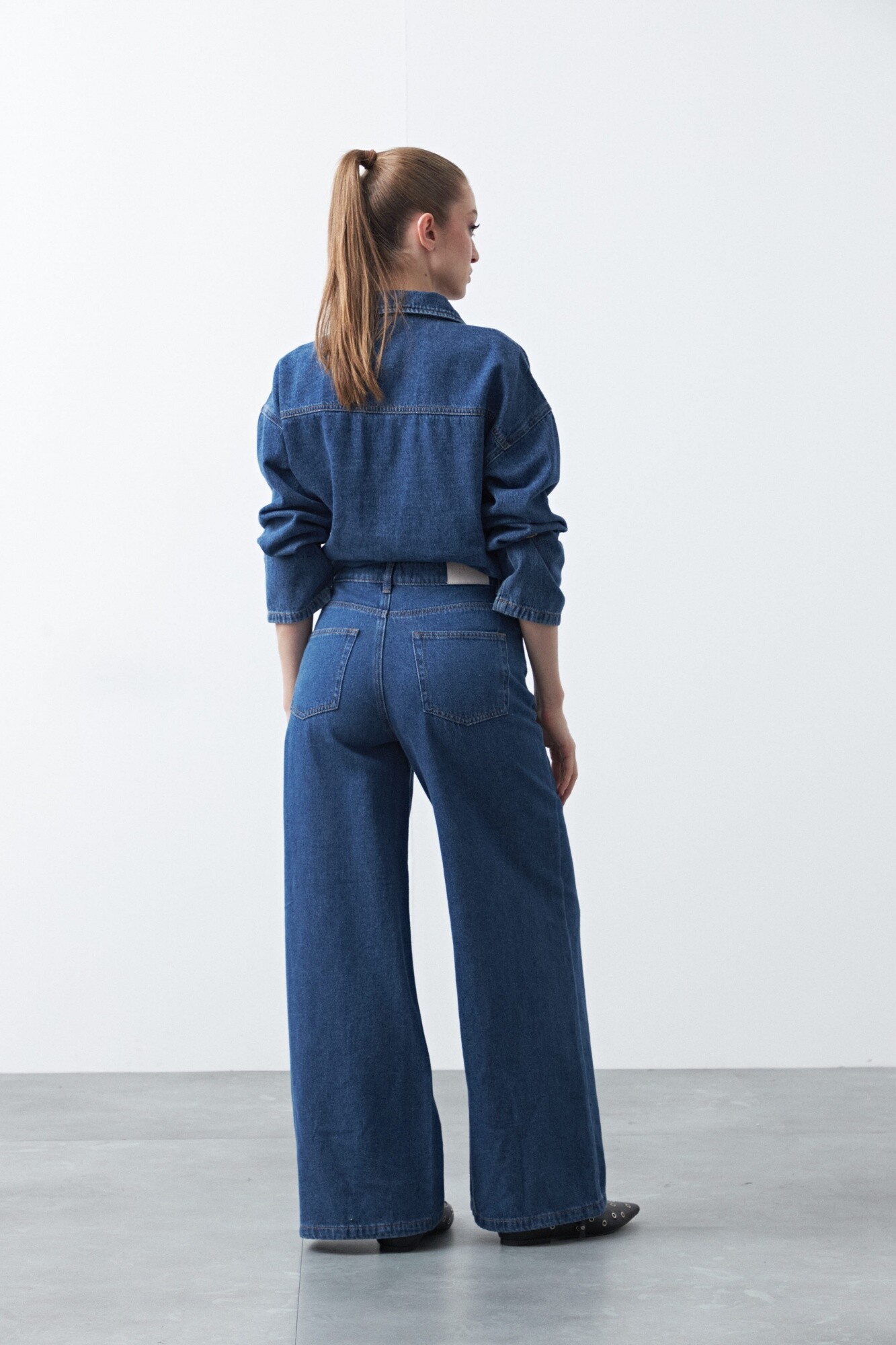 Jean wide leg de silueta amplia y caída fluida, diseñado para estilizar la figura con un fit relajado que acompaña el movimiento sin perder estructura. Presenta detalle de tachas aplicadas que recorren el diseño y aportan un diferencial sutil pero con carácter. La confección en denim de algodón brinda firmeza y comodidad, logrando un calce que se adapta muy bien al cuerpo y resulta clave para elevar cualquier look, tanto en outfits urbanos como en propuestas más arregladas. Un básico en tendencia que suma personalidad al estilismo diario.
