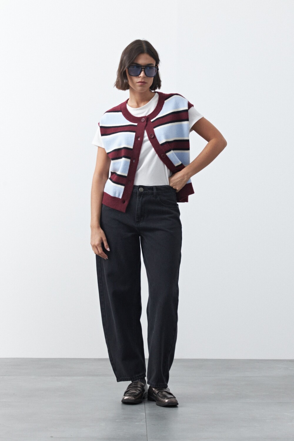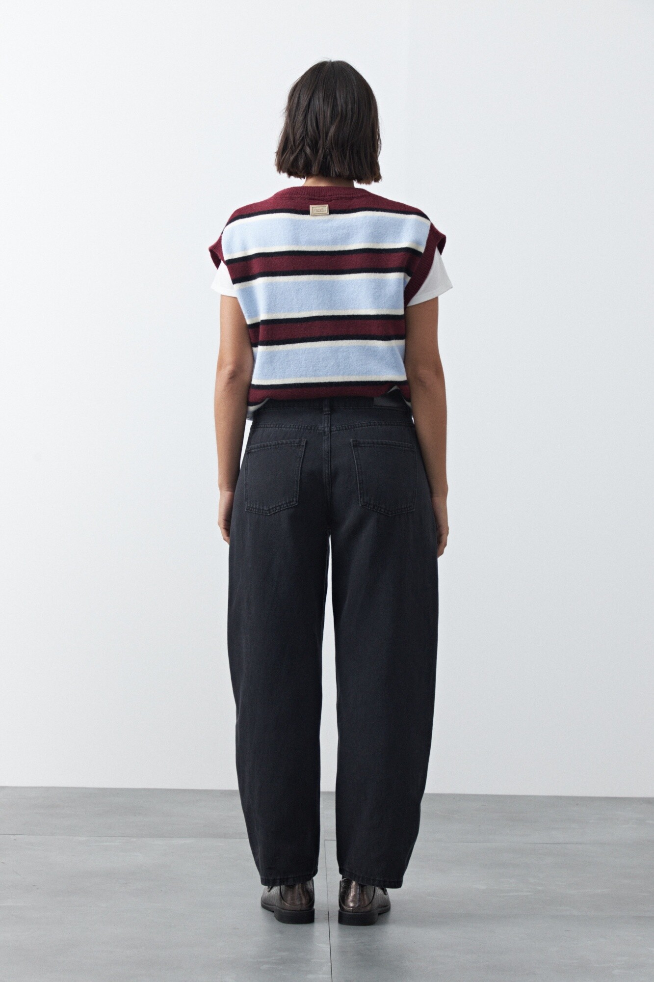 Jean fit barrel de silueta curva y volumen controlado, una de las formas más actuales dentro del denim. Su diseño se ensancha levemente en pierna y se ajusta en el bajo, creando una estructura moderna que aporta personalidad al look.