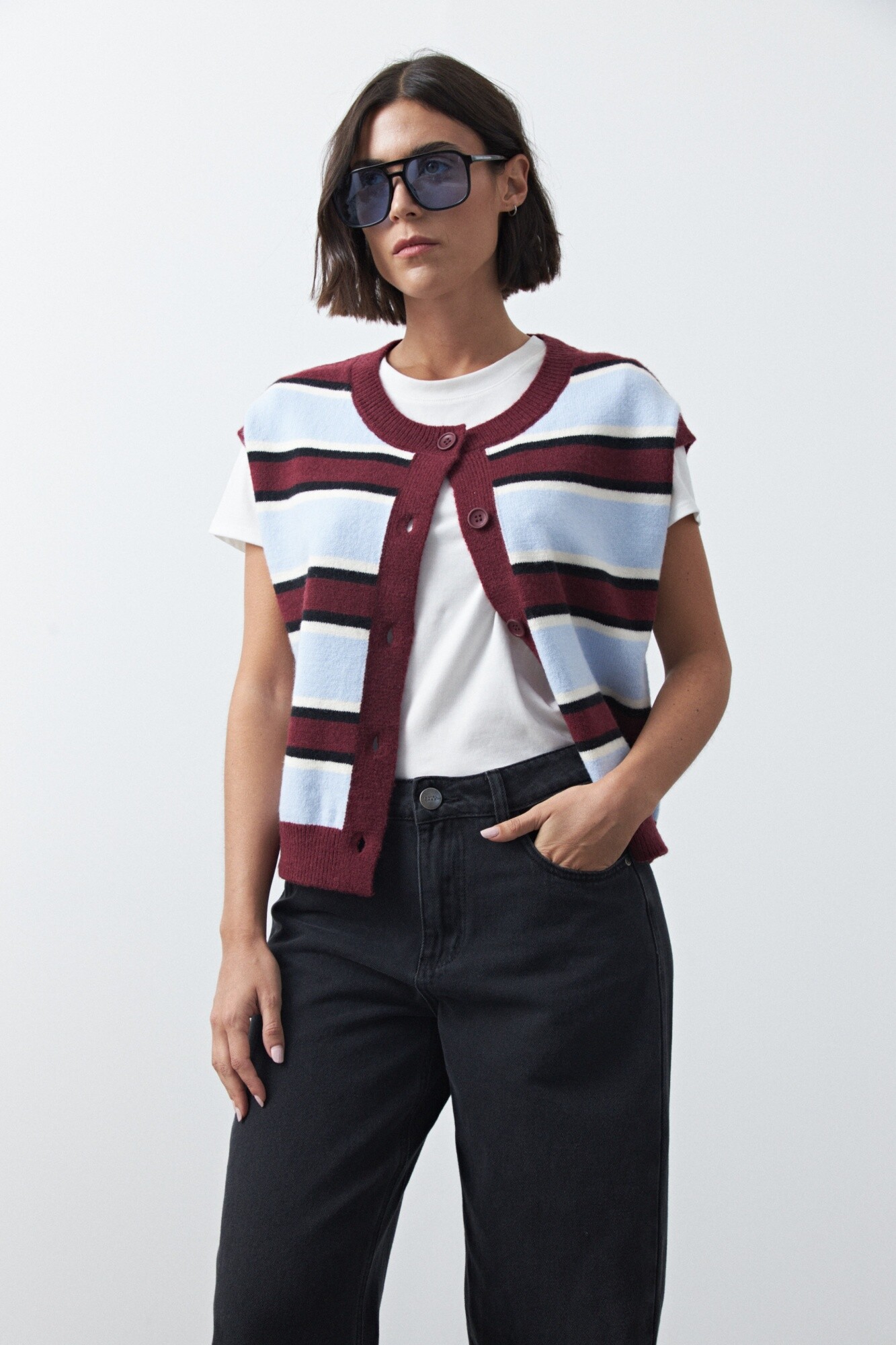 El tejido aporta cuerpo y mantiene la forma, logrando un equilibrio entre tendencia y comodidad para el uso diario.