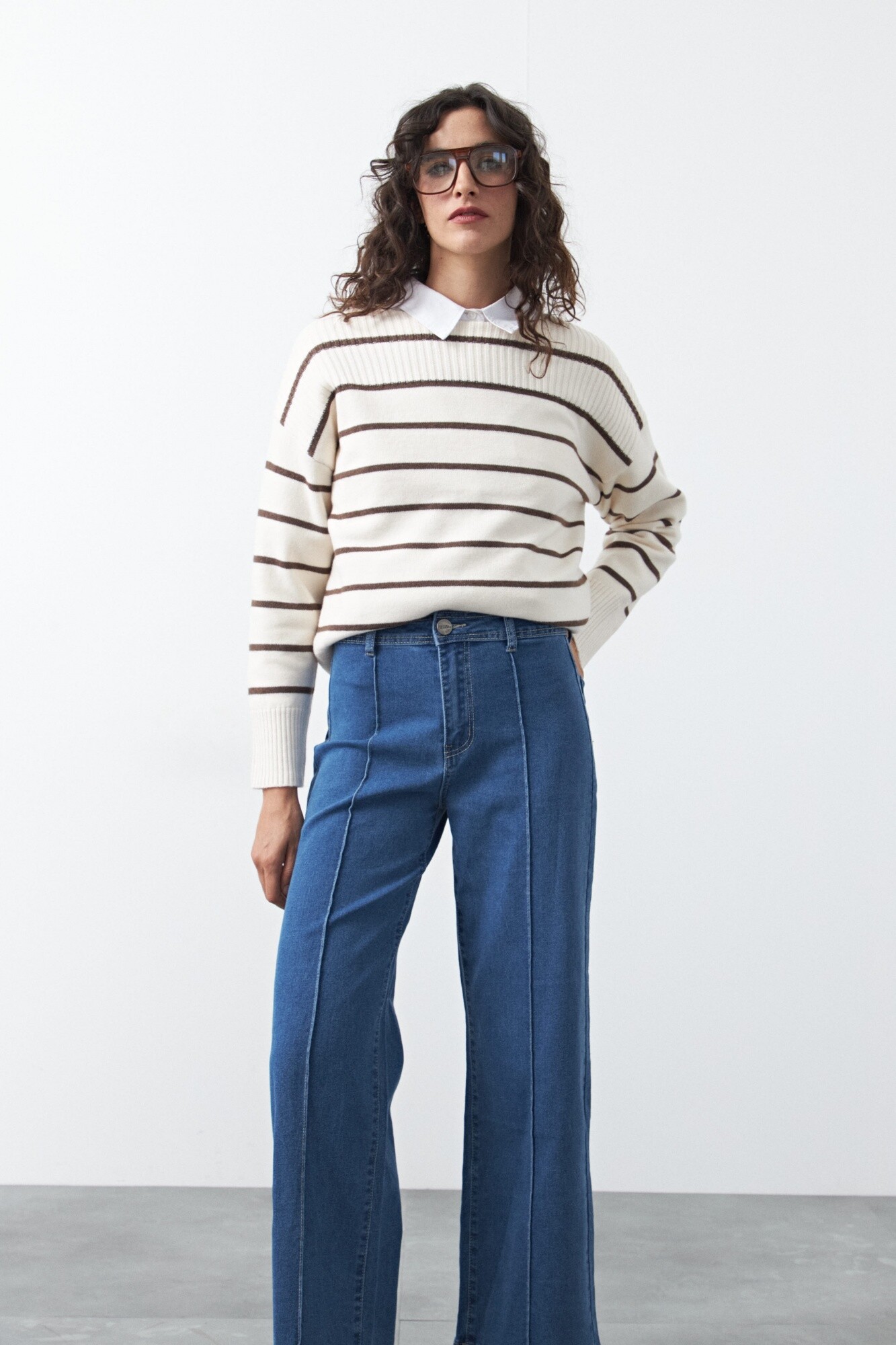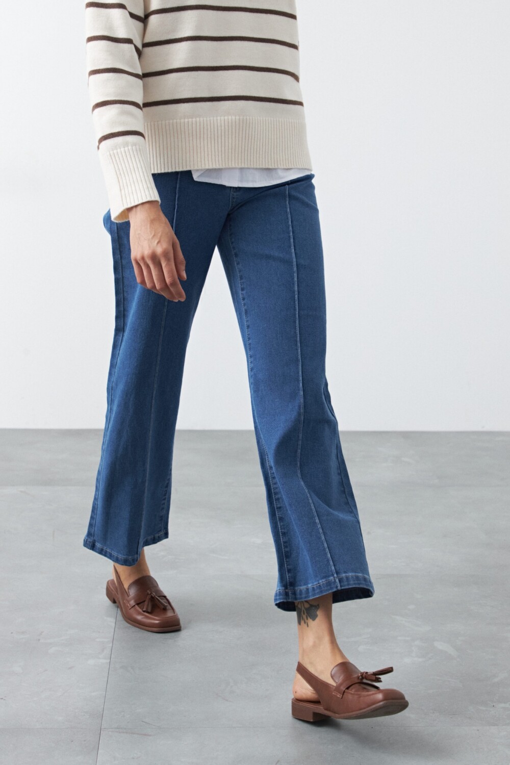 Jean wide leg de algodón con spandex, diseñado para lograr una silueta amplia y fluida que acompaña el movimiento sin perder estructura. El tejido combina firmeza y elasticidad, aportando un calce cómodo que se adapta al cuerpo y estiliza la pierna. Un ítem versátil, clave para elevar cualquier look y sumar un aire moderno tanto en outfits urbanos como más pulidos o de oficina.