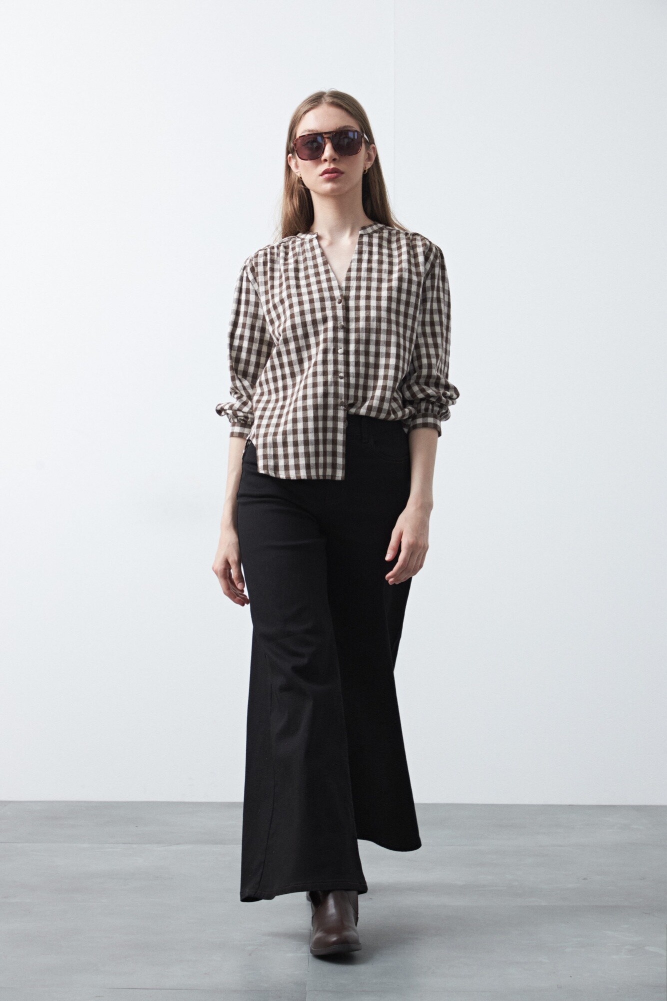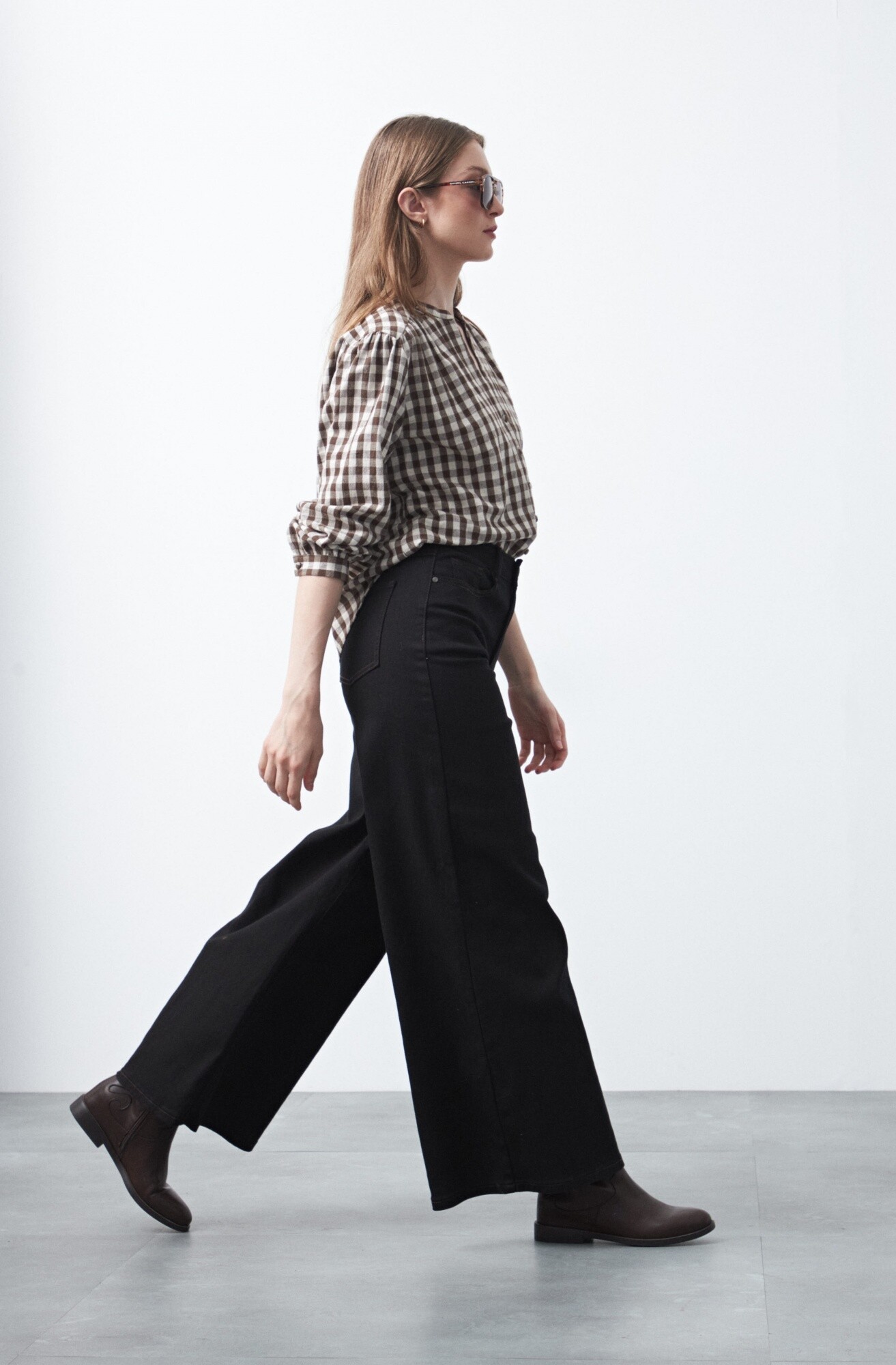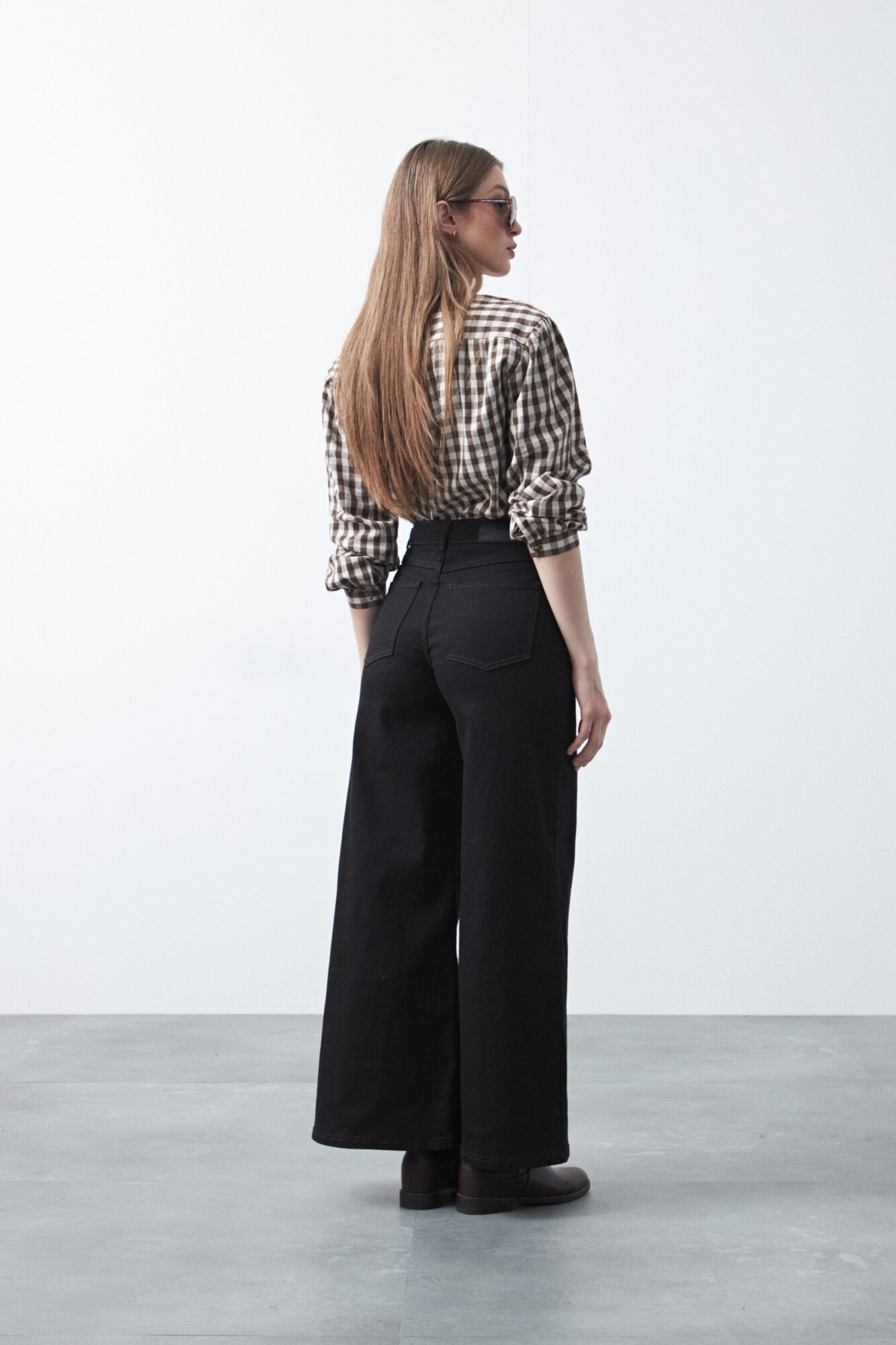 Pantalón wide leg de algodón con elastano, de calce amplio y caída recta que estiliza la silueta. El diseño de tiro alto realza la cintura y equilibra el volumen de la pierna, logrando un look moderno y relajado a la vez. Con pespuntes a contratono, aporta comodidad sin perder estilo.