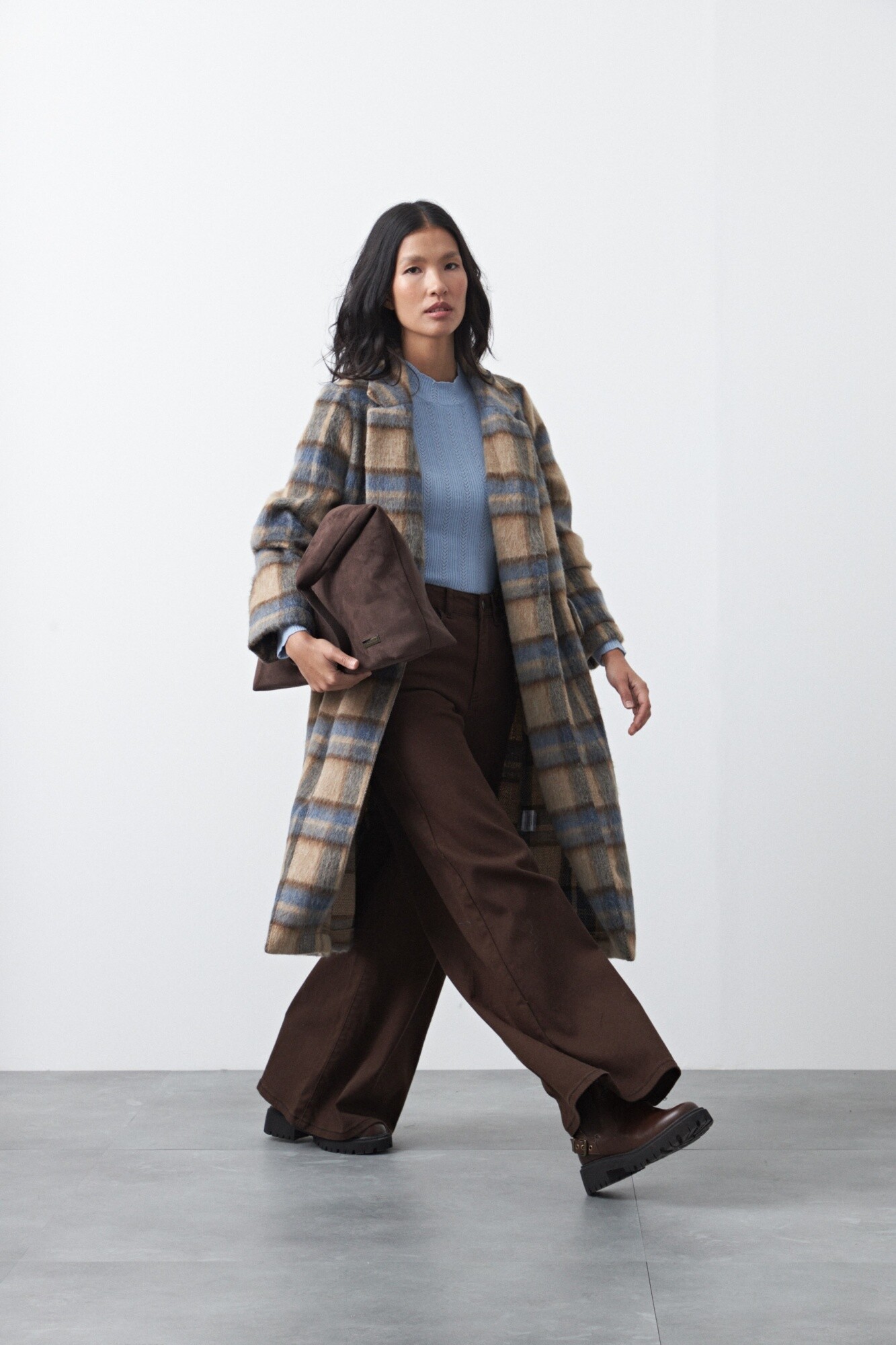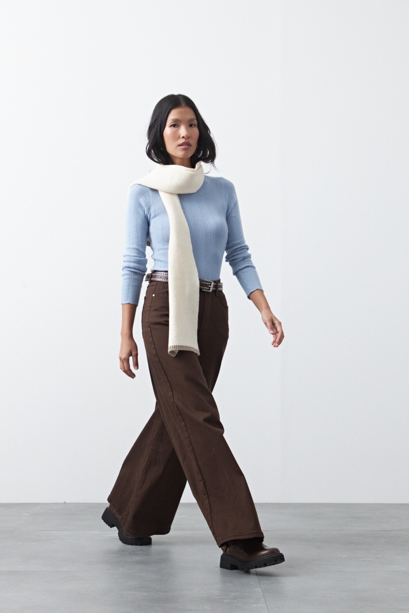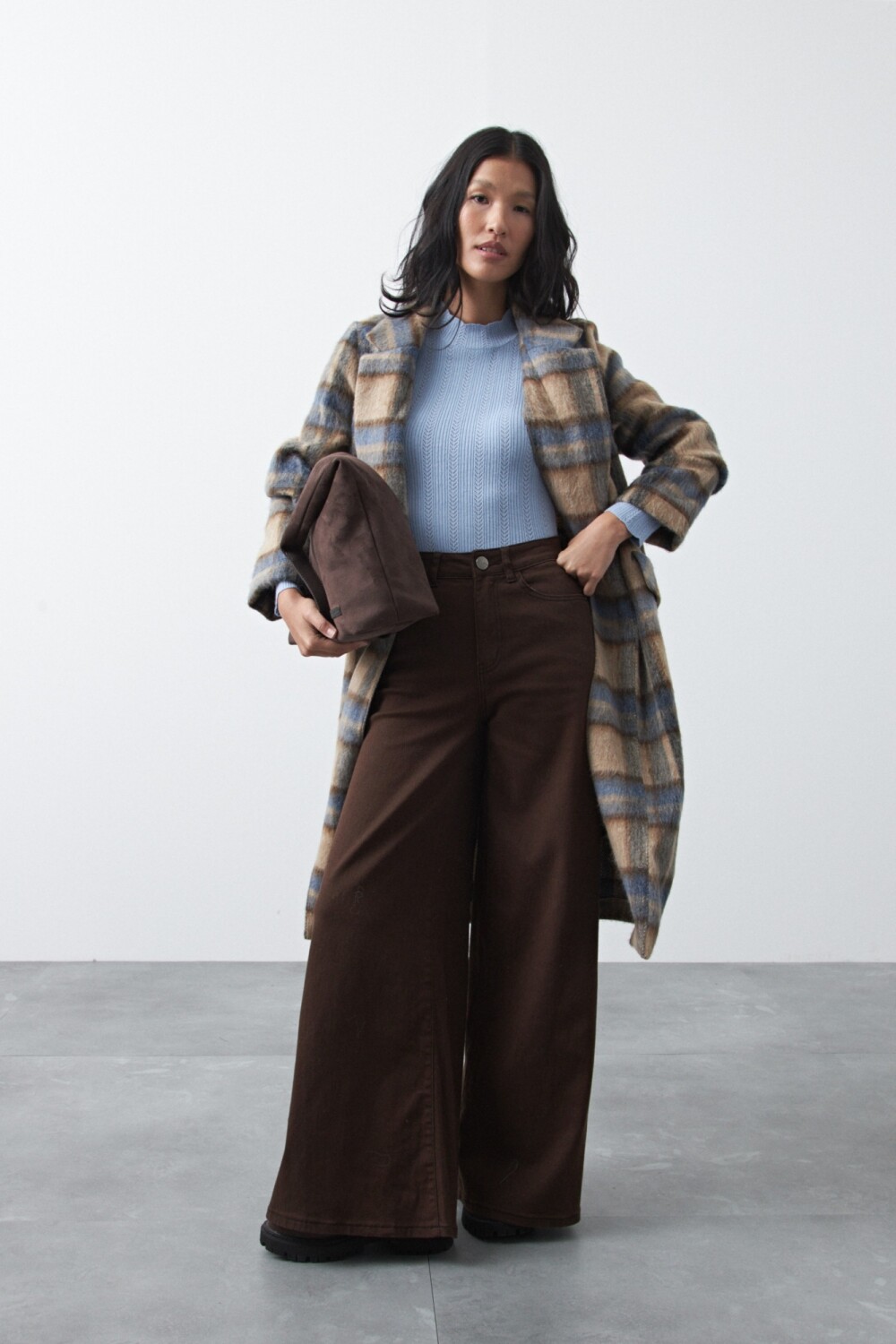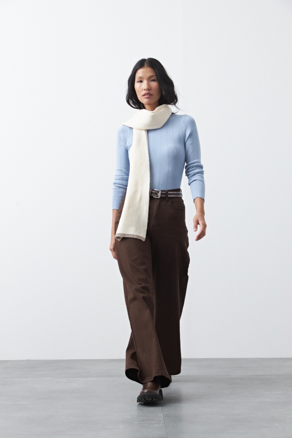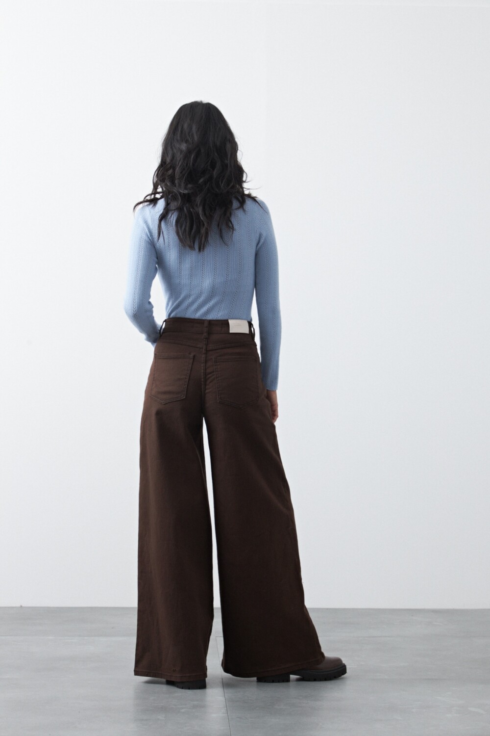 Pantalón wide leg de algodón con elastano, de calce amplio y caída recta que estiliza la silueta. El diseño de tiro alto realza la cintura y equilibra el volumen de la pierna, logrando un look moderno y relajado a la vez. Con pespuntes a contratono, aporta comodidad sin perder estilo.