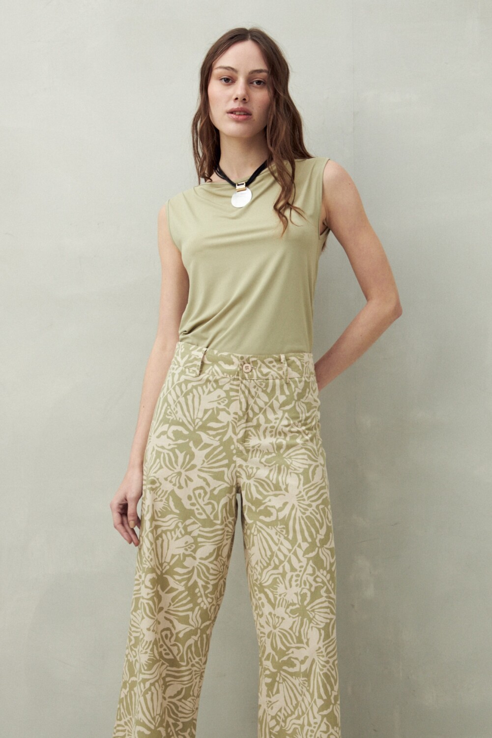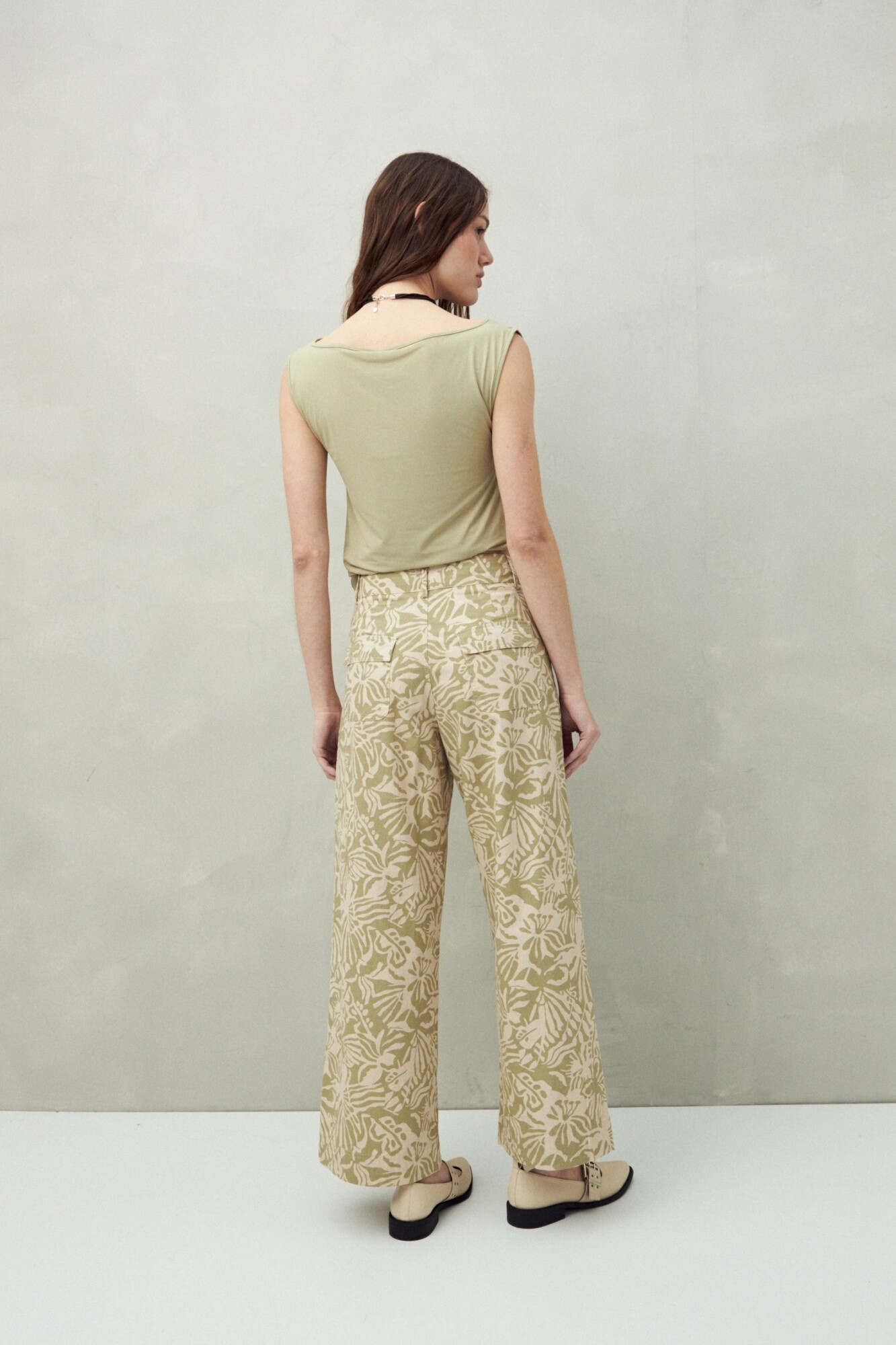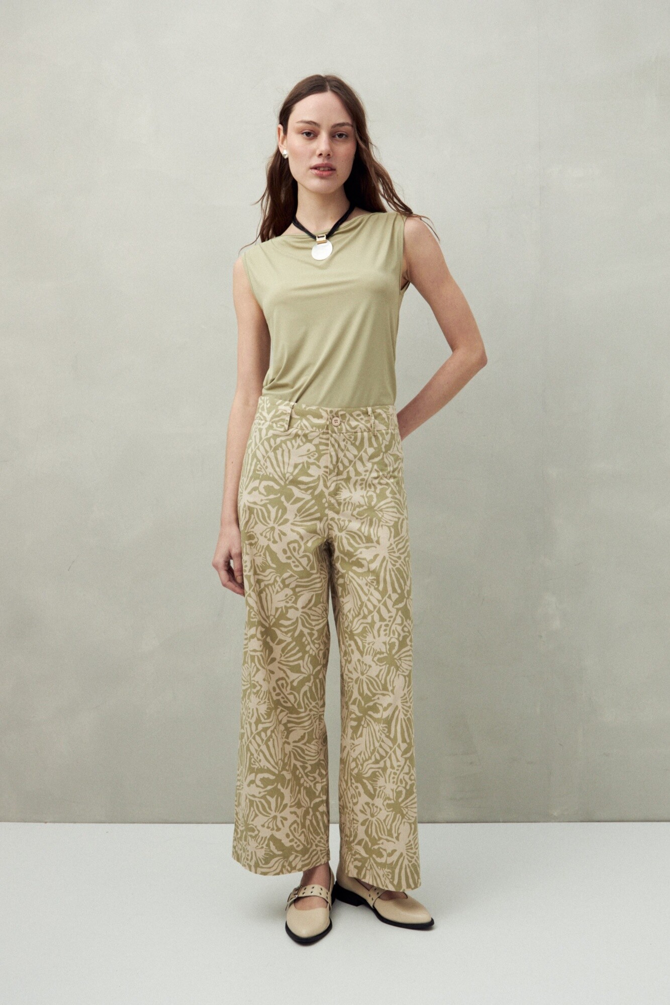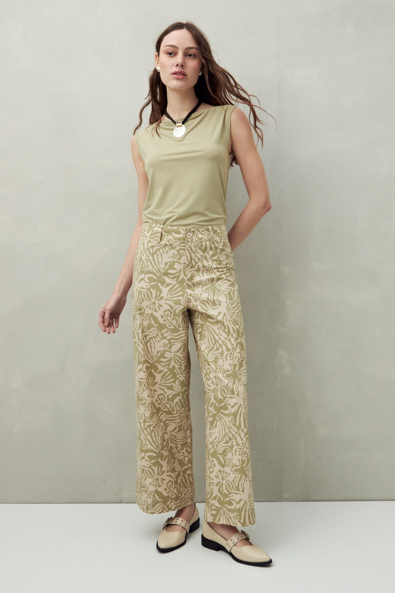 Pantalón ancho de algodón con fit relajado y bolsillos de parche, ideal para sumar comodidad y frescura a tu look. Disponible en diferentes estampas, desde rayas diagonales que estilizan la silueta hasta motivos botánicos que aportan un aire veraniego y canchero. Una prenda versátil y trendy, pensada para destacar tanto en un outfit urbano como en combinaciones más descontracturadas.