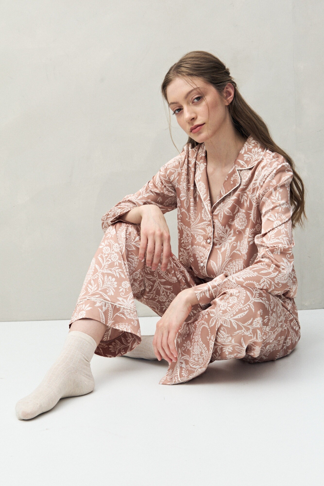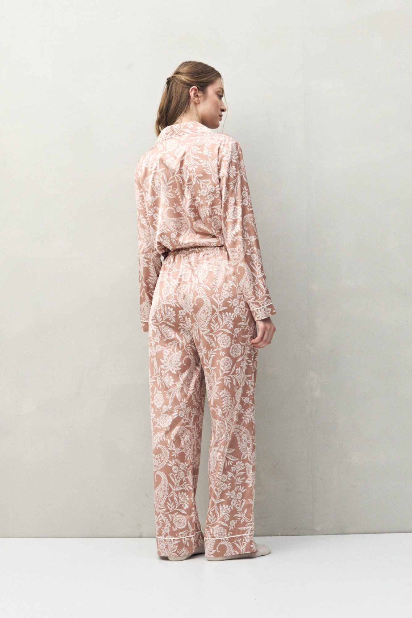 Pantalón de pijama de fit relajado, pensado para maximizar la comodidad sin resignar diseño. Cuenta con cintura elastizada que se adapta suavemente al cuerpo y un calce fluido que acompaña el movimiento. La estampa aporta identidad y continuidad estética al conjunto, logrando una pieza ideal para combinar con la camisa a juego o con otros tops de la línea.