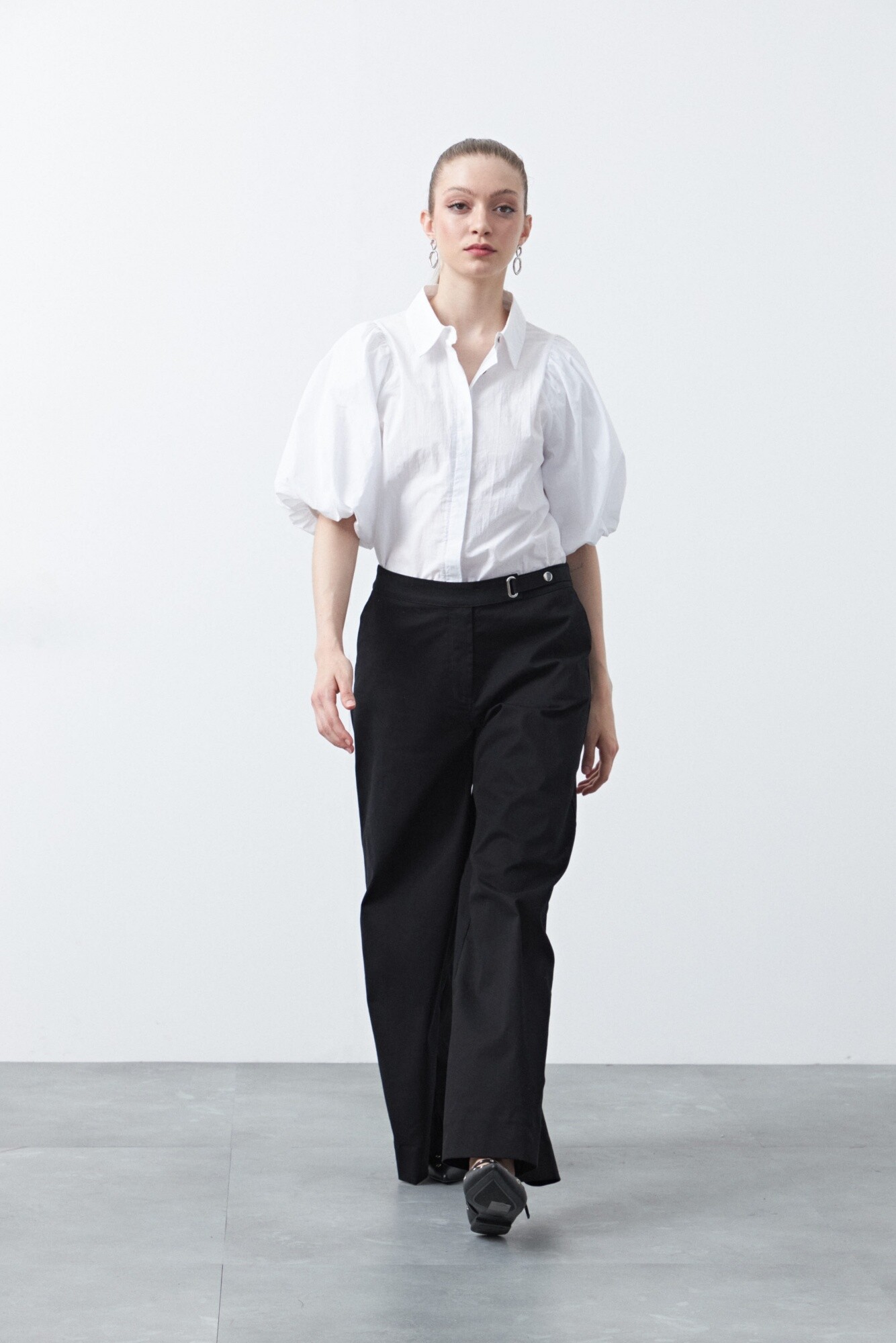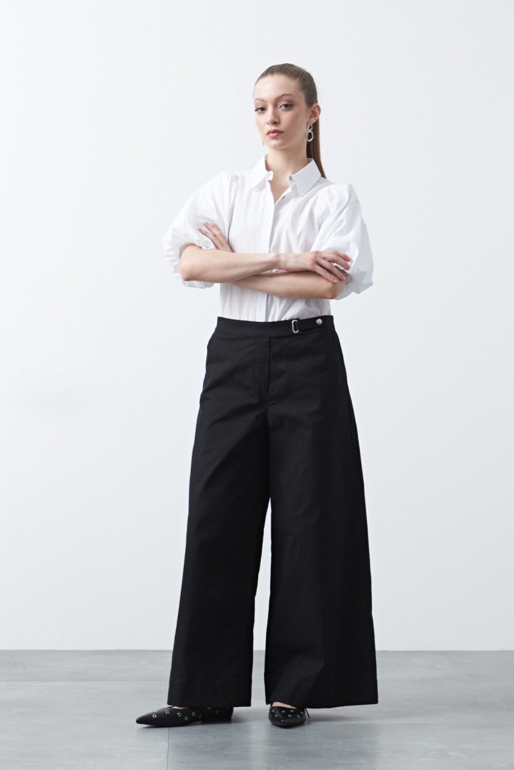 Pantalón wide leg de líneas limpias y calce relajado, una silueta que se consolidó como tendencia por su equilibrio entre comodidad y elegancia. Su estructura amplia desde la cadera genera movimiento y estiliza la figura, aportando una presencia moderna que eleva cualquier look. El tejido con leve elasticidad brinda mayor confort y acompaña el movimiento, mientras que los detalles de sastrería suman un acabado pulido ideal tanto para estilismos urbanos como más sofisticados.