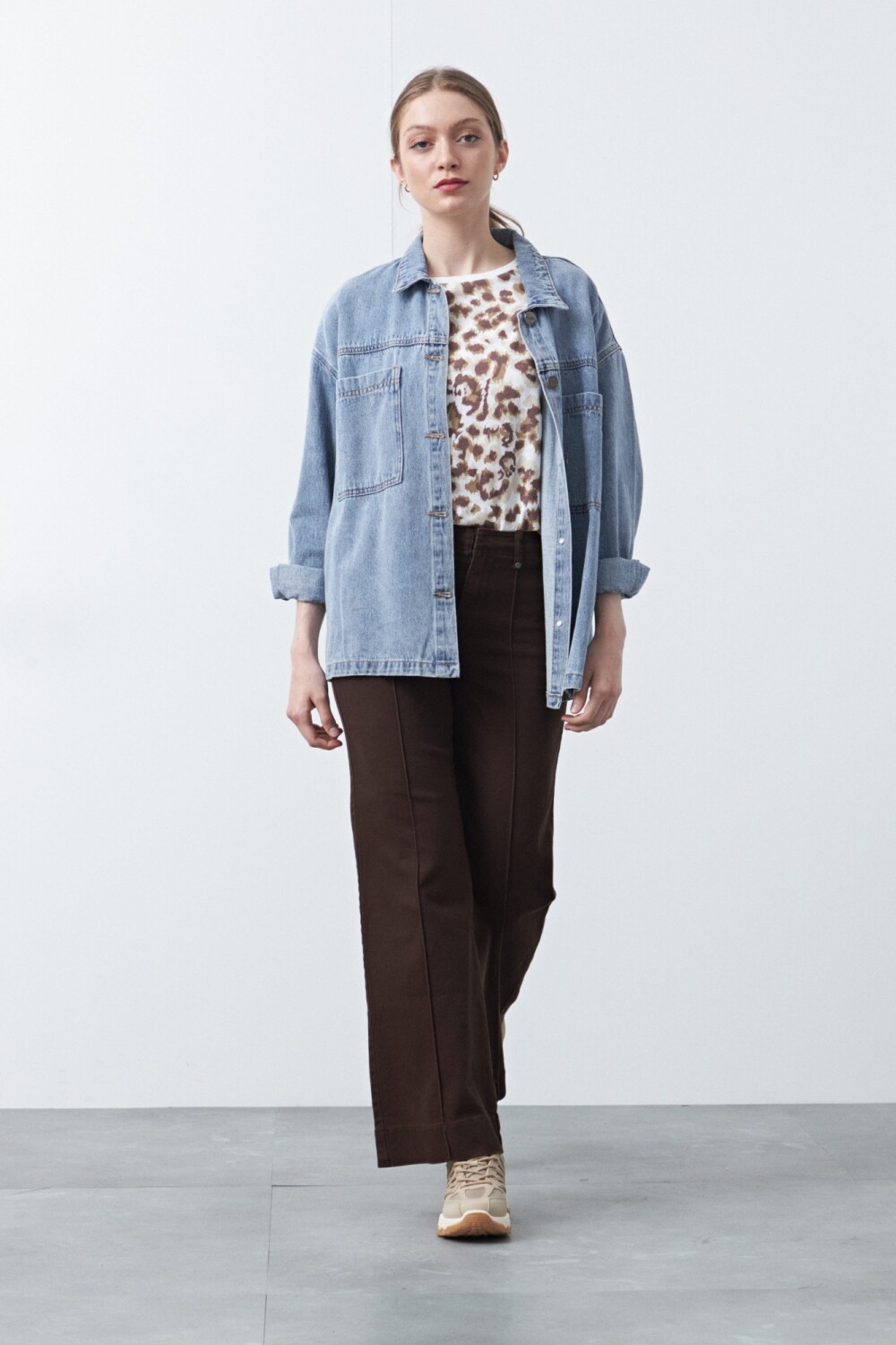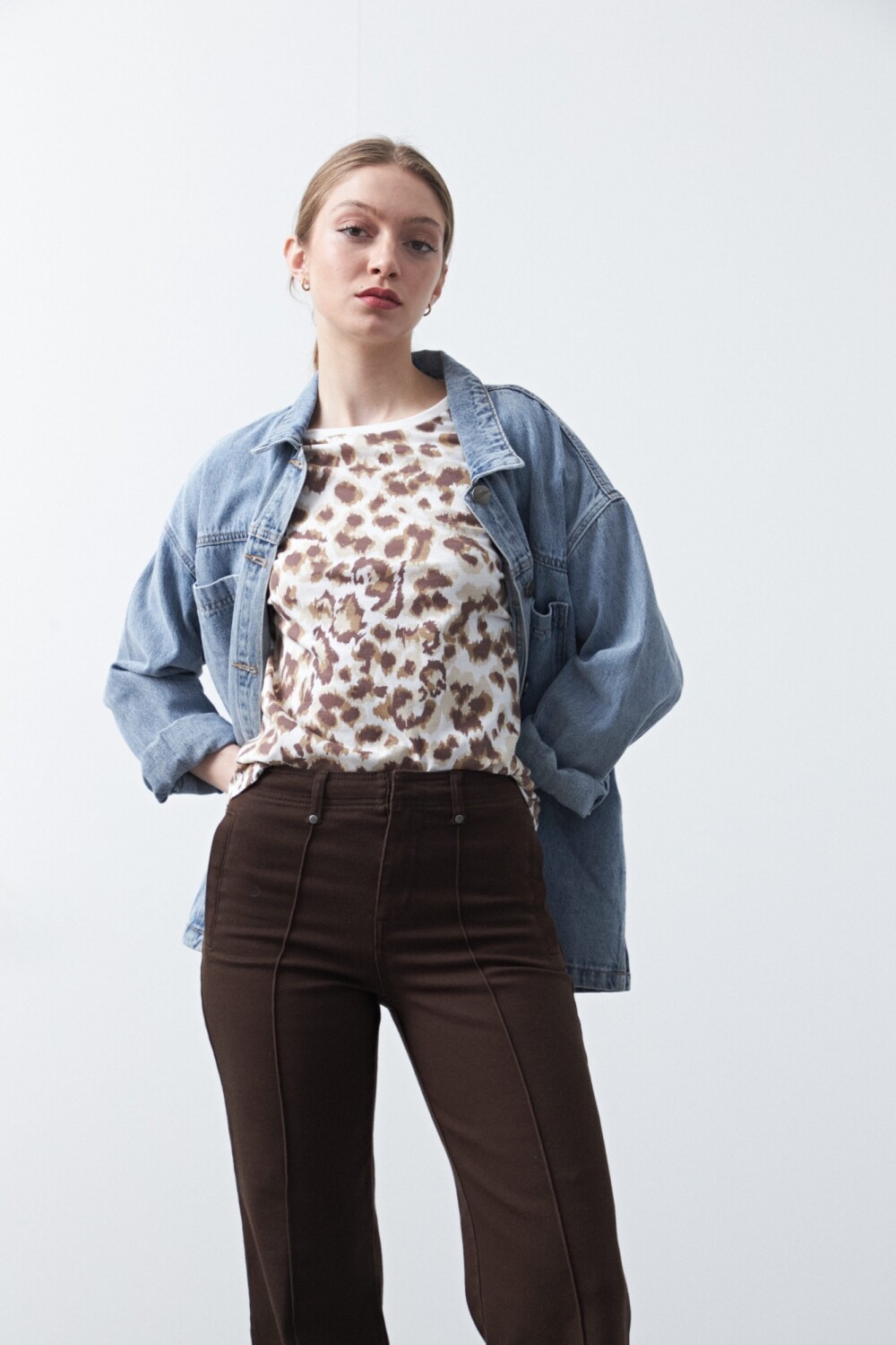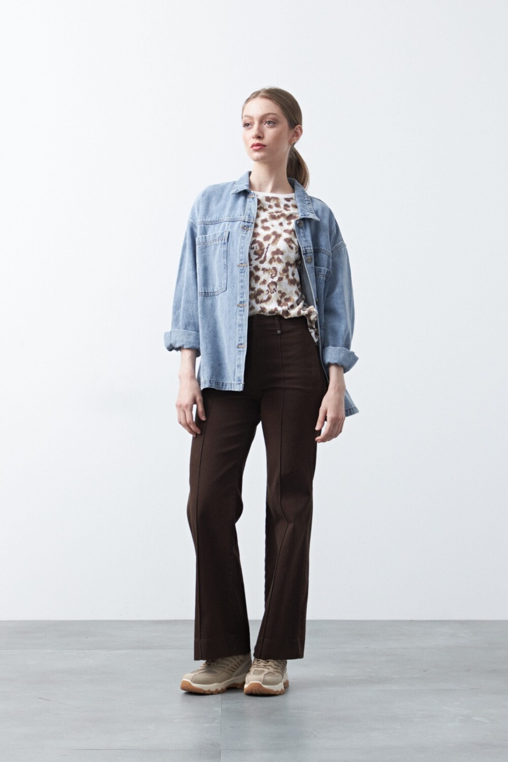 Pantalón de fit recto con silueta clásica y líneas limpias. Su diseño de inspiración atemporal aporta un calce cómodo que acompaña el movimiento sin perder estructura, convirtiéndolo en una opción versátil para looks de día o propuestas más formales.