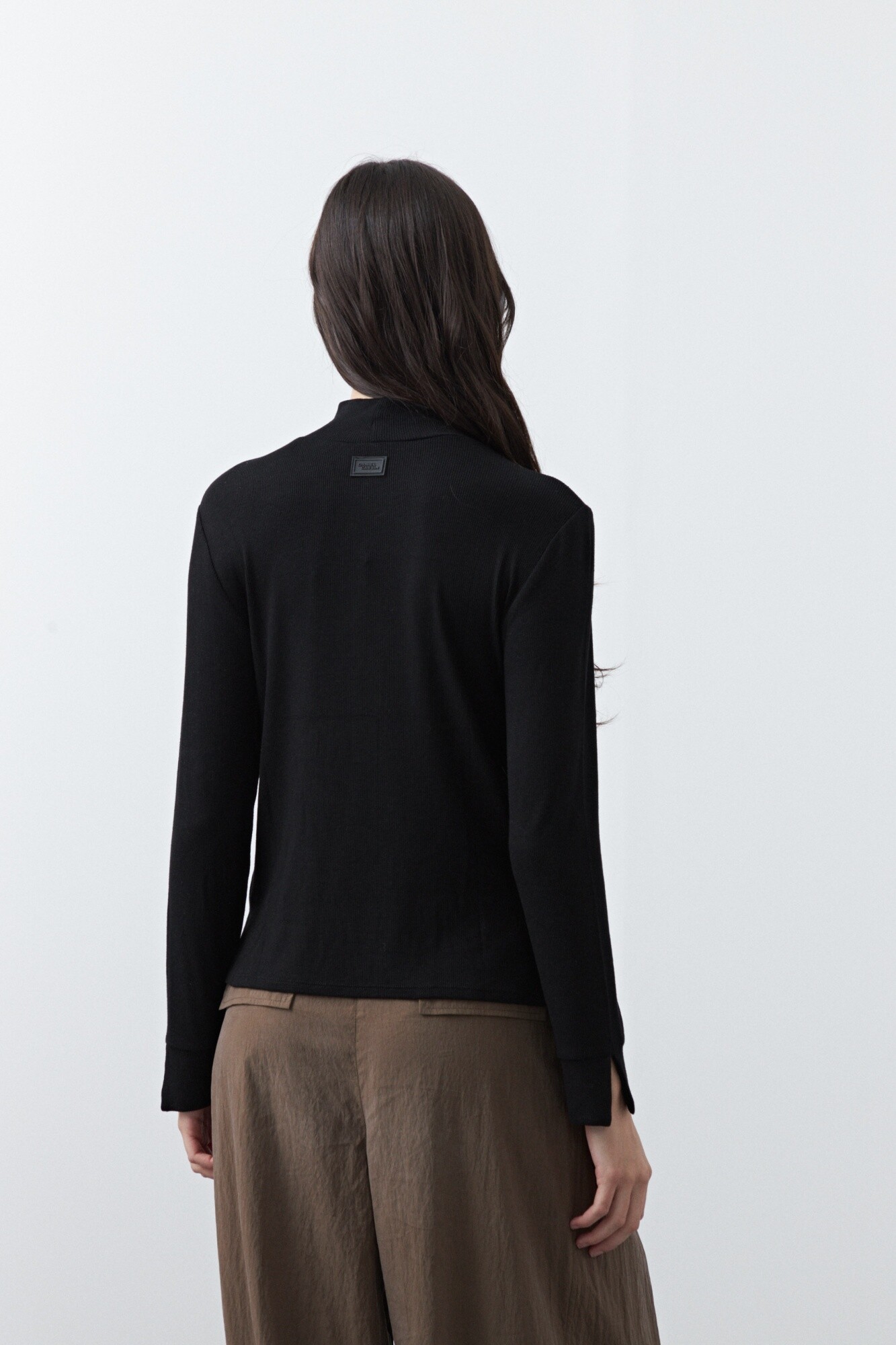 Polera de silueta ajustada con cuello alto, ideal para sumar capas con un look limpio y sofisticado. Su diseño minimalista la convierte en un básico clave para el día a día, fácil de combinar tanto en outfits de oficina como en propuestas más relajadas.