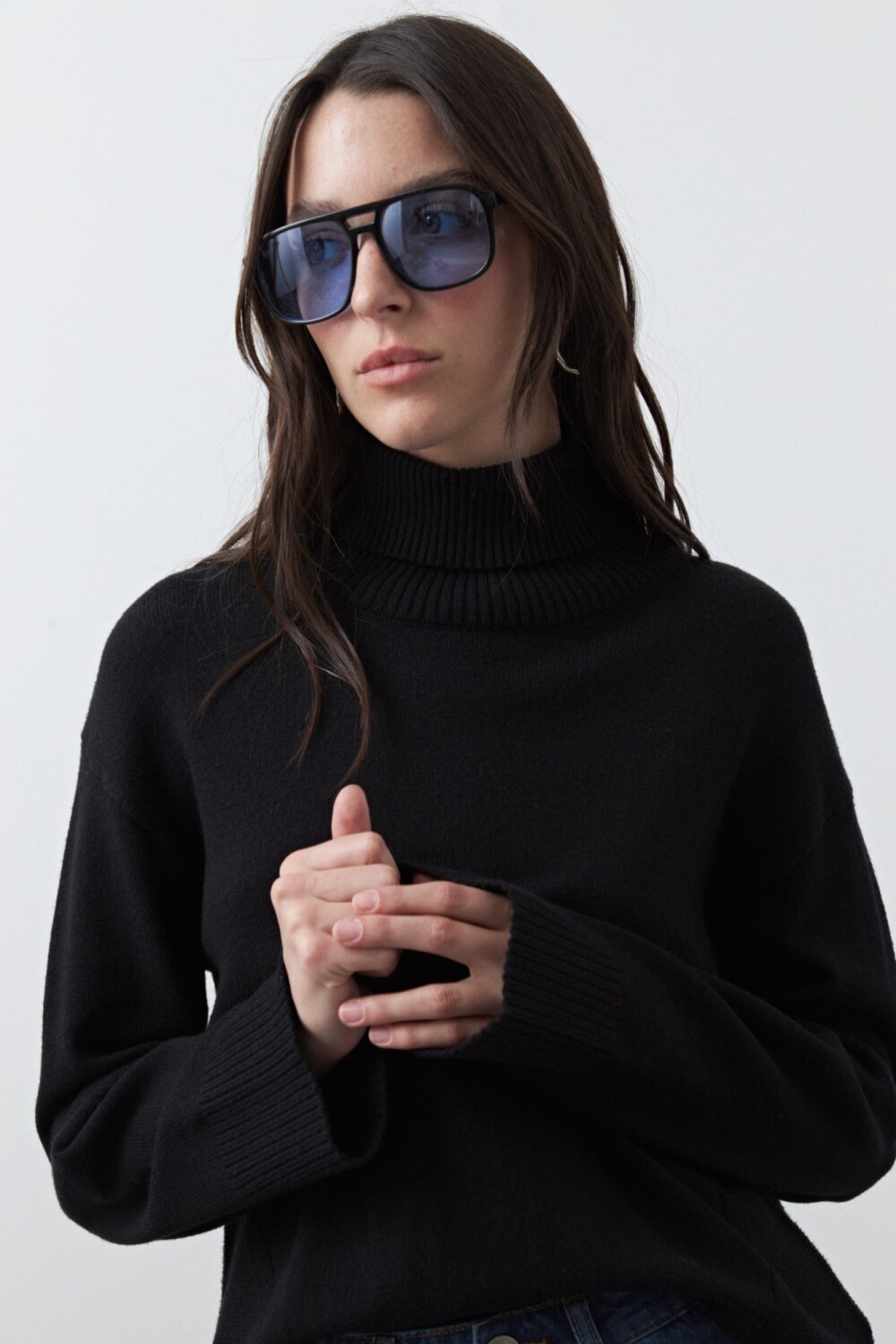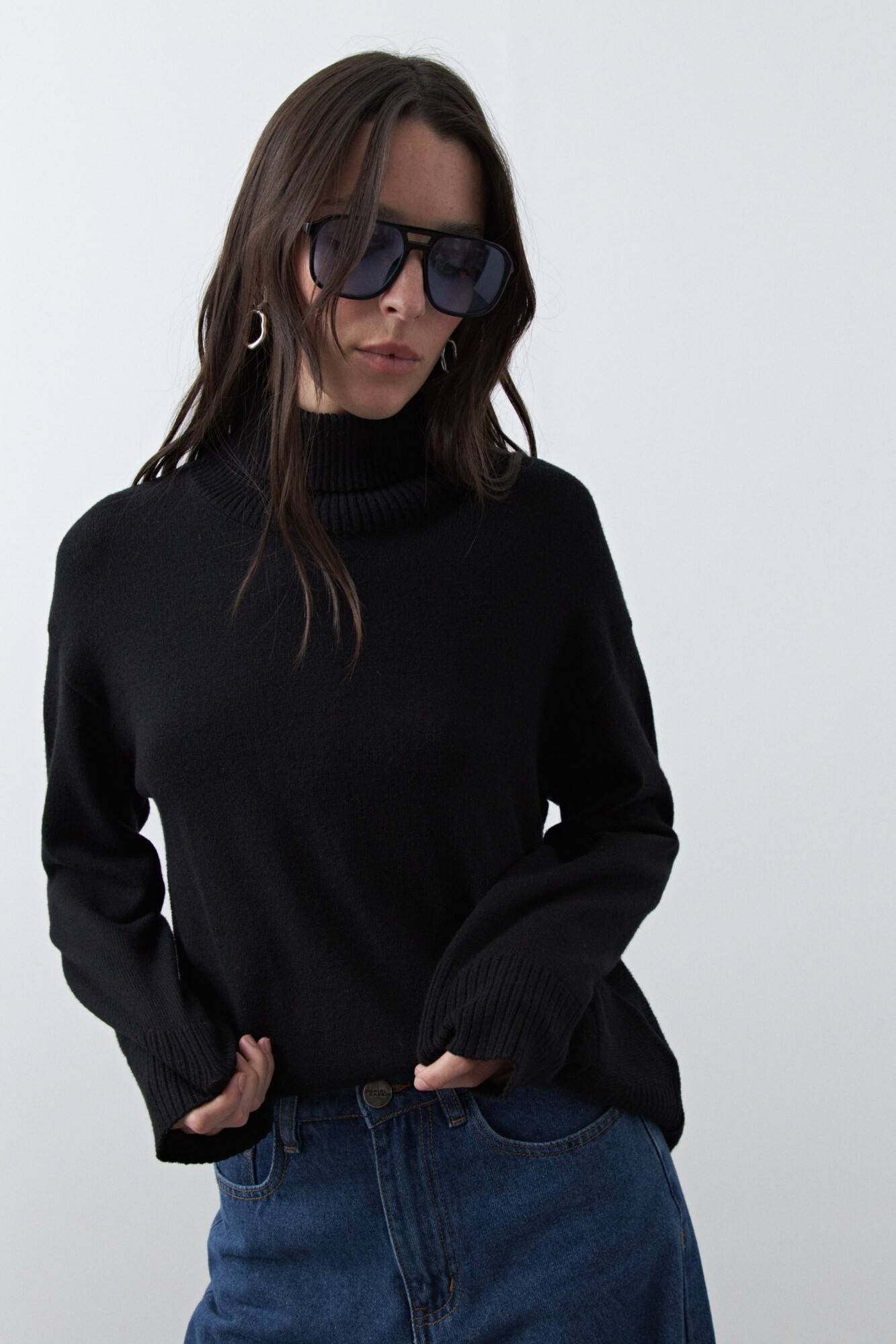 20 Polera de tejido liviano con cuello alto, que combina suavidad y caída fluida en una silueta relajada. Su diseño minimalista se realza con recortes laterales que aportan estructura y un sutil diferencial, manteniendo un look limpio y versátil.