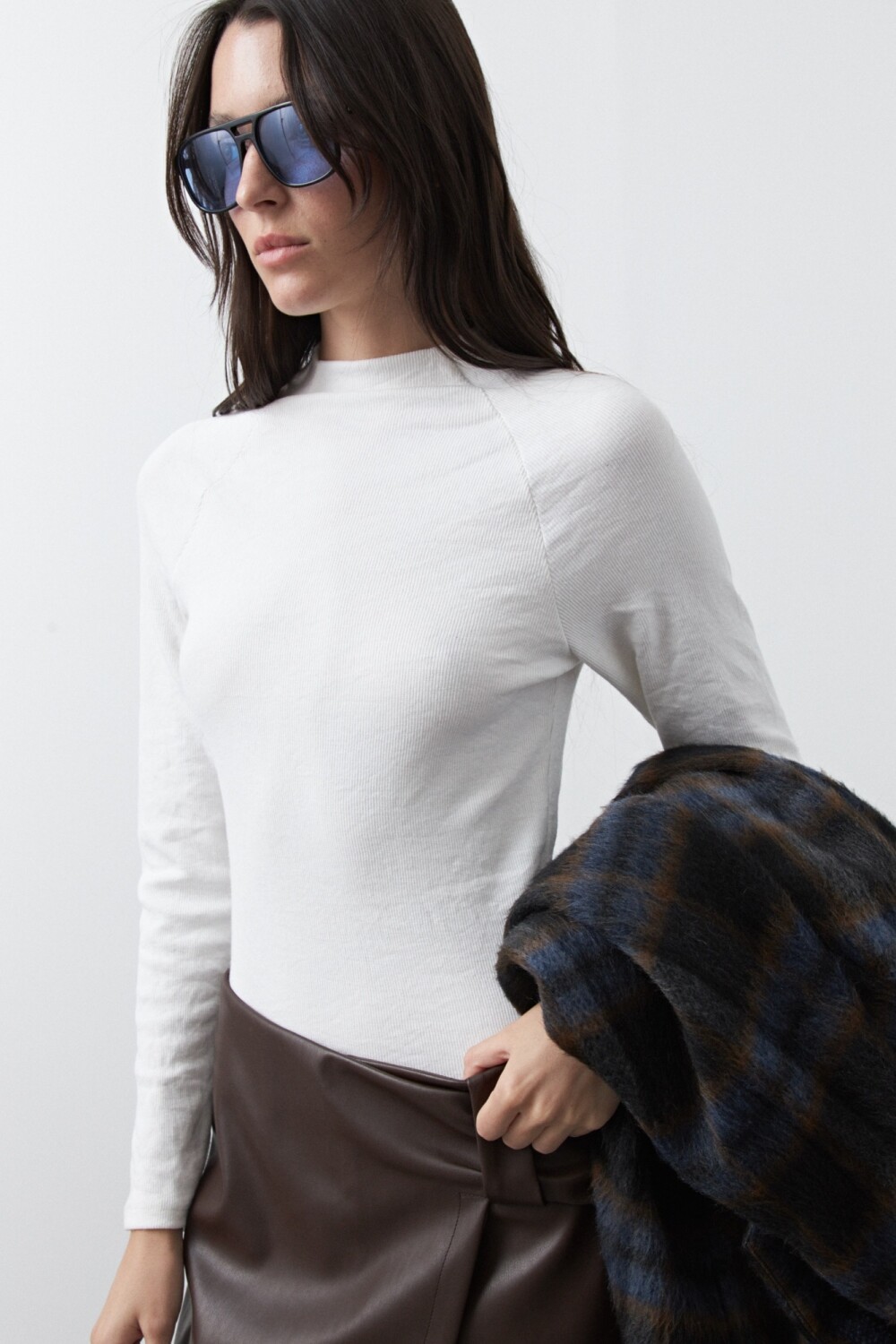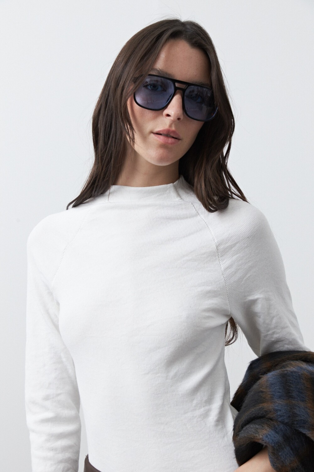 Polera básica de manga larga con cuello alto y tejido acanalado, diseñada para adaptarse al cuerpo con un calce cómodo y favorecedor. Su confección en algodón con elastano aporta suavidad, respirabilidad y elasticidad, convirtiéndola en una prenda esencial para el uso diario.