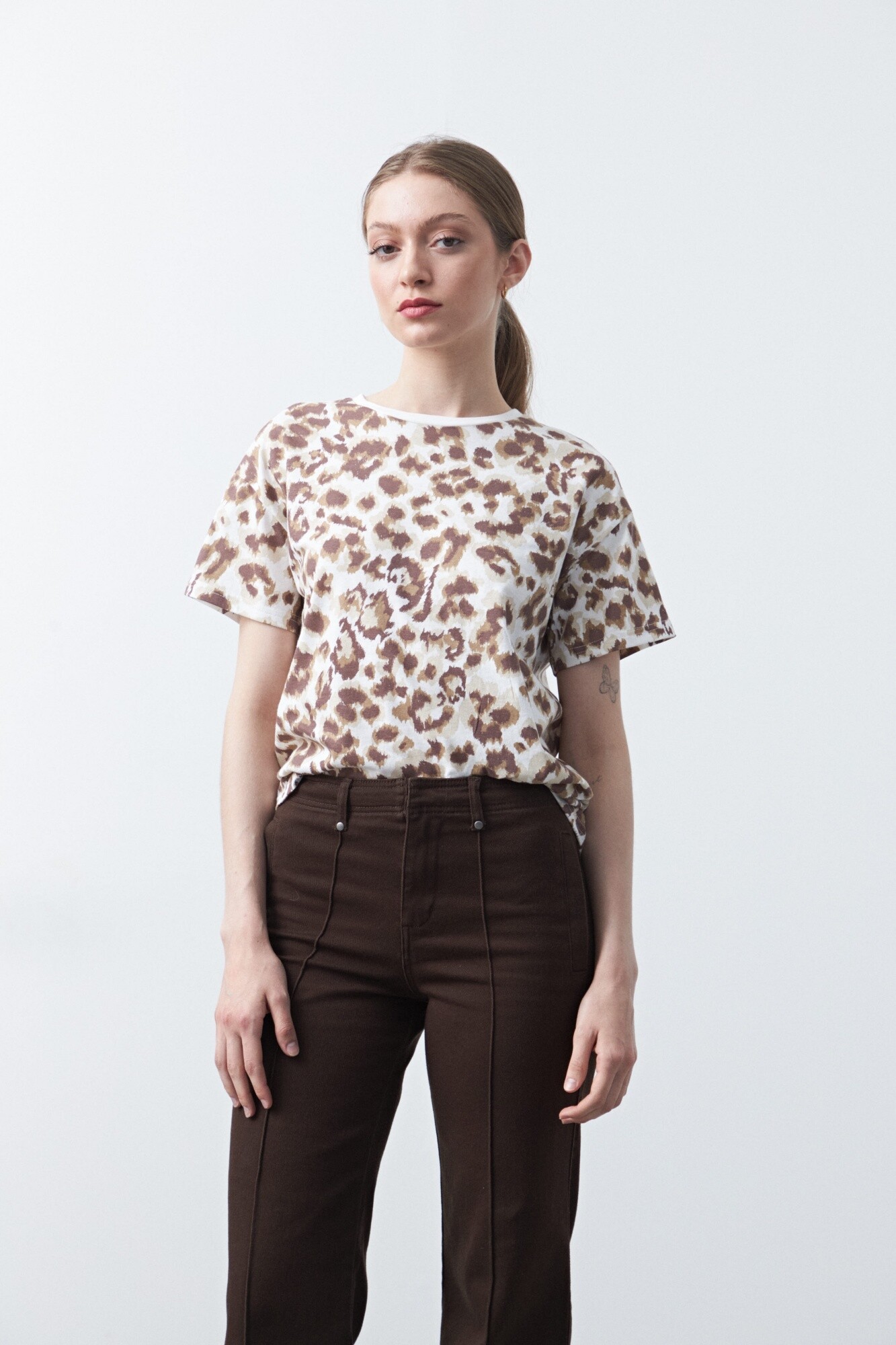 Remera de manga corta animal print que suma actitud y dinamismo al look diario. El diseño all over aporta fuerza visual sin perder equilibrio, logrando una prenda versátil y actual. Su calce cómodo la convierte en un básico con personalidad, ideal para armar outfits relajados o para darle un giro más trendy a combinaciones simples.
