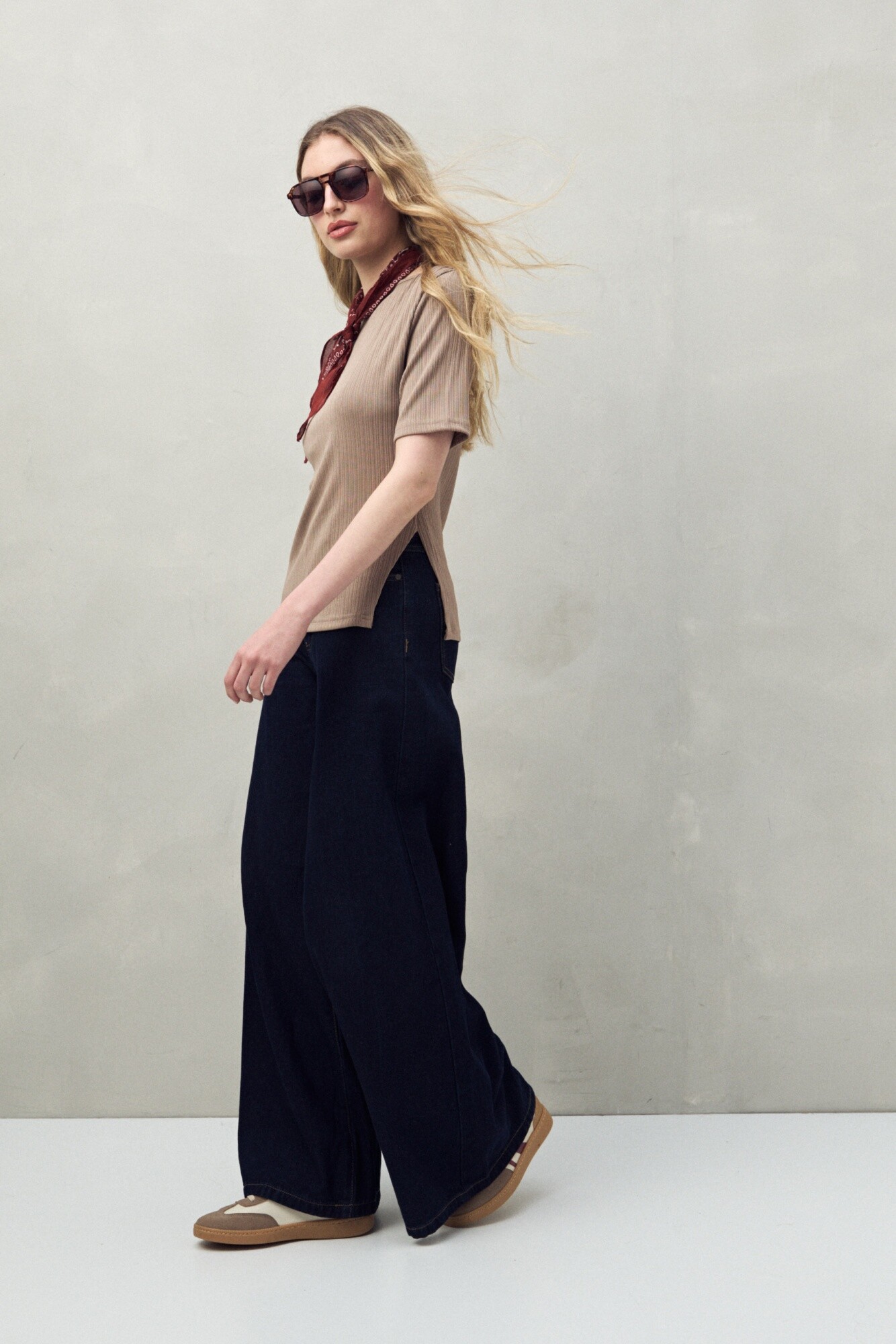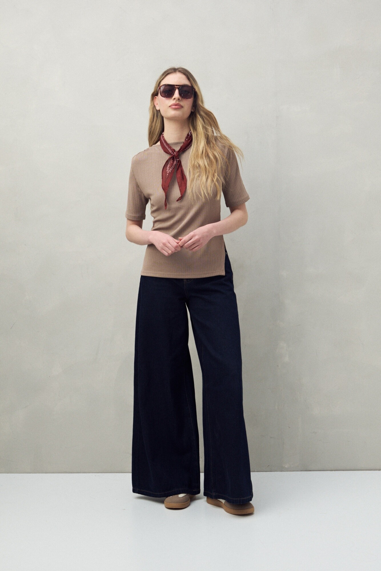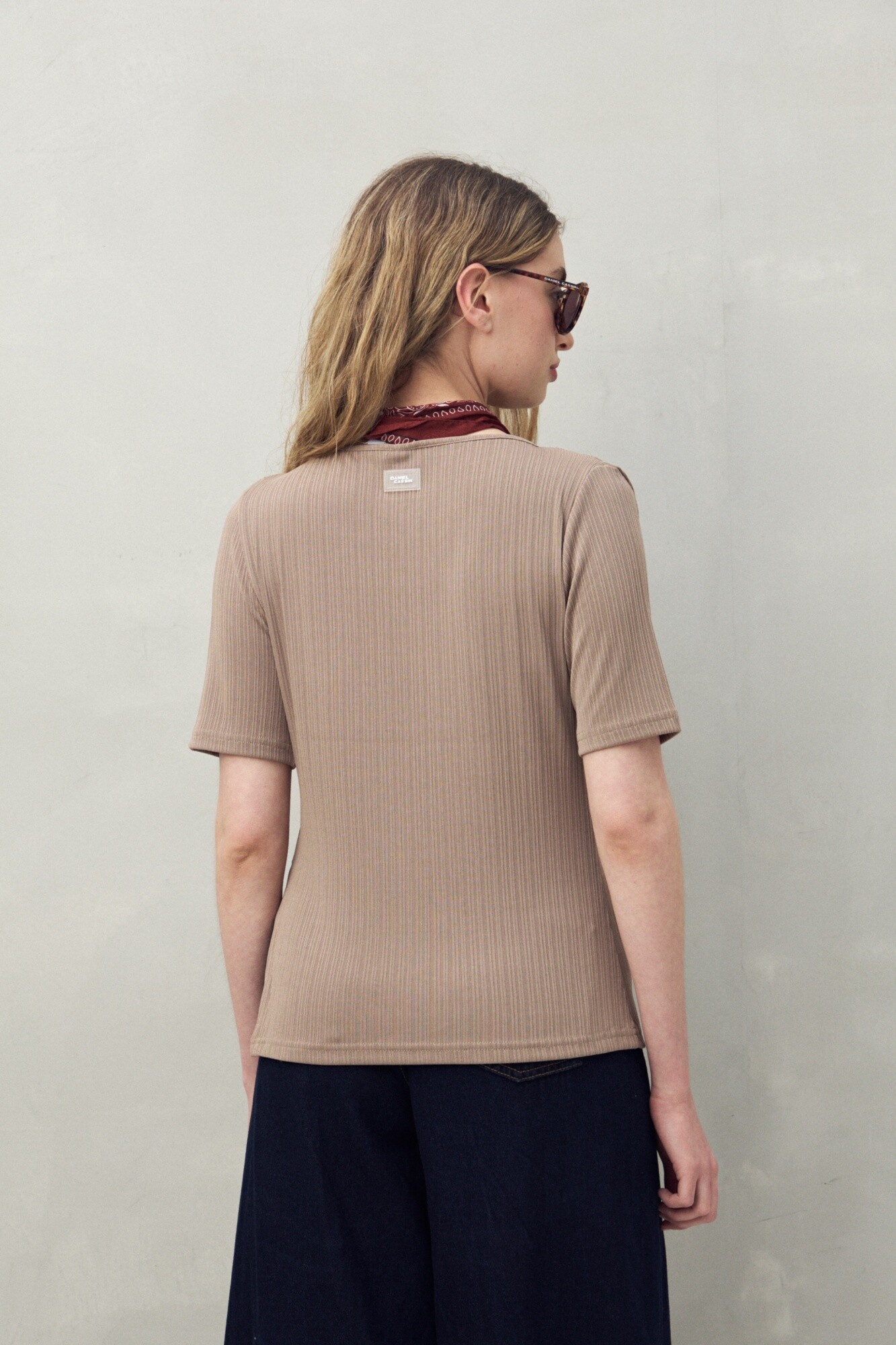 Remera de manga corta, de cuello recto y terminación en pico. Un básico elegante e infaltable en tu guardarropas!