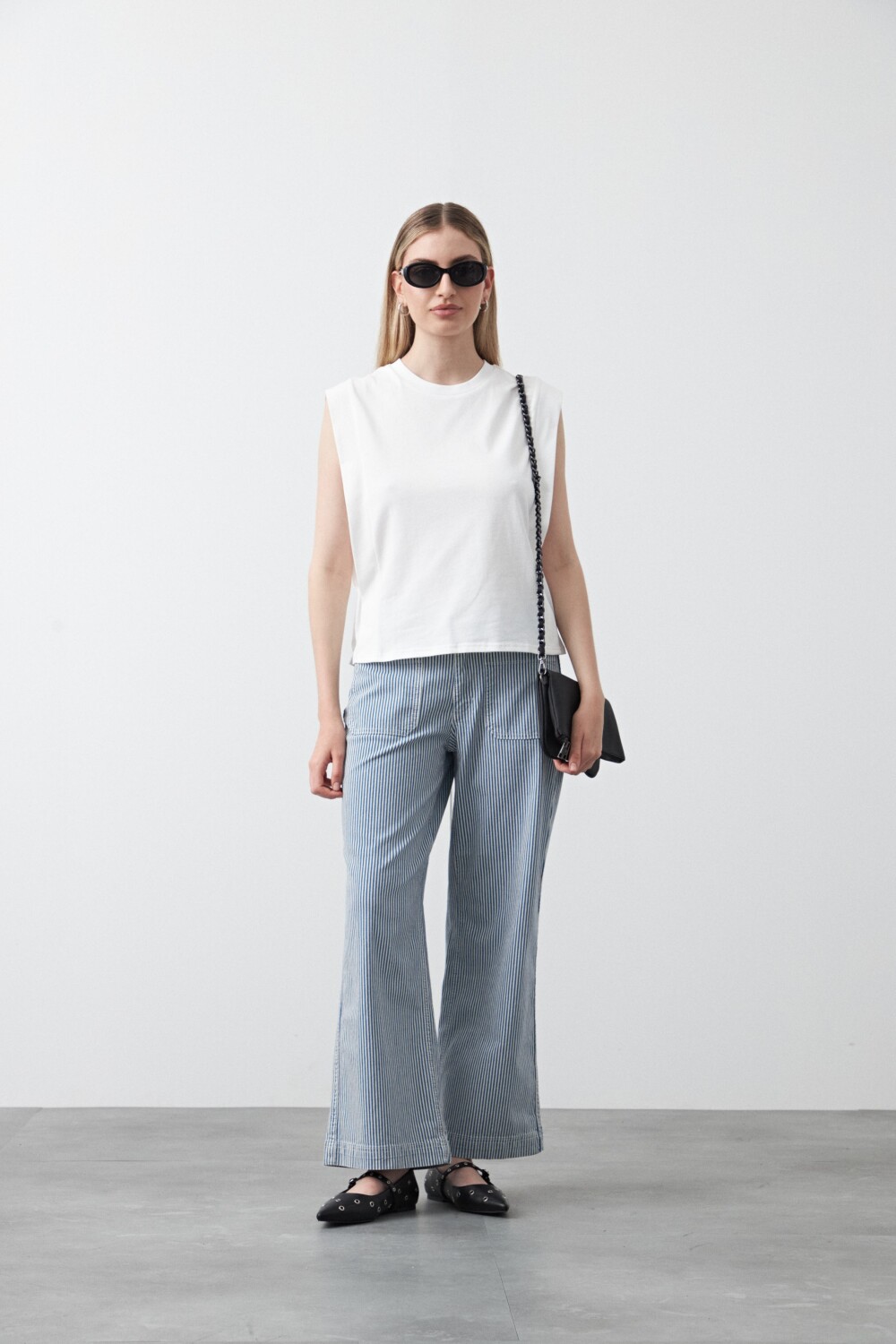 20 Remera sin mangas de silueta limpia y actitud urbana, una prenda clave que aporta carácter sin esfuerzo. El diseño de hombros marcados y caída recta construye una presencia fuerte y contemporánea, ideal para looks relajados pero con intención. Funciona como base versátil para elevar cualquier outfit, manteniendo un equilibrio entre comodidad y estilo con identidad propia.