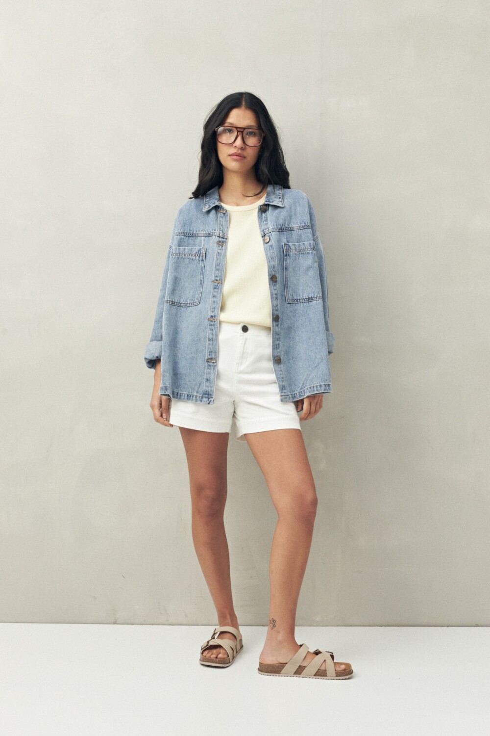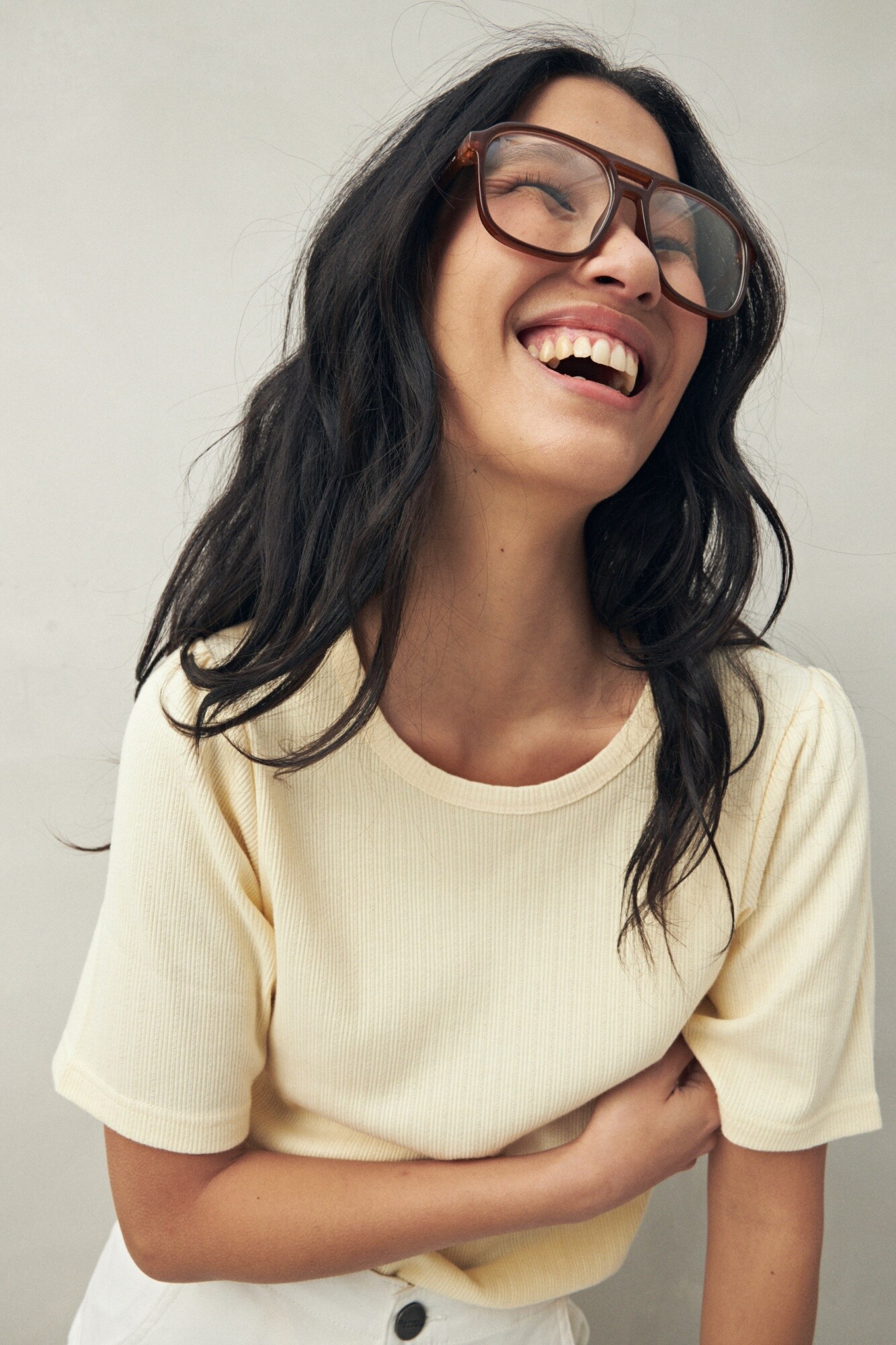 Remera de manga corta confeccionada en tejido acanalado suave al tacto. Su diseño clásico con cuello redondo y sutil frunce en los hombros aporta un toque femenino sin perder simpleza. Ideal para acompañar jeans, pantalones amplios o faldas, es una prenda versátil que se adapta a distintas ocasiones con un aire relajado y moderno.