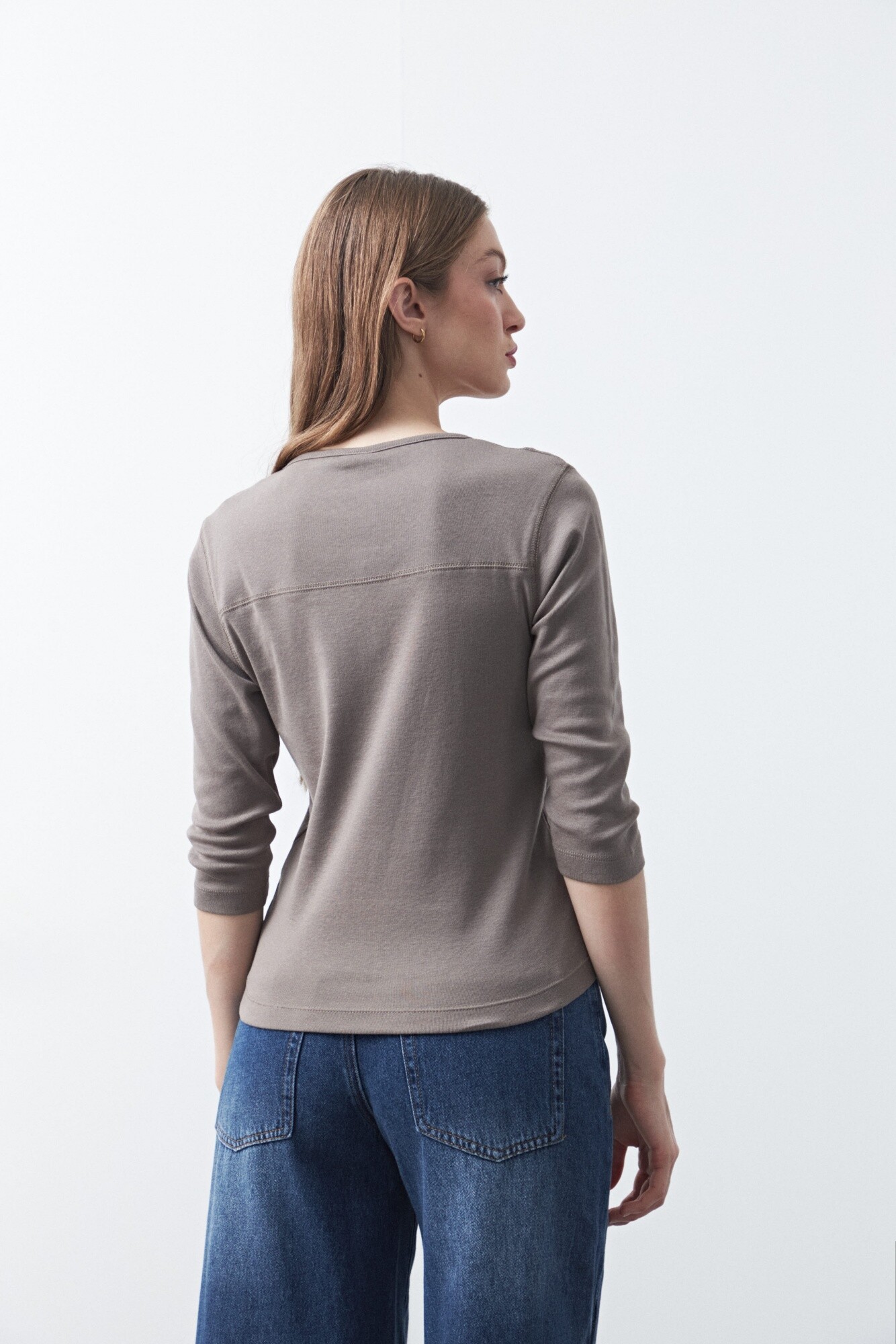 Remera de manga larga confeccionada en algodón, de calce clásico y silueta limpia, pensada como un básico infaltable de guardarropa. Presenta escote con abertura y cartera corta de botones que suma un detalle sutil y funcional, manteniendo una estética minimal y atemporal. Ideal para usar sola o como base de looks urbanos y de oficina relajada, es una pieza versátil que acompaña distintas temporadas.