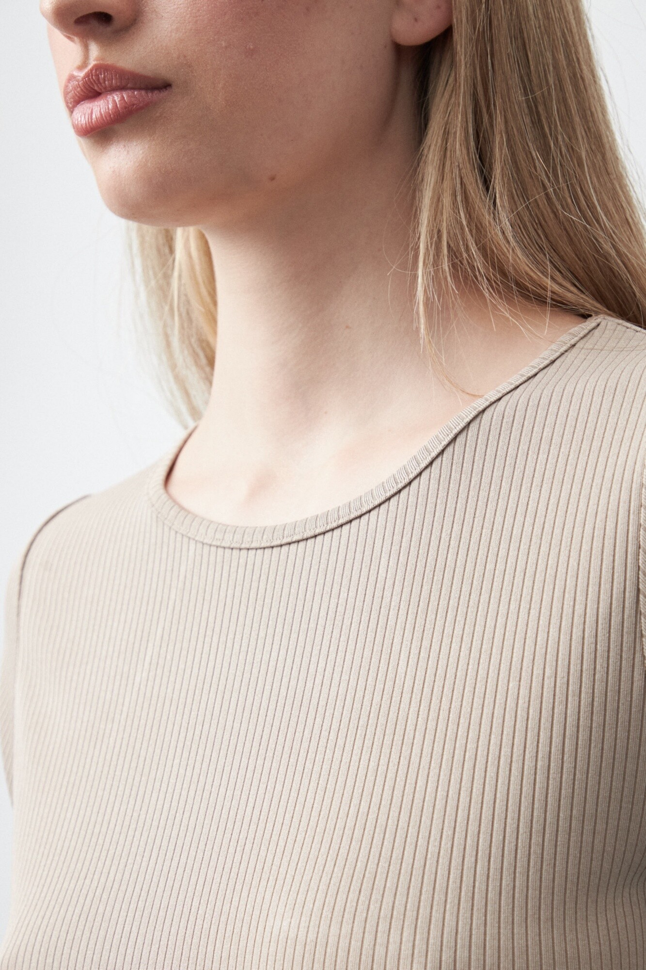 Remera de manga corta confeccionada en tejido acanalado con buena elasticidad, que se adapta al cuerpo sin marcar y mantiene una silueta limpia. El diseño de líneas simples y cuello redondo la convierte en una prenda versátil, ideal para combinar tanto en looks urbanos como en propuestas más pulidas. Un básico renovado, clave para elevar cualquier look desde lo simple.