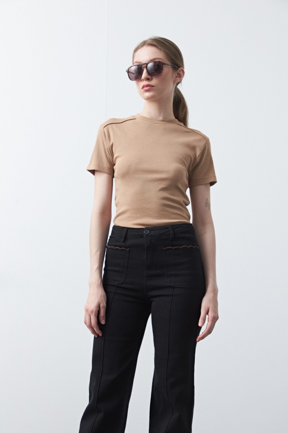 Remera de manga corta de cuello a la base, de calce clásico y líneas limpias, pensada como un básico infaltable del guardarropa. Su diseño minimal y prolijo la convierte en una opción versátil para usar todos los días, ya sea sola o como base de looks más armados. Una silueta atemporal que acompaña distintos estilos y se adapta con facilidad a propuestas urbanas o de oficina relajada.