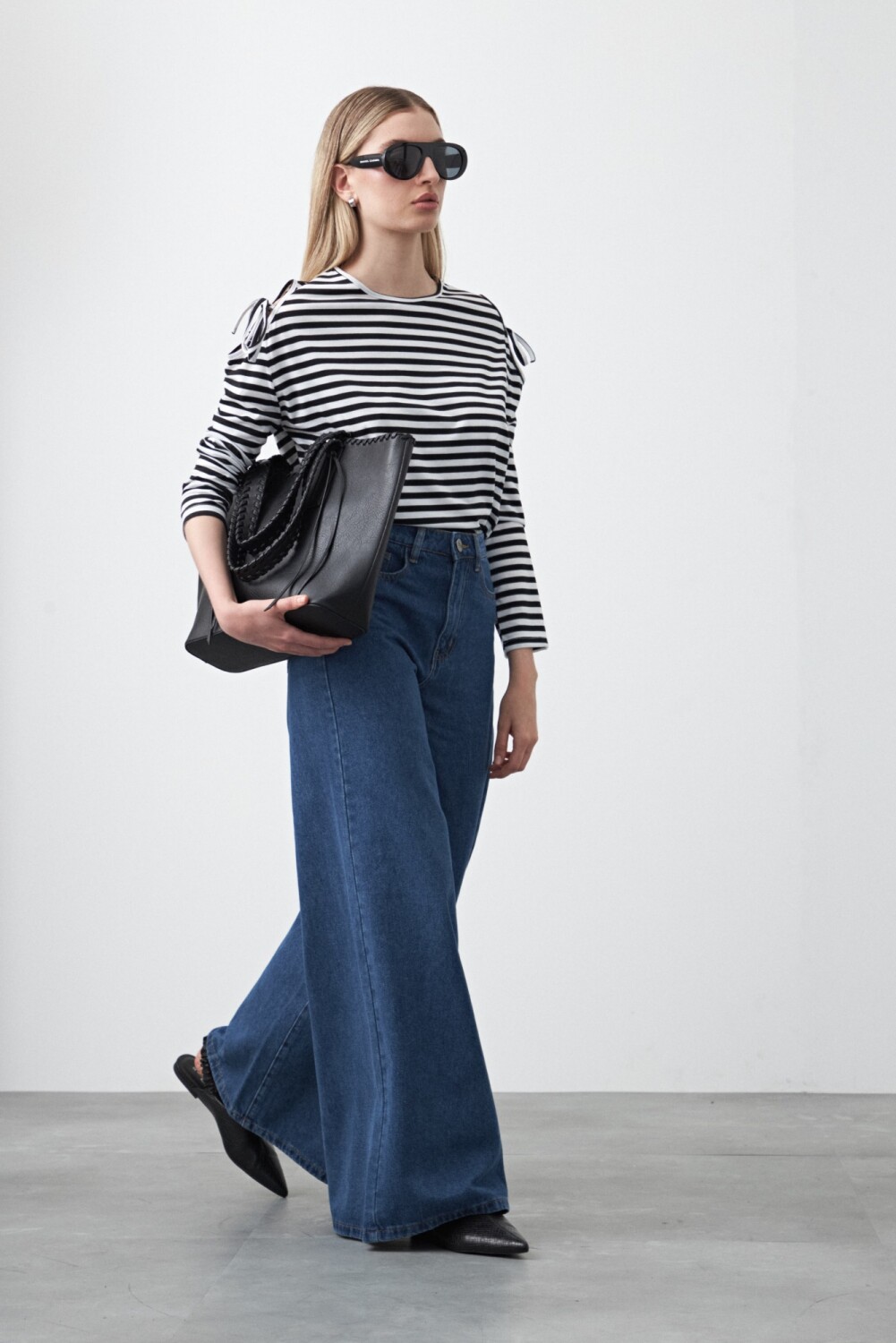 Remera de manga larga a rayas con diseño de cut outs en los hombros y lazos regulables que suman un detalle distintivo sin perder versatilidad. Las rayas, de inspiración navy, refuerzan su carácter atemporal y la convierten en una prenda fácil de integrar a distintos looks, desde combinaciones relajadas hasta estilismos más cuidados.