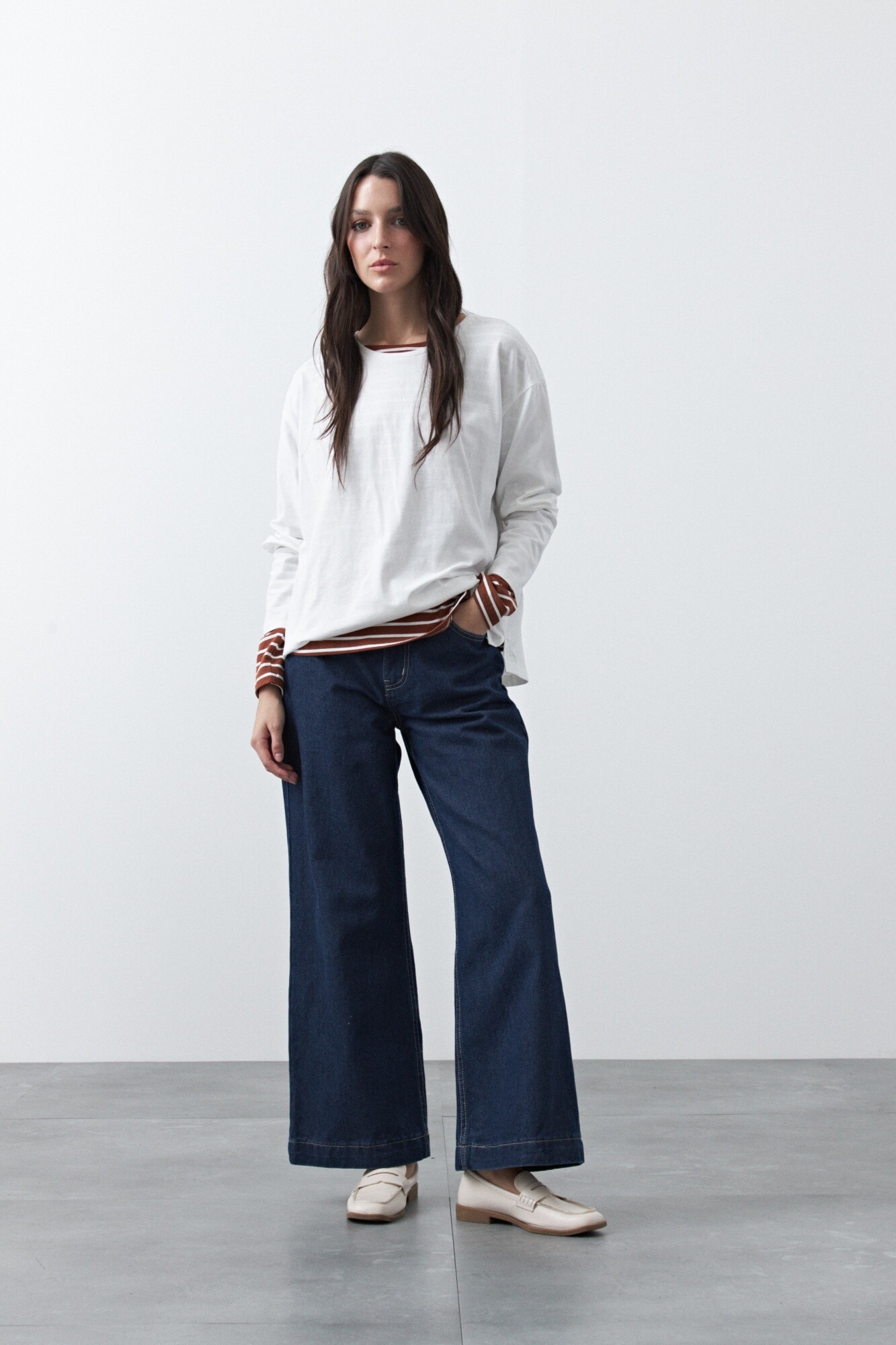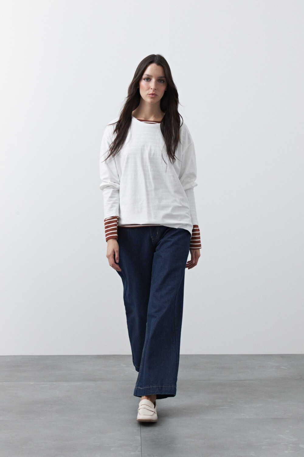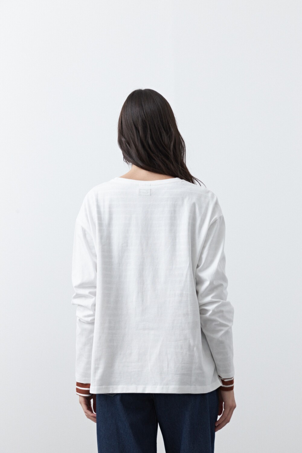 Remera básica de manga larga de calce relajado y diseño minimalista, pensada como un esencial versátil para armar looks en capas. Su silueta limpia permite jugar con superposiciones, dejando ver cuellos, mangas o texturas que suman interés visual. Ideal para combinar con prendas livianas por debajo o para construir estilismos más complejos sin perder comodidad.