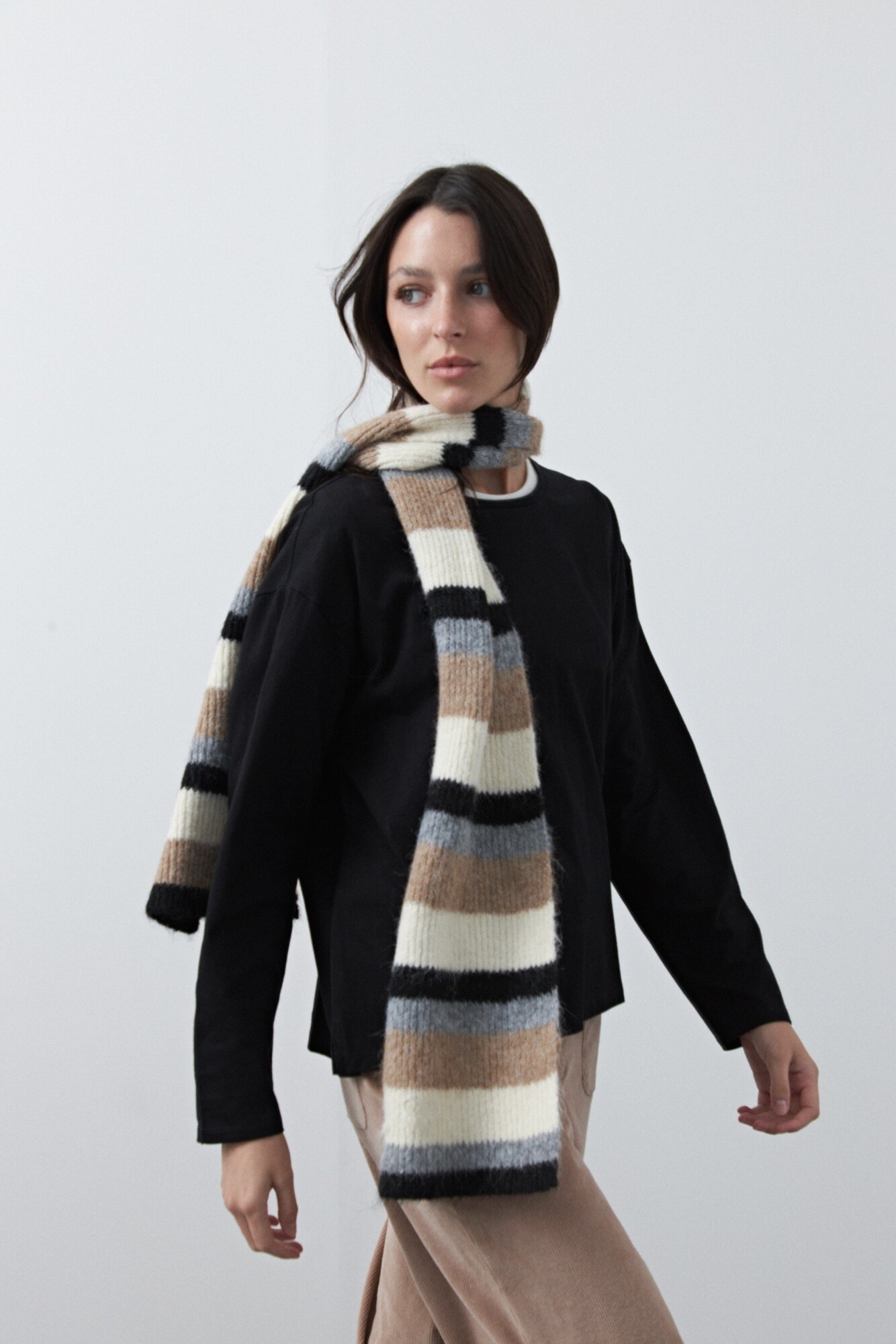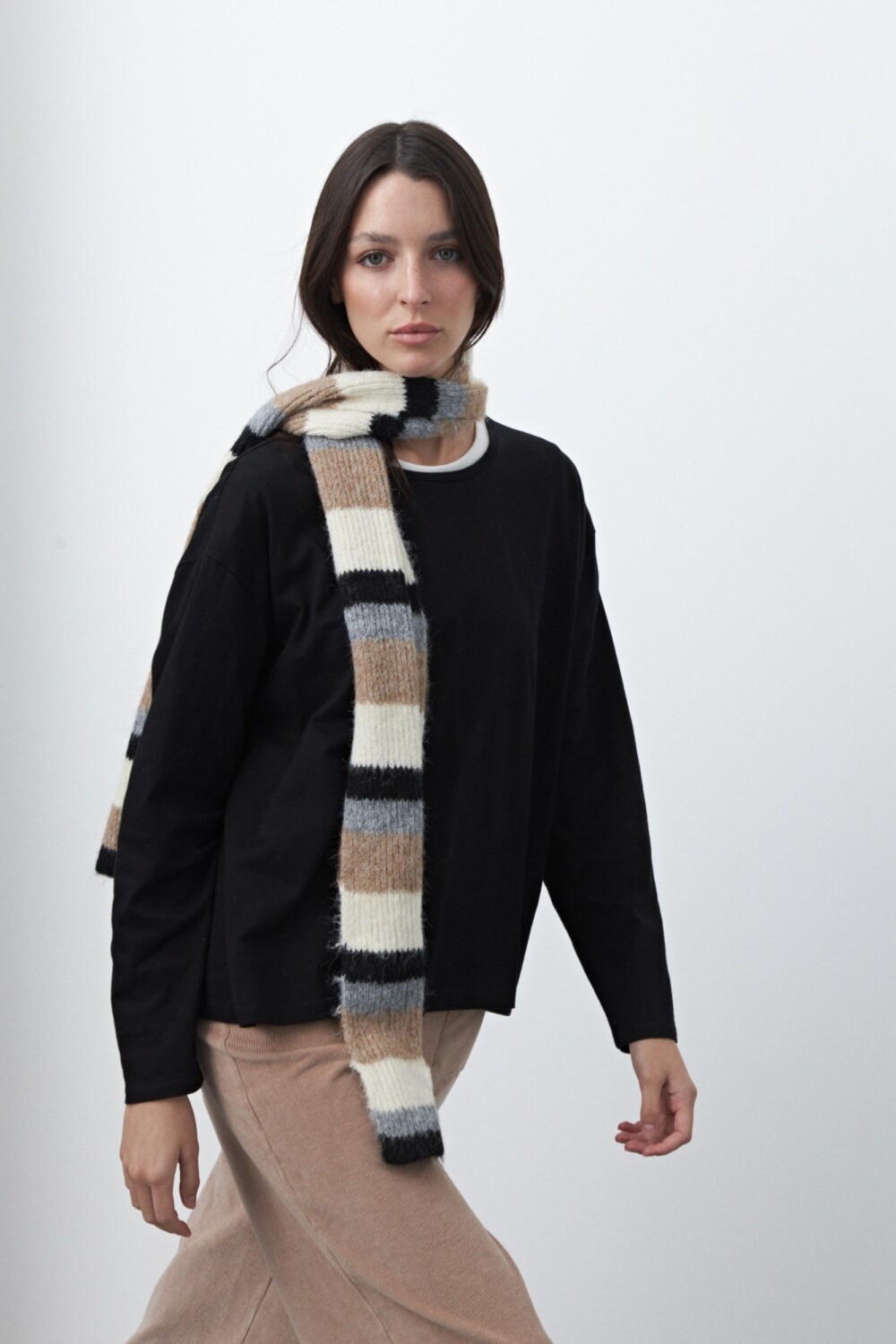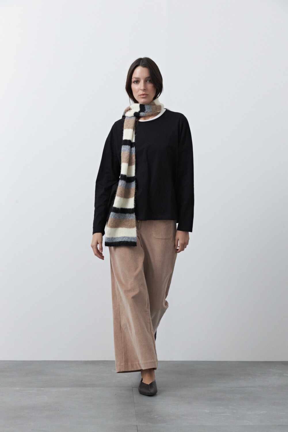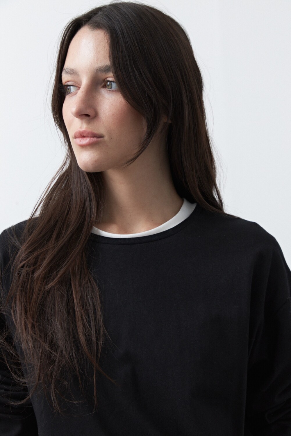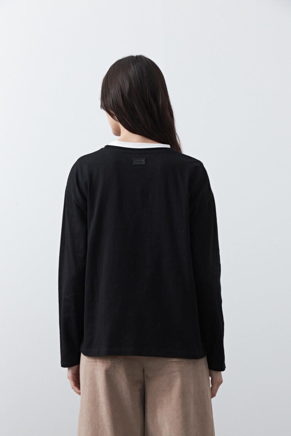 Remera básica de manga larga de calce relajado y diseño minimalista, pensada como un esencial versátil para armar looks en capas. Su silueta limpia permite jugar con superposiciones, dejando ver cuellos, mangas o texturas que suman interés visual. Ideal para combinar con prendas livianas por debajo o para construir estilismos más complejos sin perder comodidad.