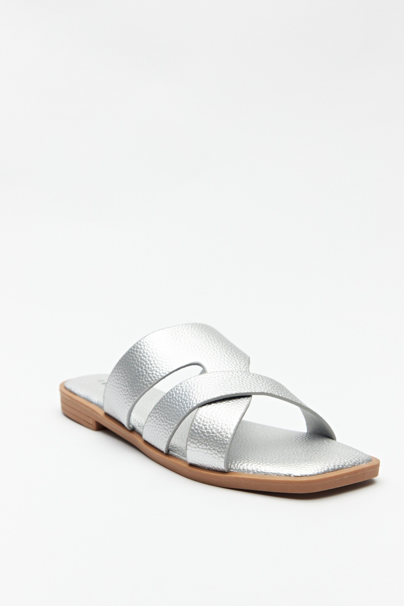 Comodidad y estilo en una misma pieza. Estas sandalias planas se destacan por su diseño de tiras anchas cruzadas, que brindan sujeción y un toque moderno. De punta cuadrada y base levemente acolchonada, son perfectas para acompañar tus looks de verano con un aire relajado y versátil. Ideales para combinar con vestidos, jeans o pantalones amplios.