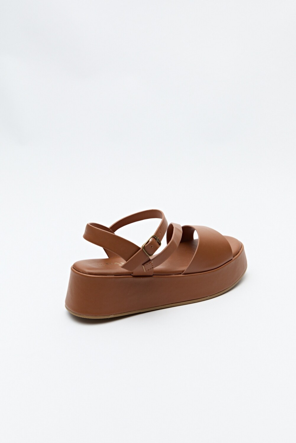 Sandalia con plataforma y diseño de tiras cruzadas que realzan el empeine con líneas simples y modernas. Su base liviana ofrece altura y confort en partes iguales, mientras que la pulsera ajustable brinda sujeción y estabilidad. Un modelo versátil y en tendencia, ideal para elevar tus looks estivales con un toque minimalista.