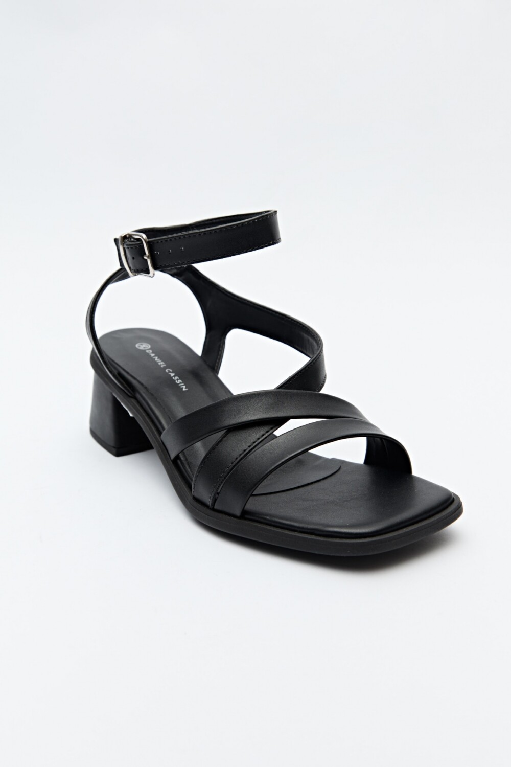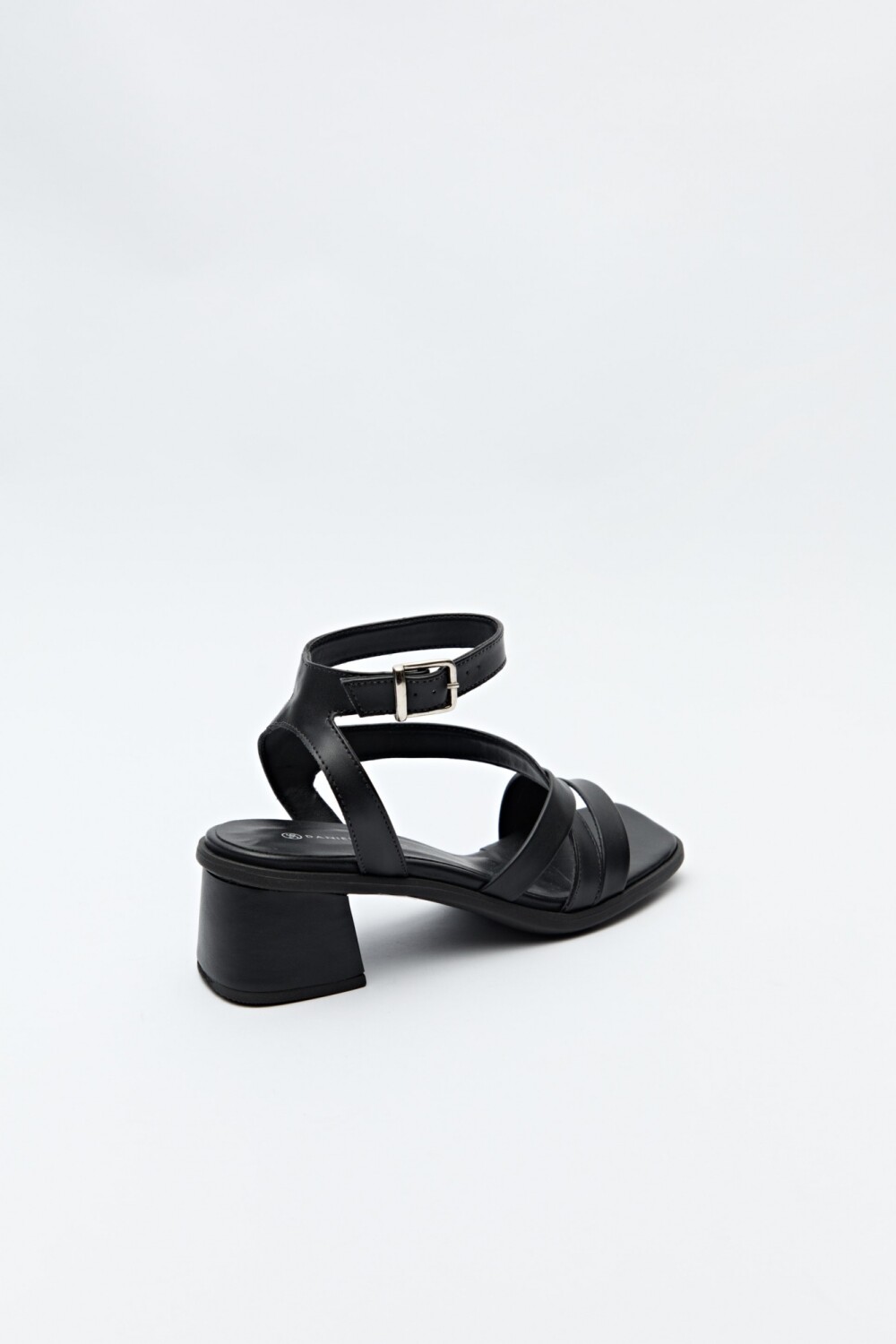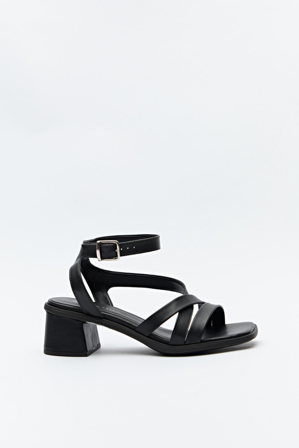 Sandalia con diseño de tiras cruzadas y pulsera al tobillo con hebilla metálica. Su taco ancho medio ofrece estabilidad y comodidad sin perder estilo. Un modelo versátil y elegante, ideal para acompañar looks de día o de noche.