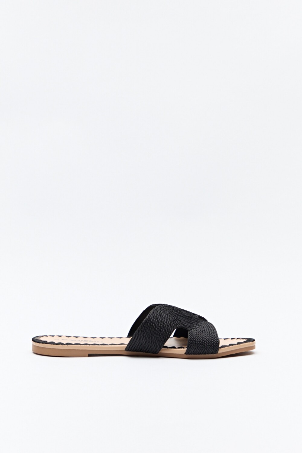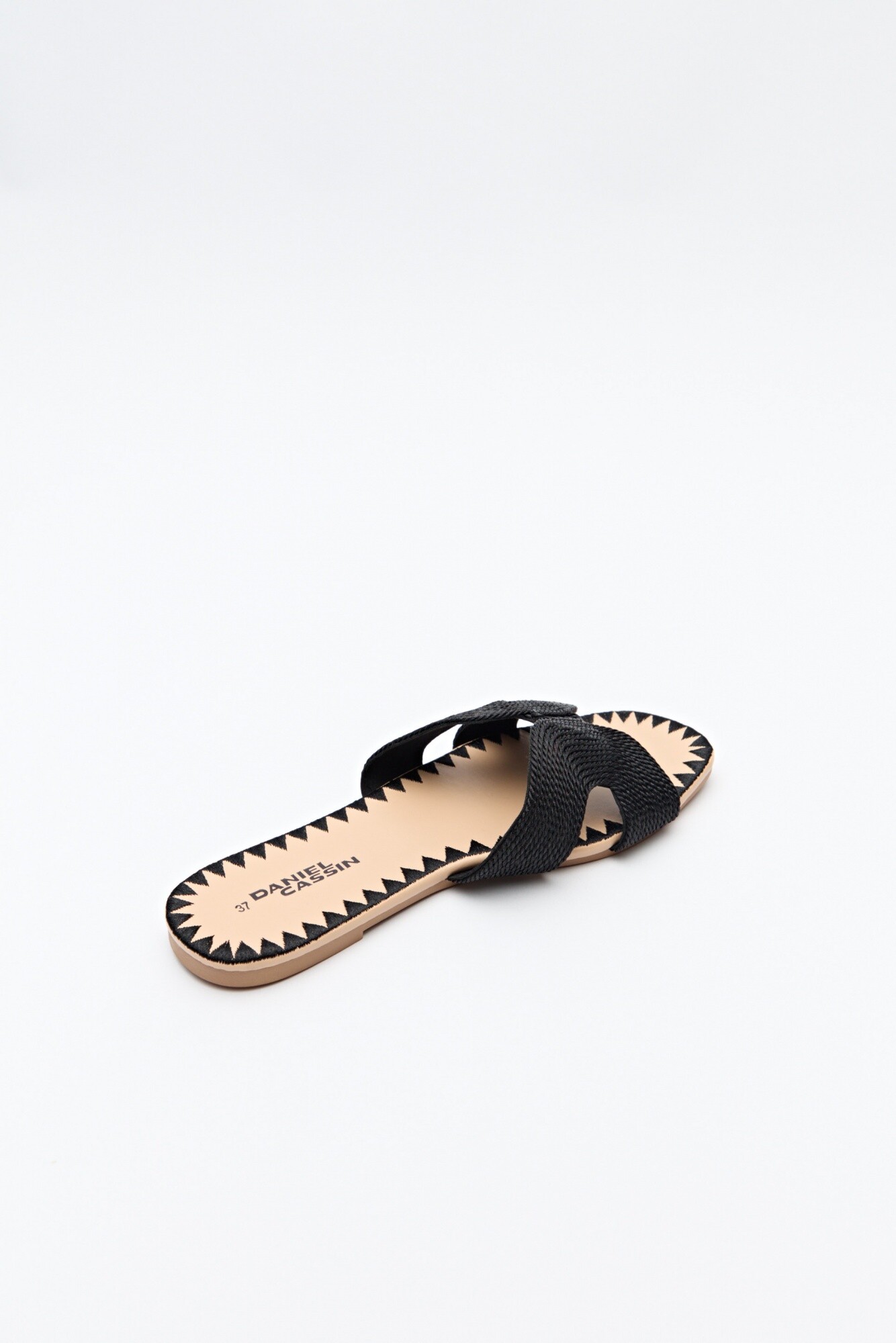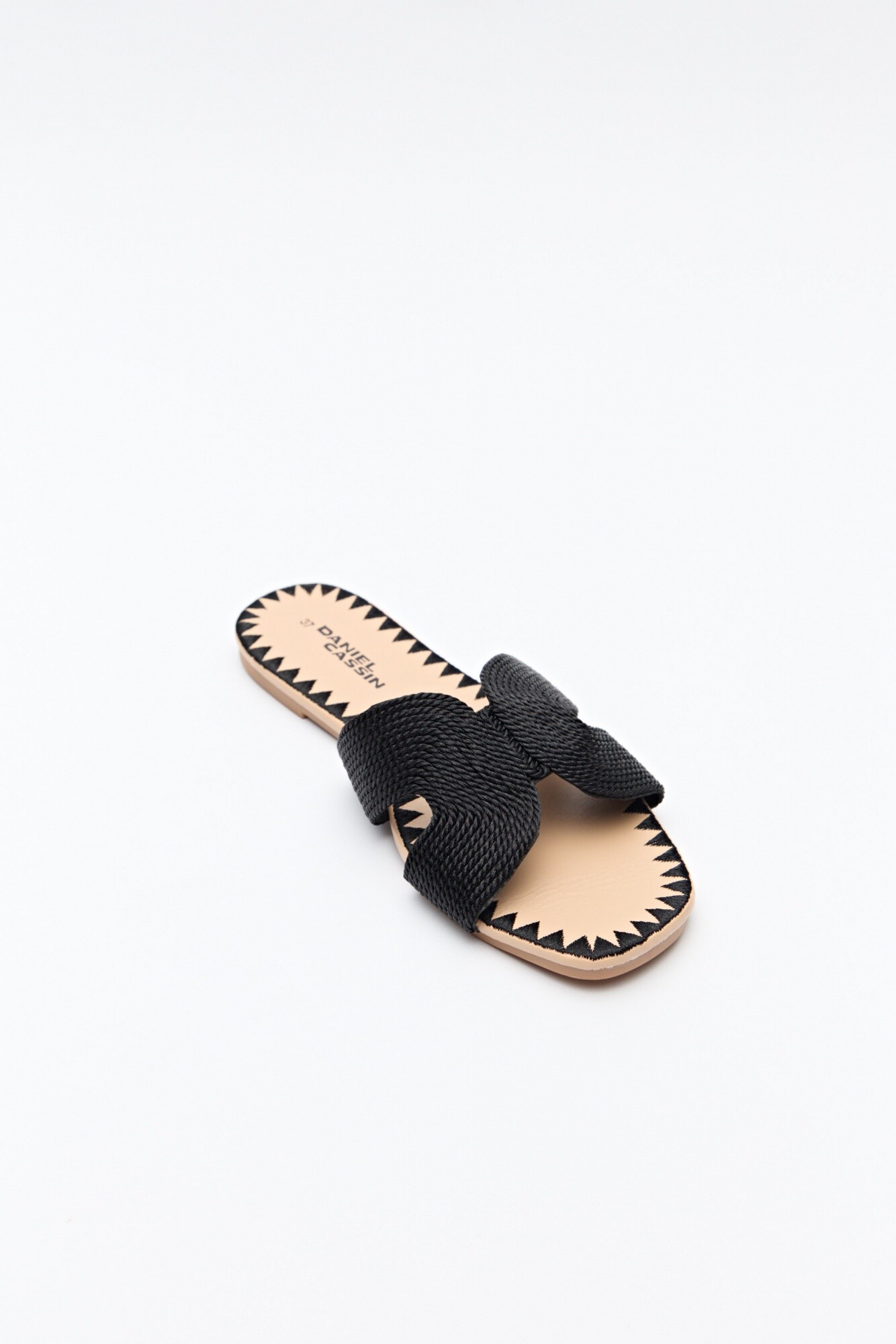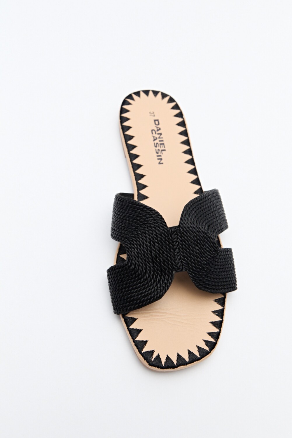 Sandalia baja con capellada trenzada tipo cordón, de textura artesanal y diseño envolvente. La suela presenta un delicado bordado a tono, que realza el acabado y suma un detalle distintivo al modelo. Ideal para completar looks de verano con un aire natural y femenino.
