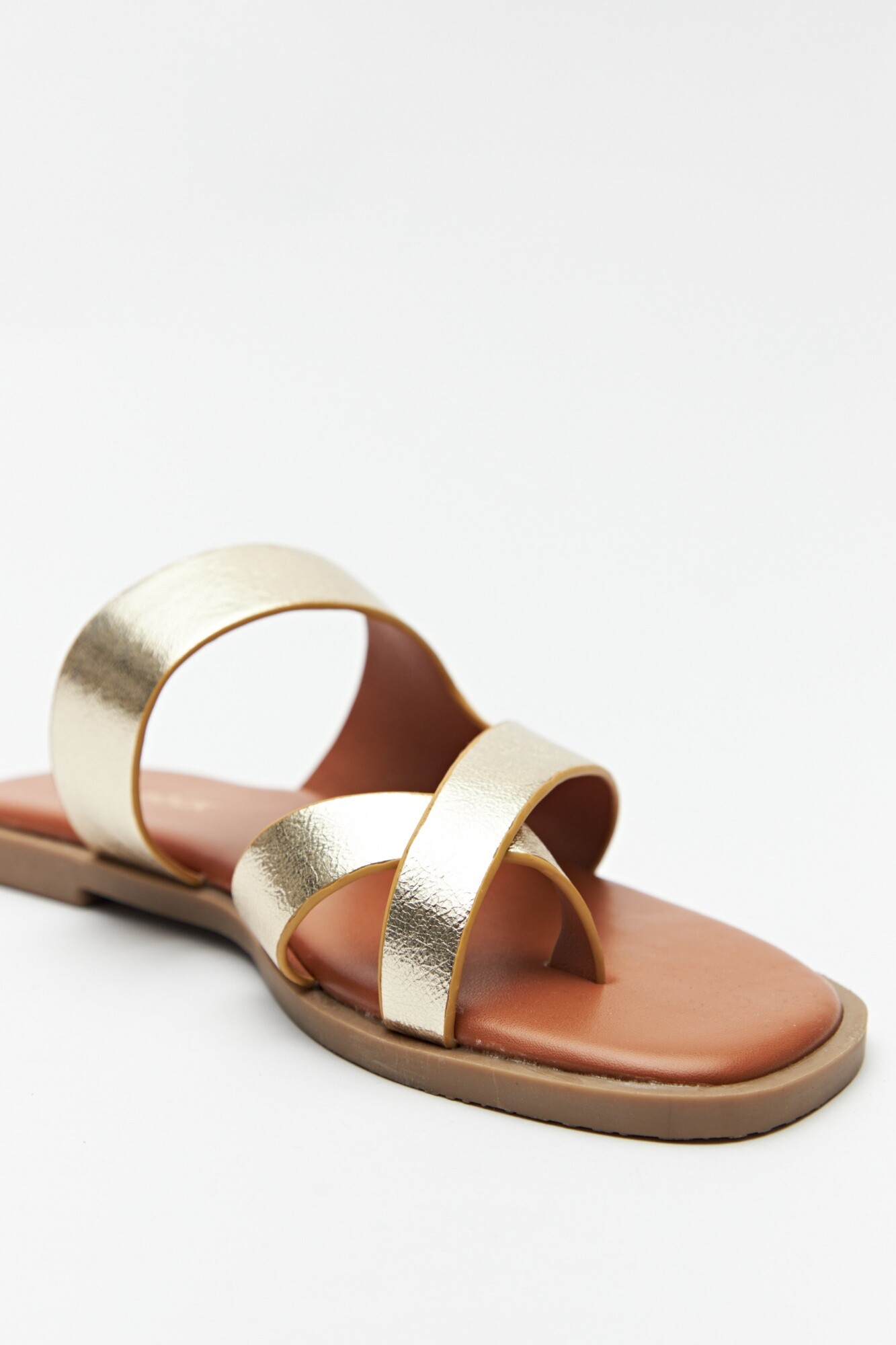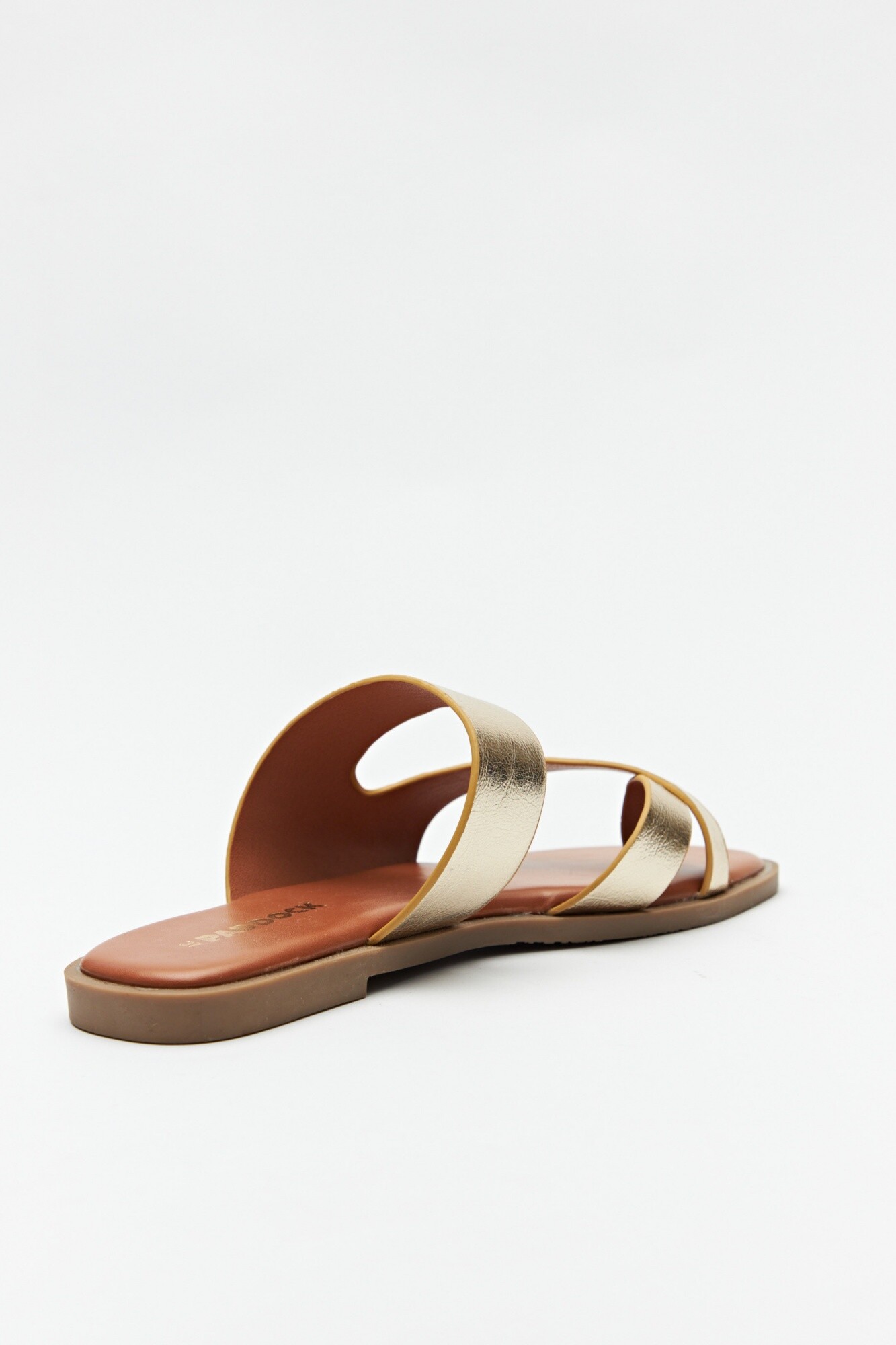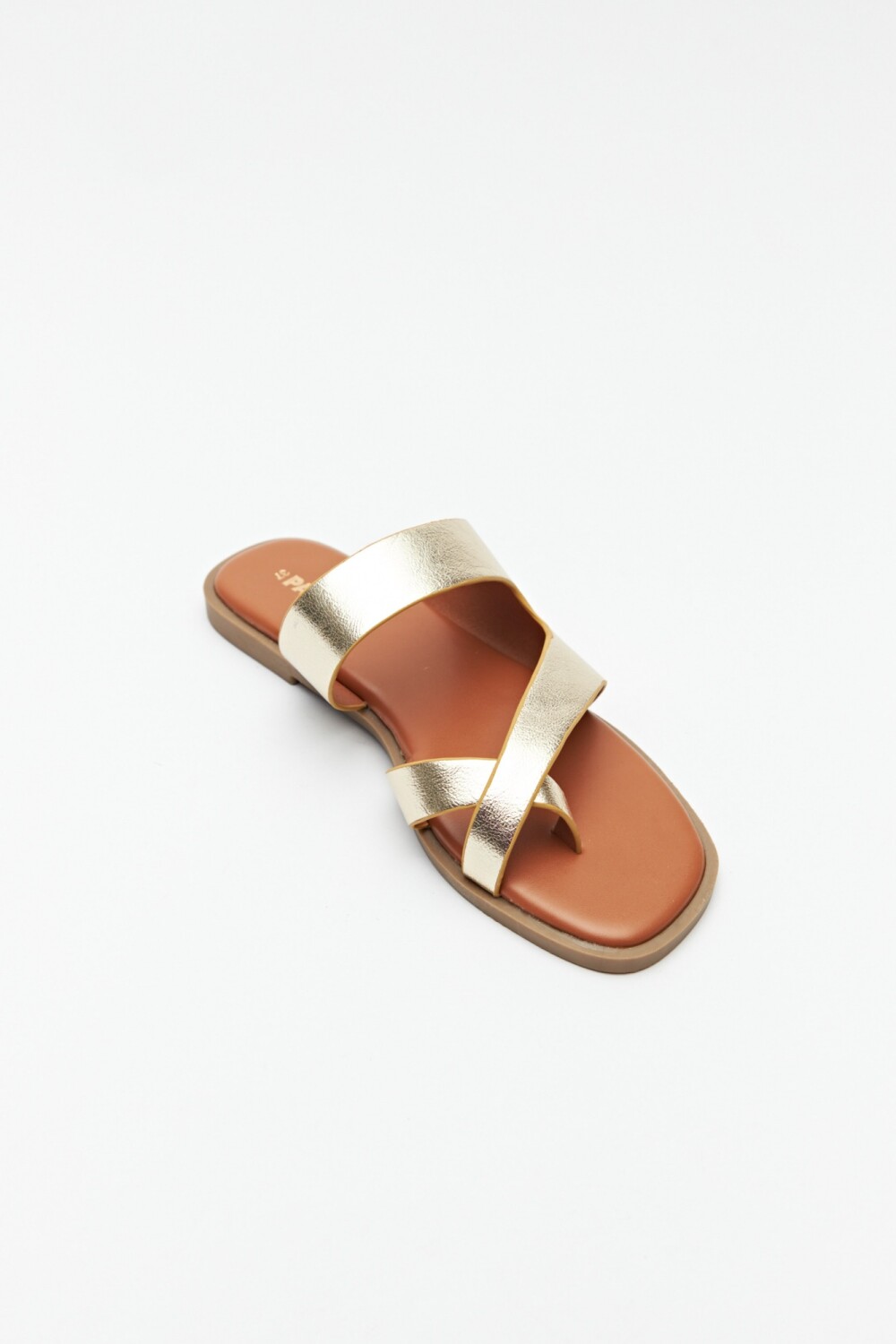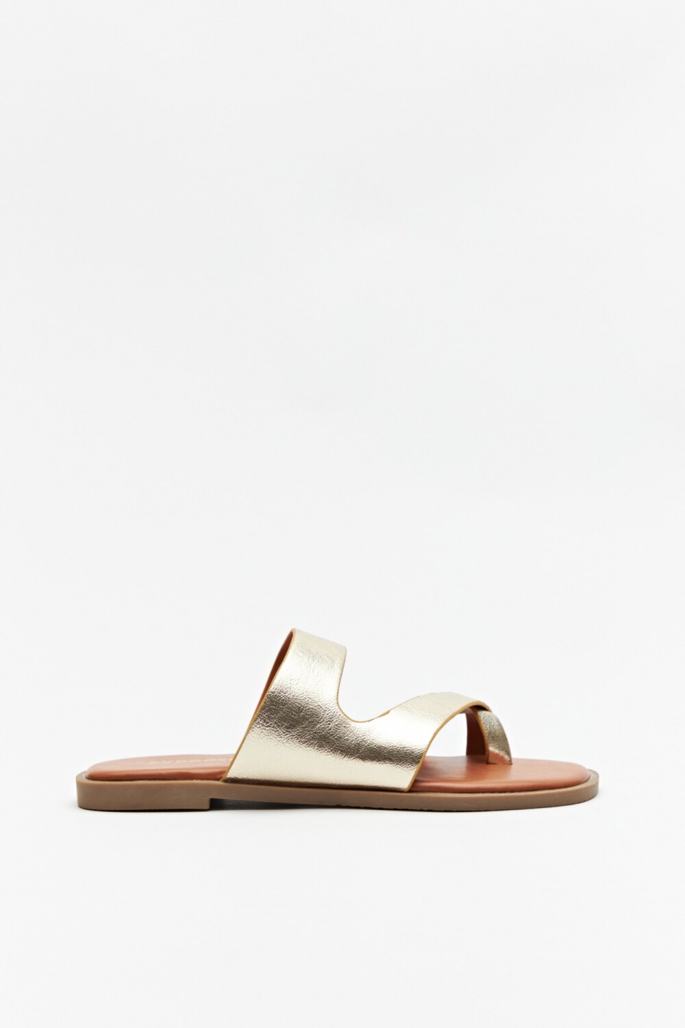 Sandalias bajas abiertas en símil cuero con capellada en símil cuero y agarre del dedo gordo.